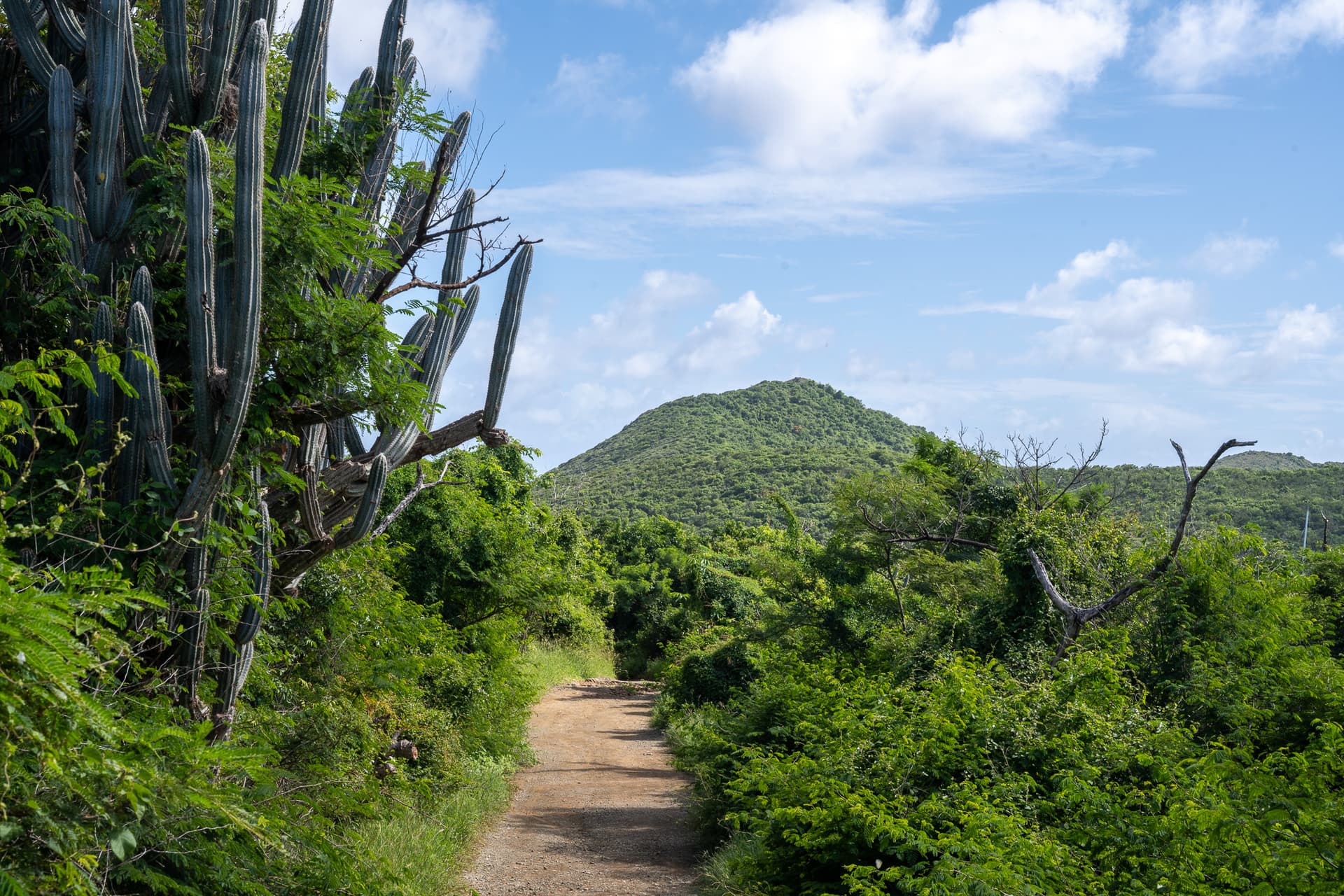 Maho Bay结束后我们前往岛南侧的Ram Head Trailhead——这条小众的步道是我认为USVI最佳的体验之一,不仅风光绝美,在一路上会经过白沙滩和红色盐湖到达山脊,还会穿越岛屿南部从热带雨林到干旱植被的微气候区——注:本Trail已在全美最佳徒步帖推荐。