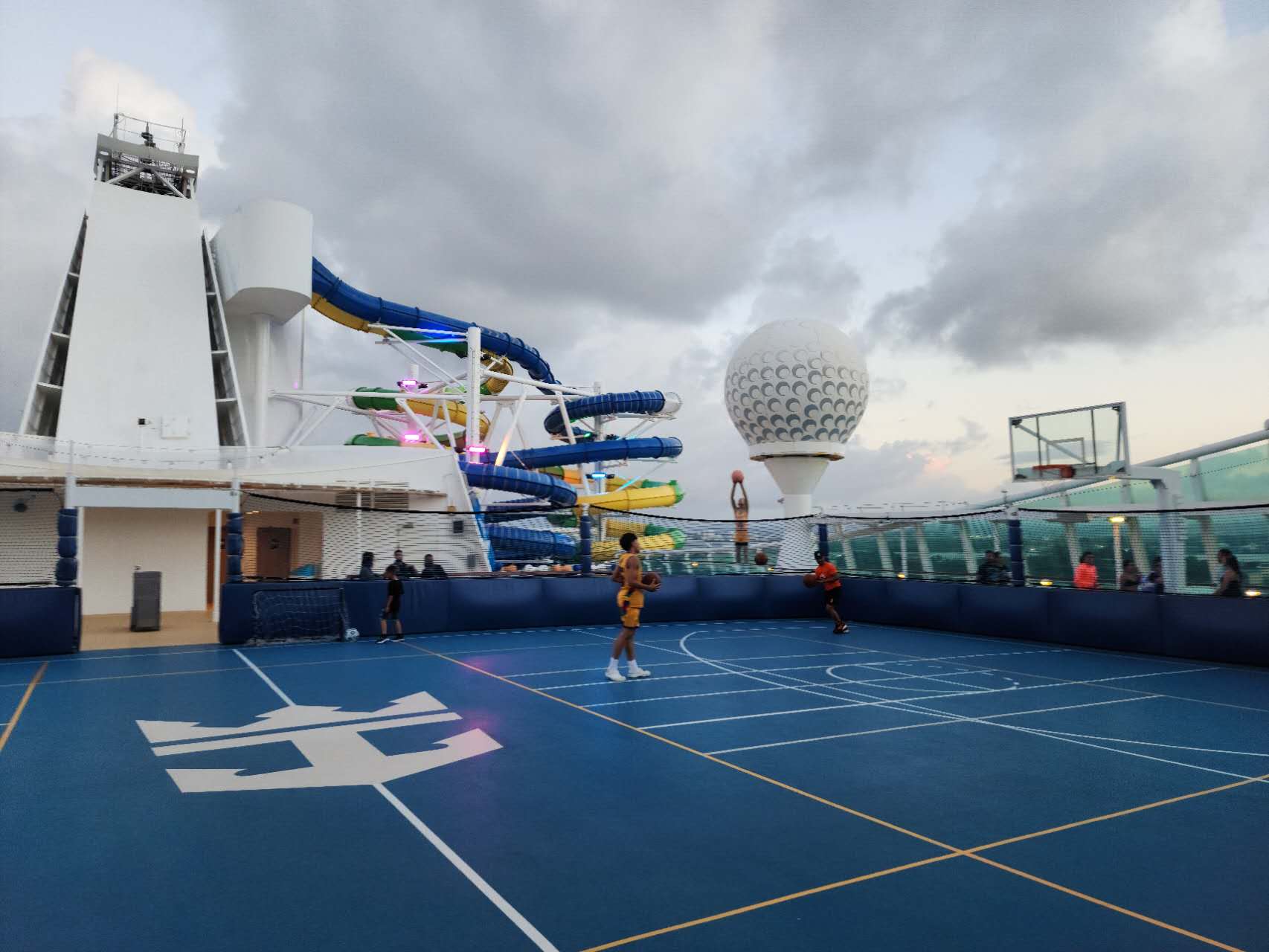篮球场,滑冰场,还有没拍的攀岩壁,皇家加勒比的船确实适合年轻人去玩。