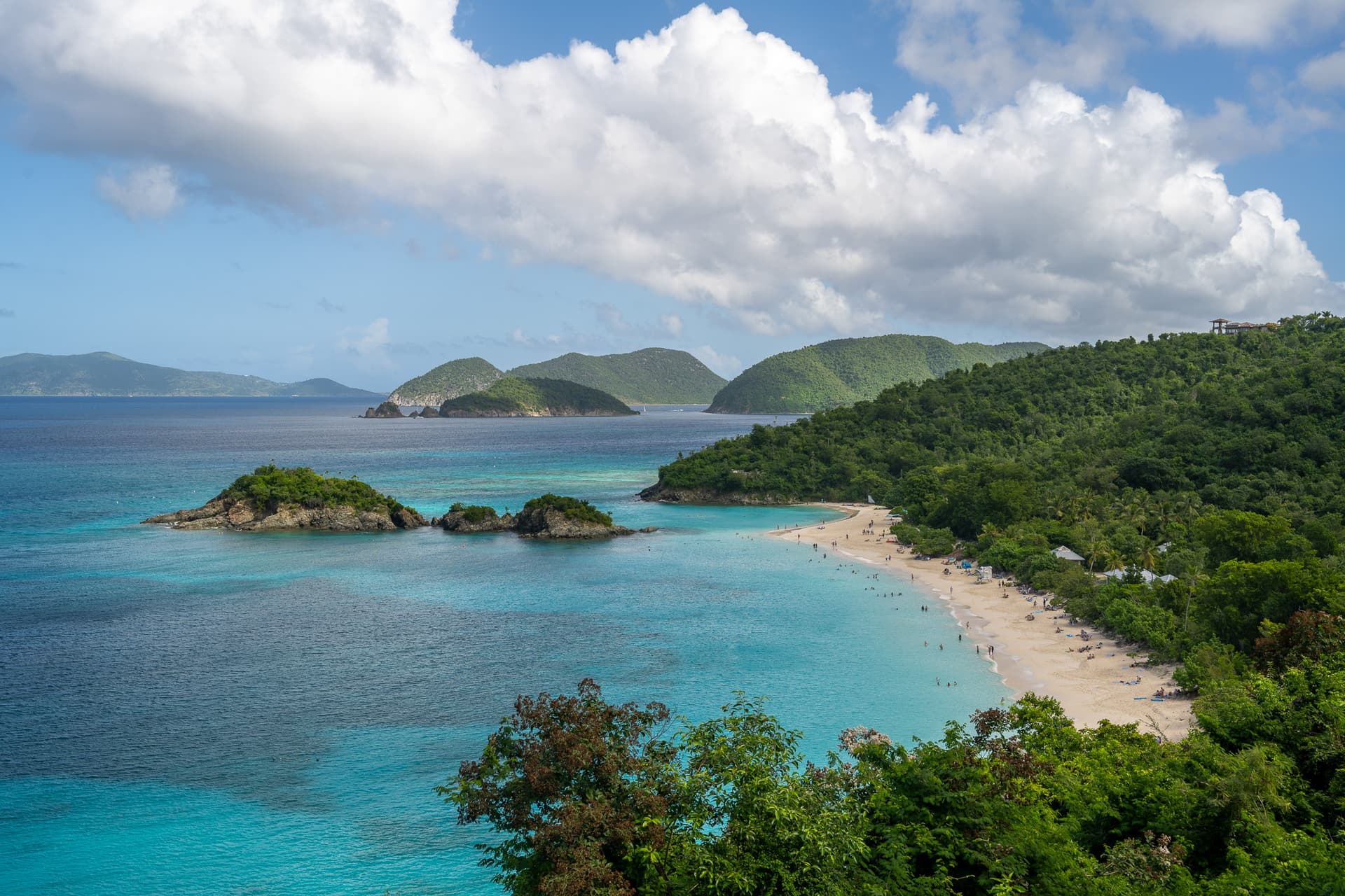 Trunk Bay可以说是美国最佳的沙滩之一,水清沙白,浮潜新手友好,背后还有山景加持。