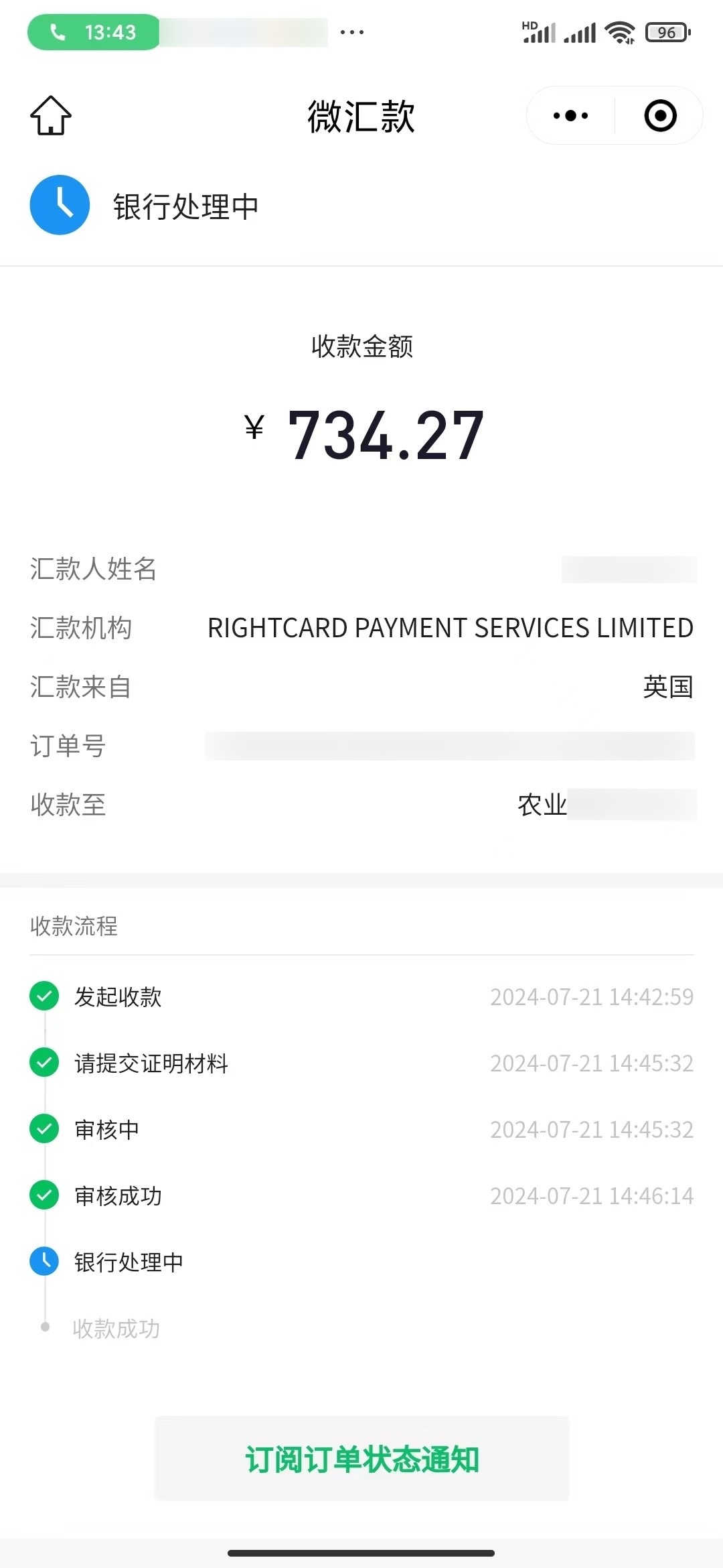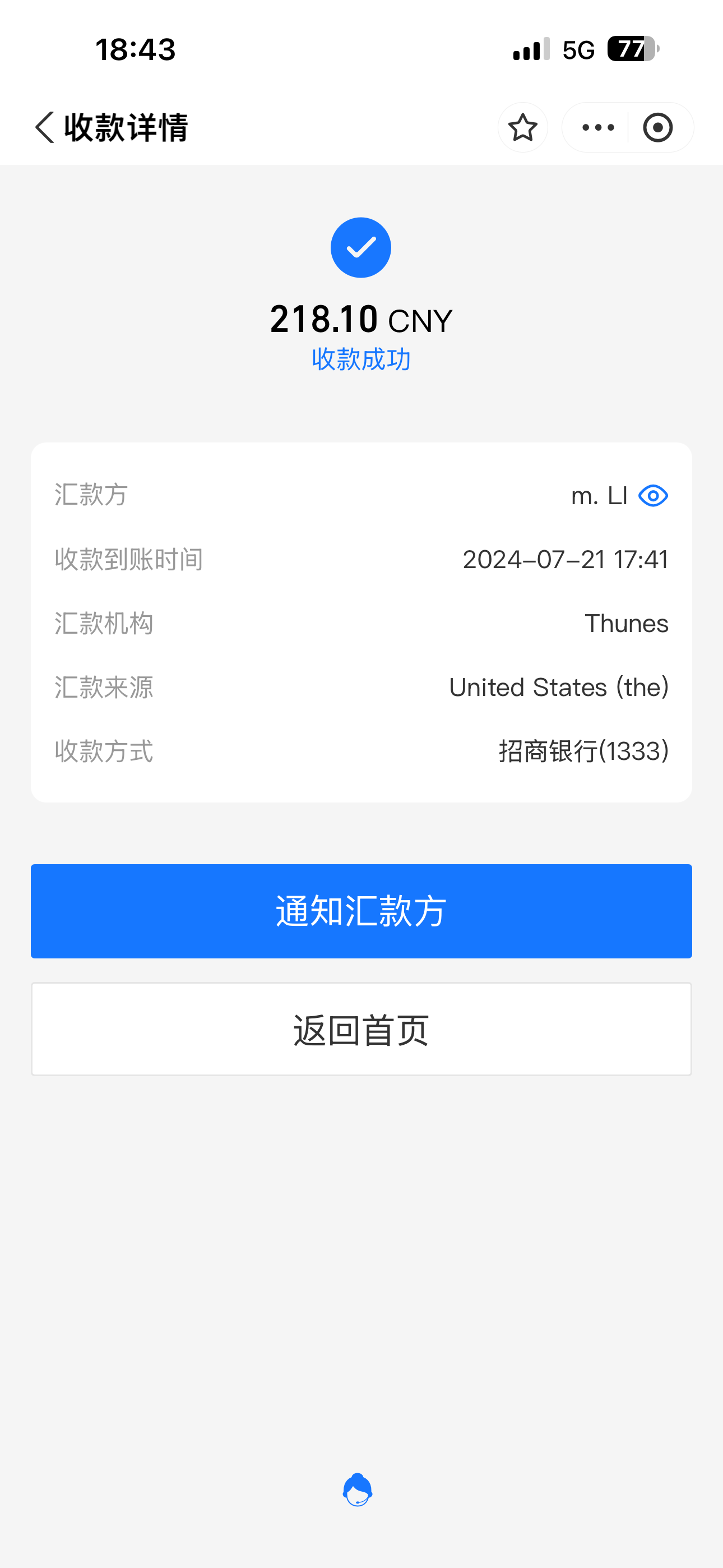 微信、支付宝收款秒到,无手续费,汇率还能接受,昨天我给我妈汇款测试了一下,101usd 到账 734.27 人民币,速度超级快。