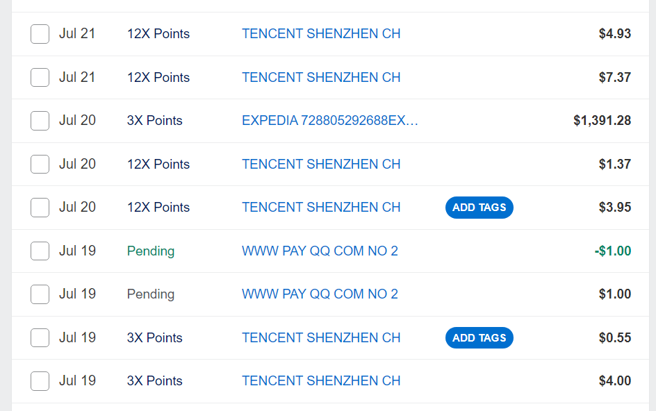 最近发现几笔微信的消费被amex surpass识别成了hilton相关消费,给了12X,不知道是什么bug,识别类别都一致,但有的是12x有的是3x