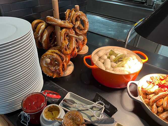 超大的pretzel雕像,早餐也提供,毕竟是被认为巴伐利亚南部的传统美食(我之前还以为这么难吃的一定是美国原创的