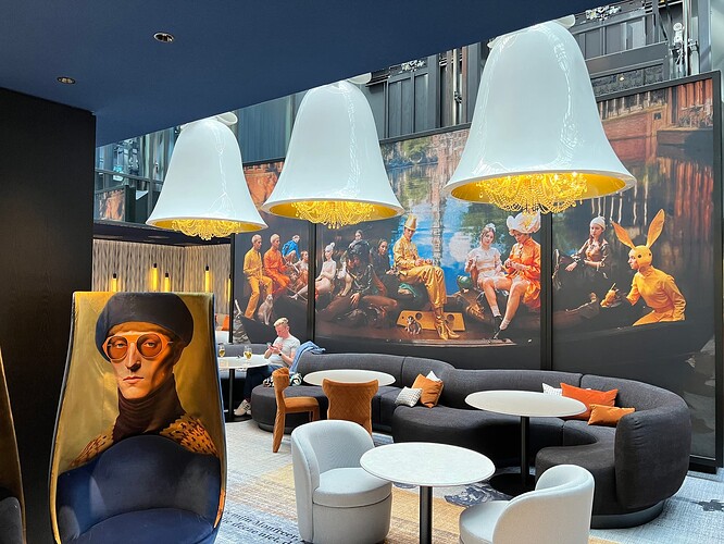 这家Andaz的入住体验应该是我整个欧洲旅行最为奇妙\奇怪的,酒店里有大量的 整活 艺术元素。刚开始表示不是很懂他们的艺术感(但也大为震撼),给我幼小心灵带来的冲击完全是可以单独拿出来写一篇“吐槽向”的体验报告的,看多了后就慢慢接受并理解了一切。酒店整的活实在太多了,最后我也就开始享受这些奇怪的(和其它酒店不同的)设定,并且像找彩蛋一样去找这家Andaz的独特之处,吐槽也就变成了赞美。这部分内容请配合下面的图片一起服用。