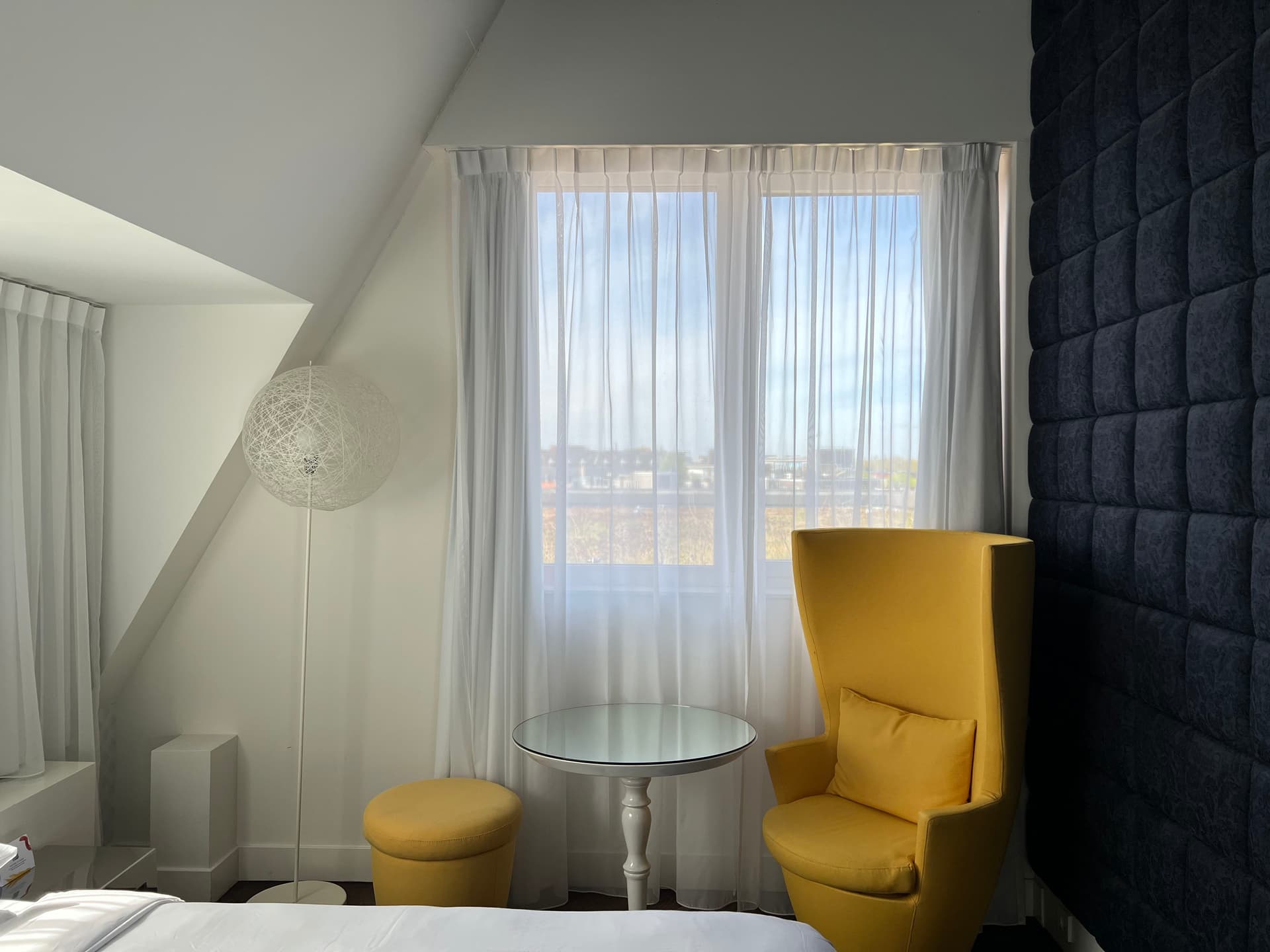 标准套房,客厅和卧室是隔开的,而且客厅面积真的很大,卧室里这种郁金香花朵形状的座椅我很喜欢