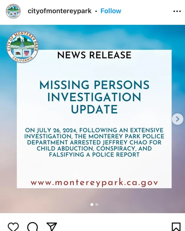 上周在LA闹得沸沸扬扬的 15岁华裔小女孩离家出走 就在华人区Monterey Park骑单车 从母亲处离开 据称是去aunt家 然后不见踪影