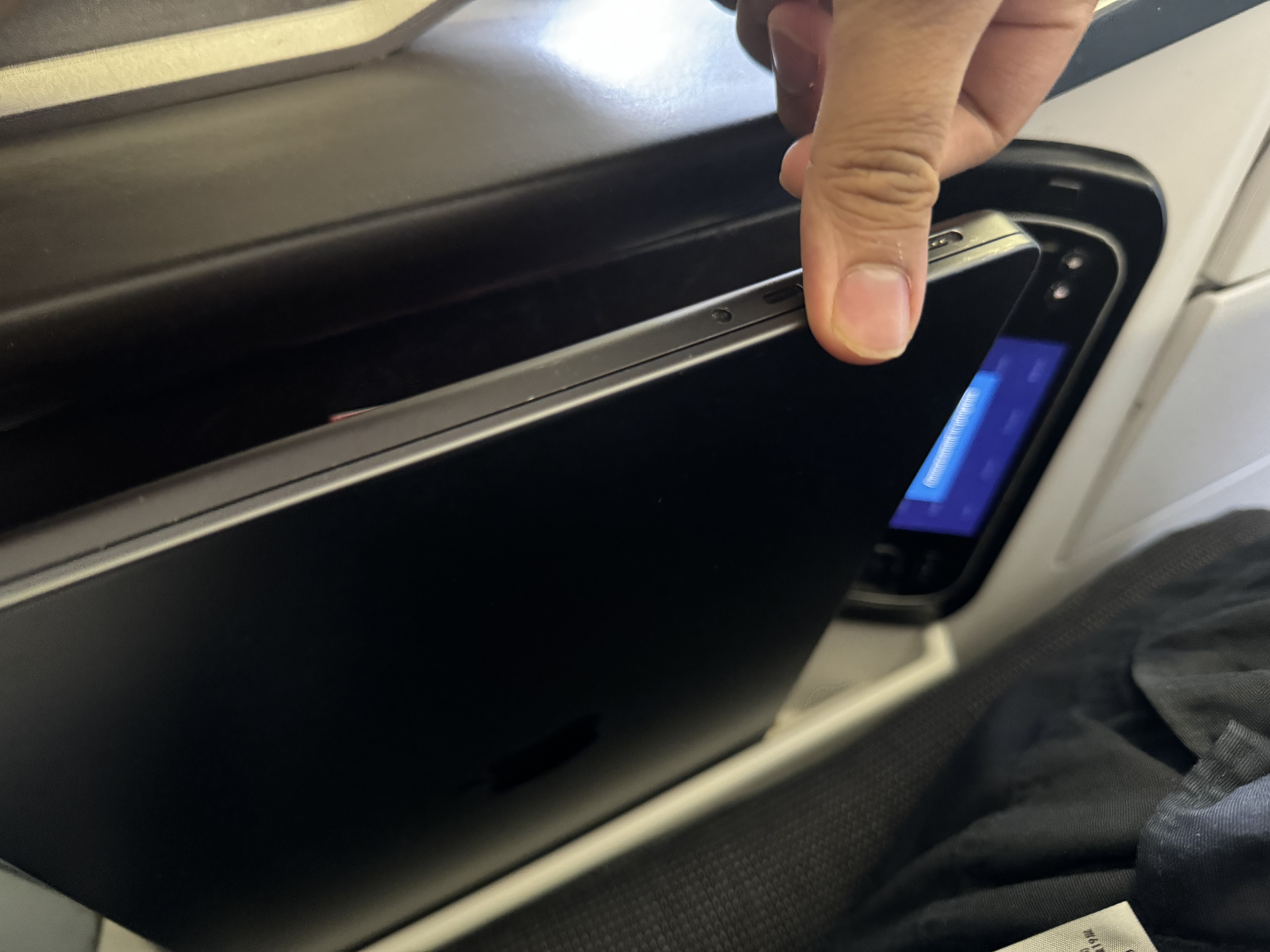 根本没有什么可以放电脑的空间。我放在zhe’li这里,它会倒下来搭在我腿上。