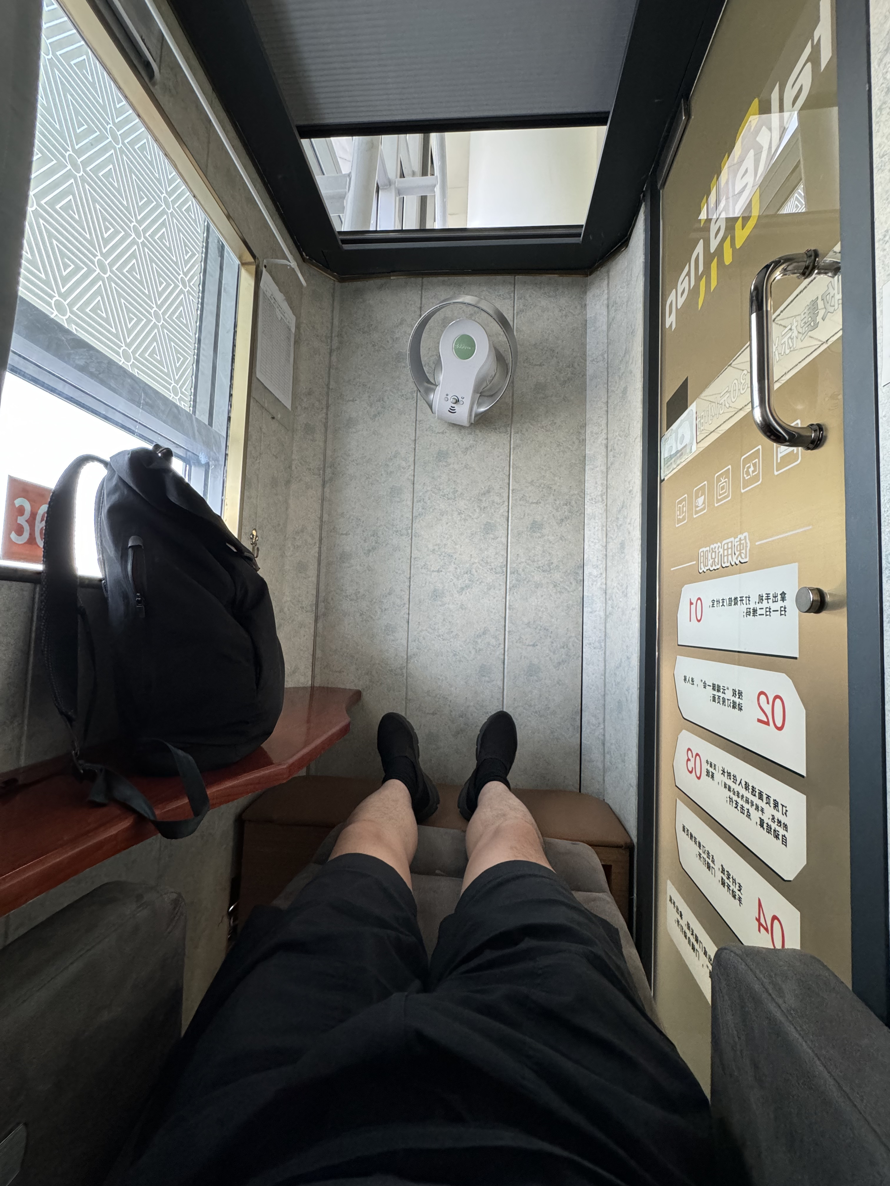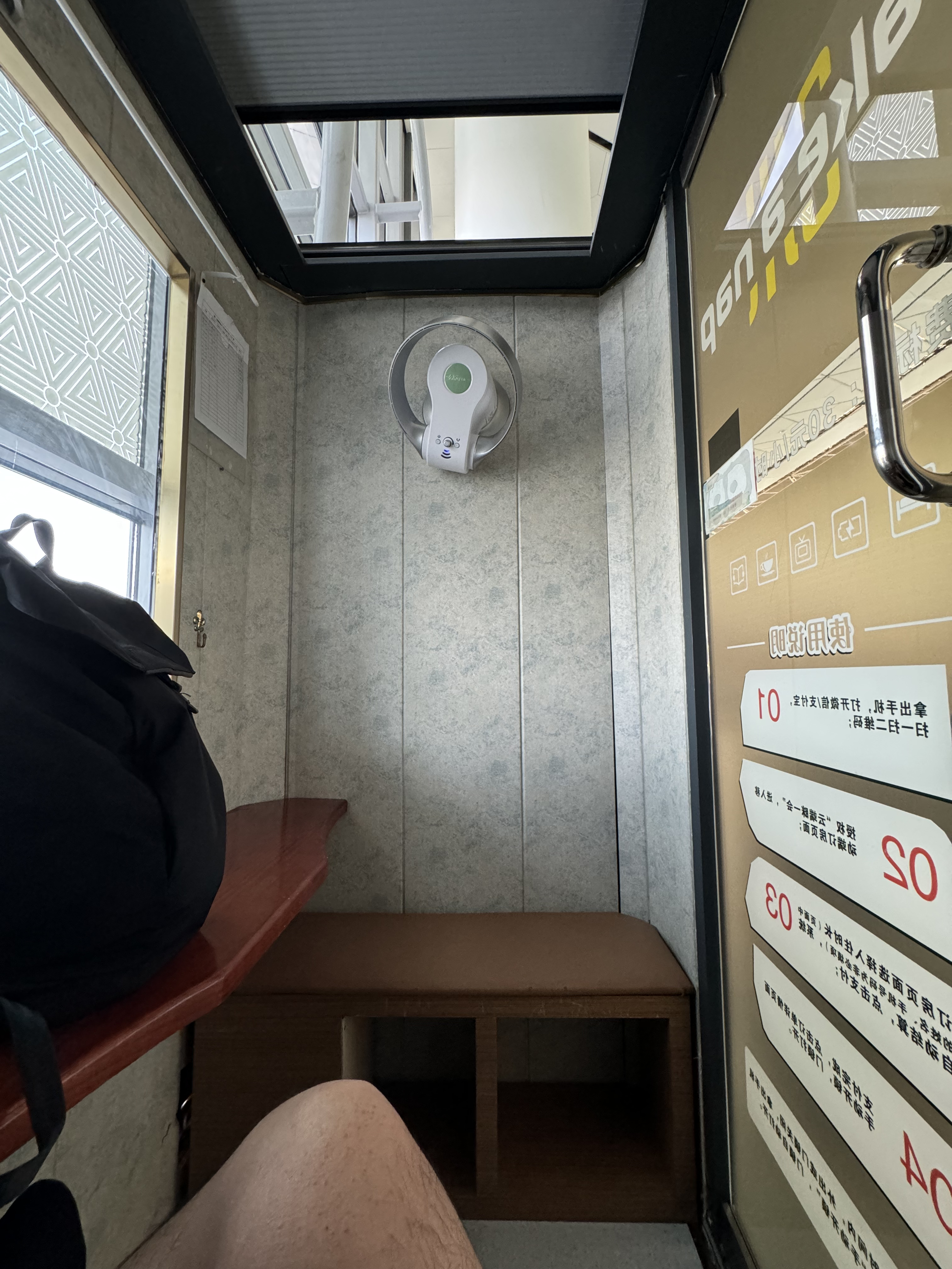 里面有个风扇。机场真的热爆了,感觉空调开的不行。风扇打开就特别舒服。