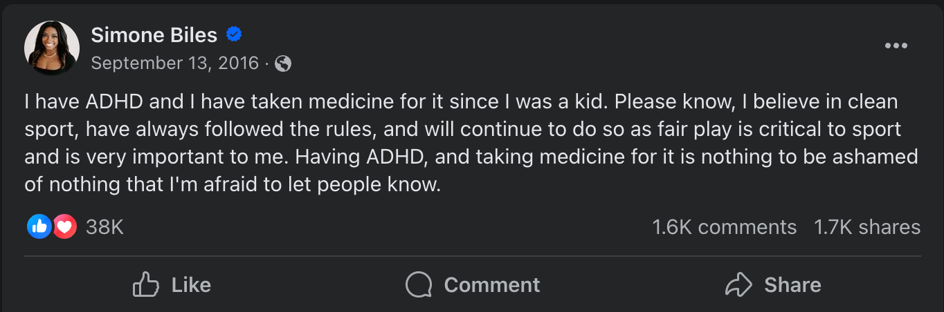 In a press release issued September 13, USA gymnastics confirmed that Biles submitted and was approved for a therapeutic-use exception in order to continue taking methylphenidate, a prescribed medication on the World Anti-Doping Agency Prohibited Drug List. In other words, Biles has broken no rules or regulations; her medals are not in jeopardy.
