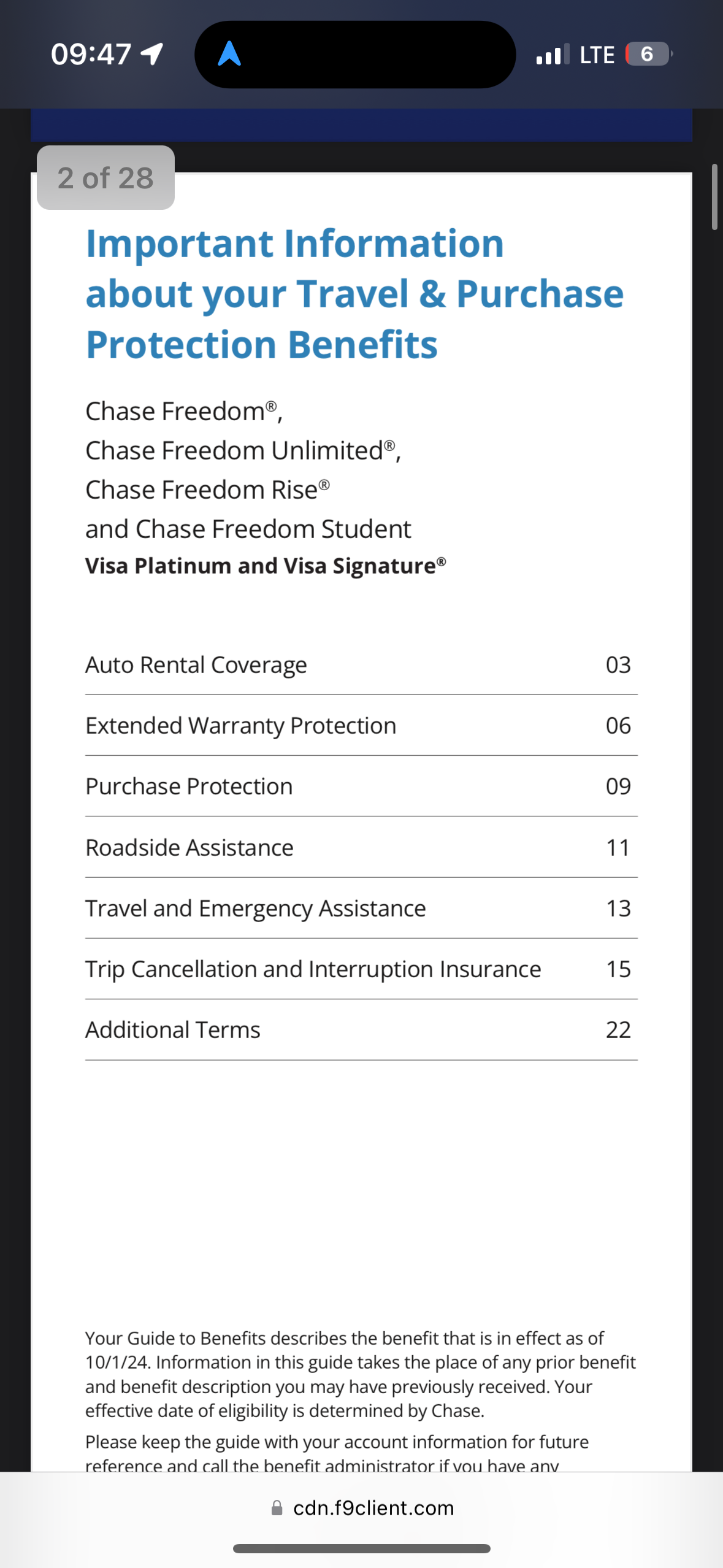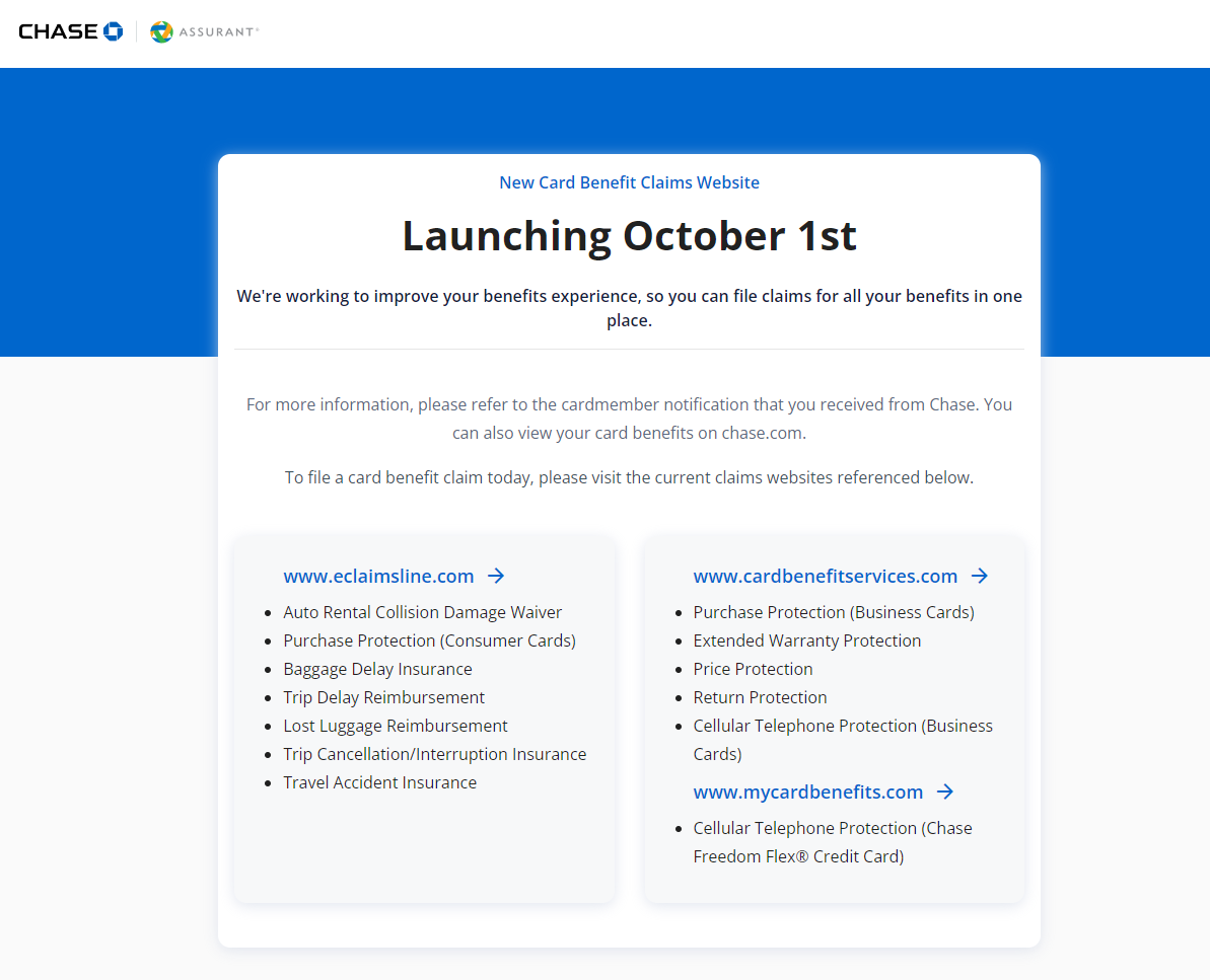 • Info and online claims filing: chasecardbenefits.com