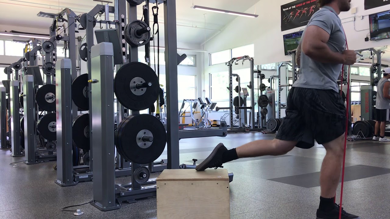 Squatting to a box: I would do this type of squat until you think you can do the same movement without the box