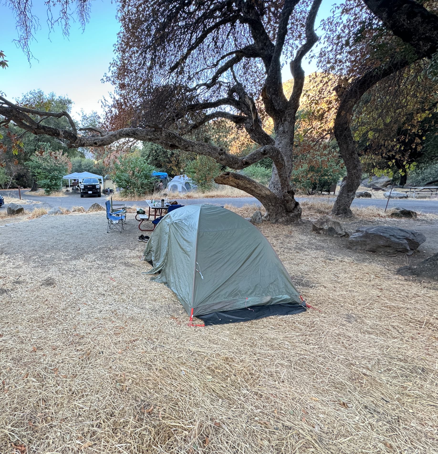 所以建議買個camp chair來用,體驗完全不同。我買的是Costco的這款,之前4-5月的時候有特價。要注意這款在組裝的時候會需要一點小技巧,最後一個角需要用點力氣壓進去,有些人可能覺得不是很好用,但我習慣之後不覺得是個問題。