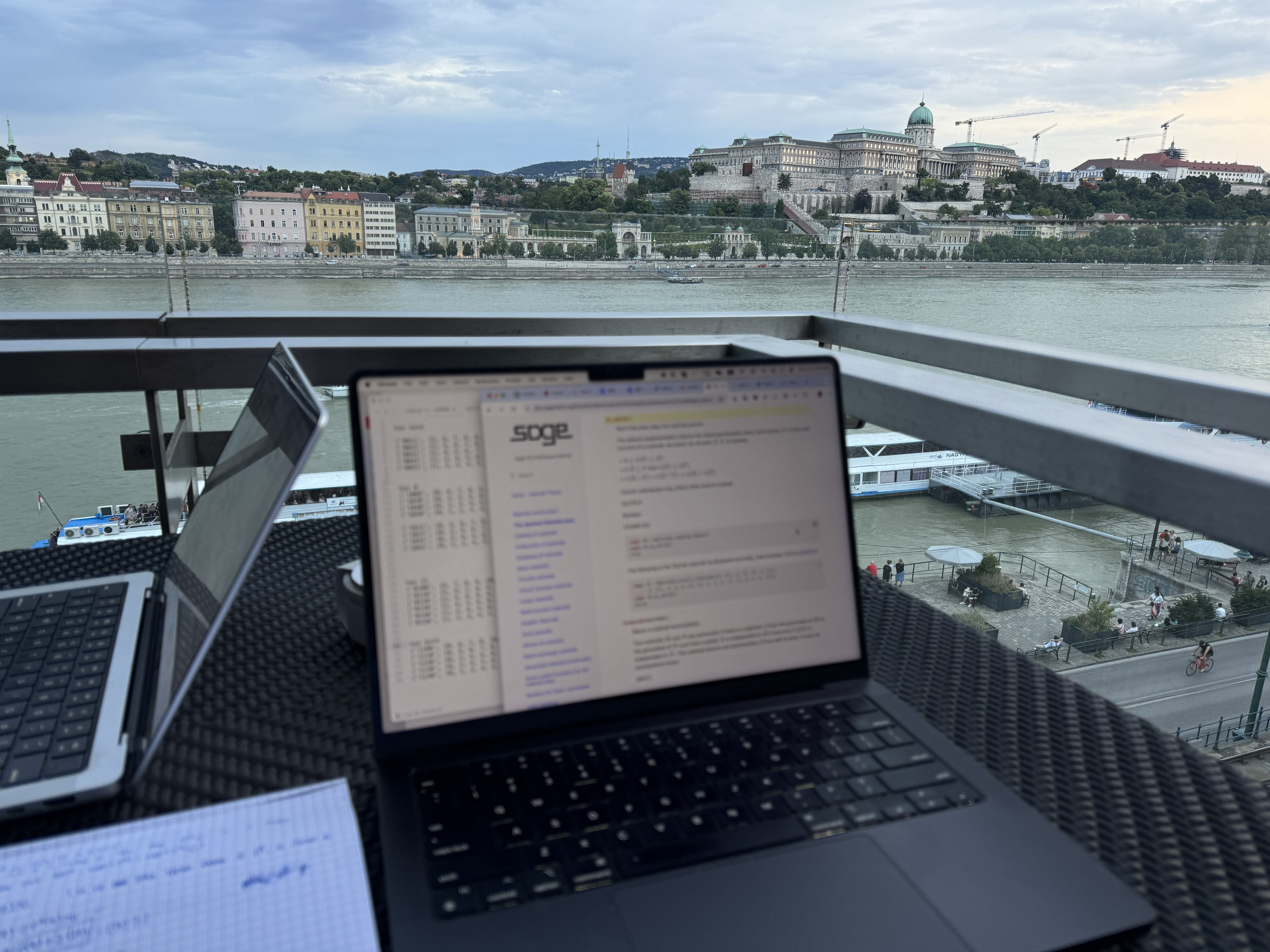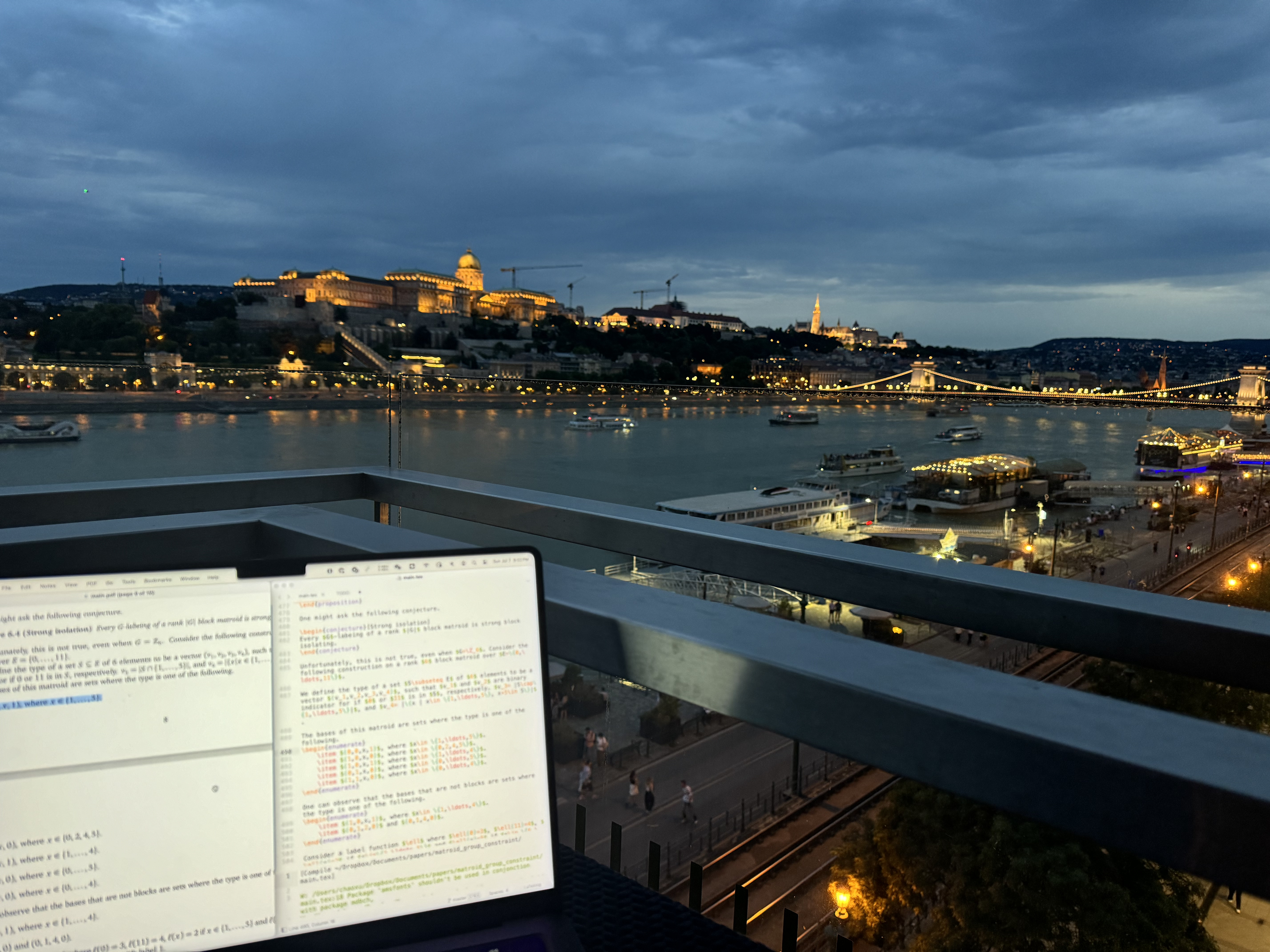 第二天要和合作者去访问ELTE,所以合作者也跑来蹭酒廊+巨大的阳台,讨论了不少研究。