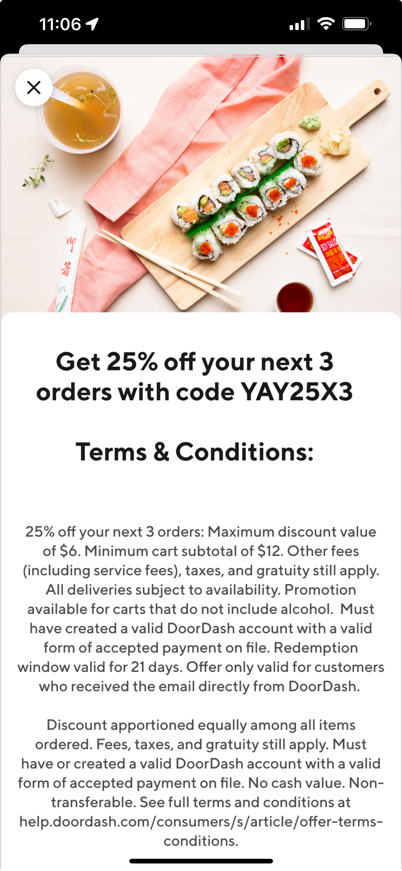 新codes, 50DELISH for 50% off three orders $12+ until 5/1/24, 50OFFDASH for 50% off your order. Valid for two orders, minimum $12 order, maximum $10 discount.