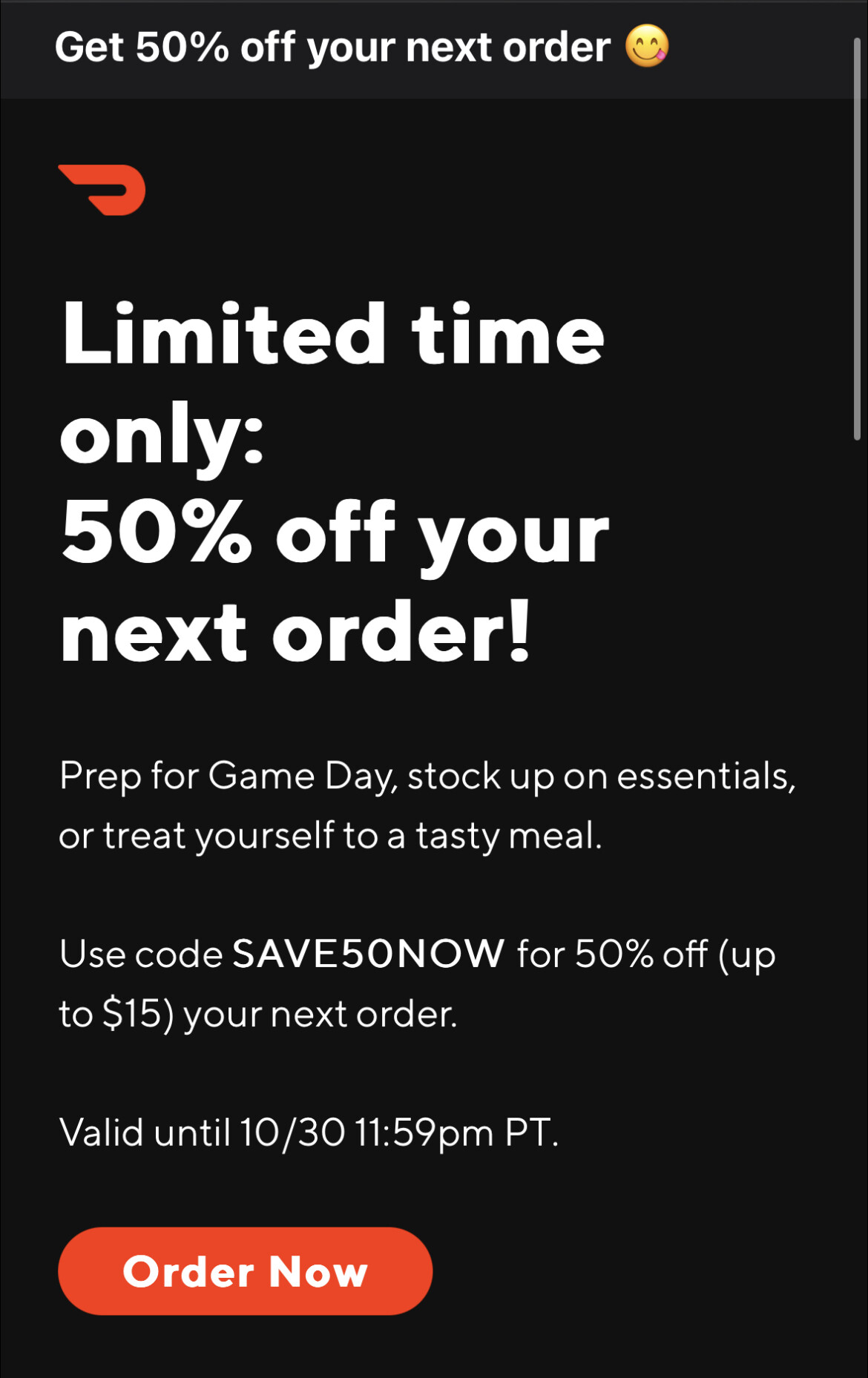 DashPass members get 20% off 1 order of $20+ with promo code UGET20 , email 里看见的,所有dashpass 用户应该都可以用