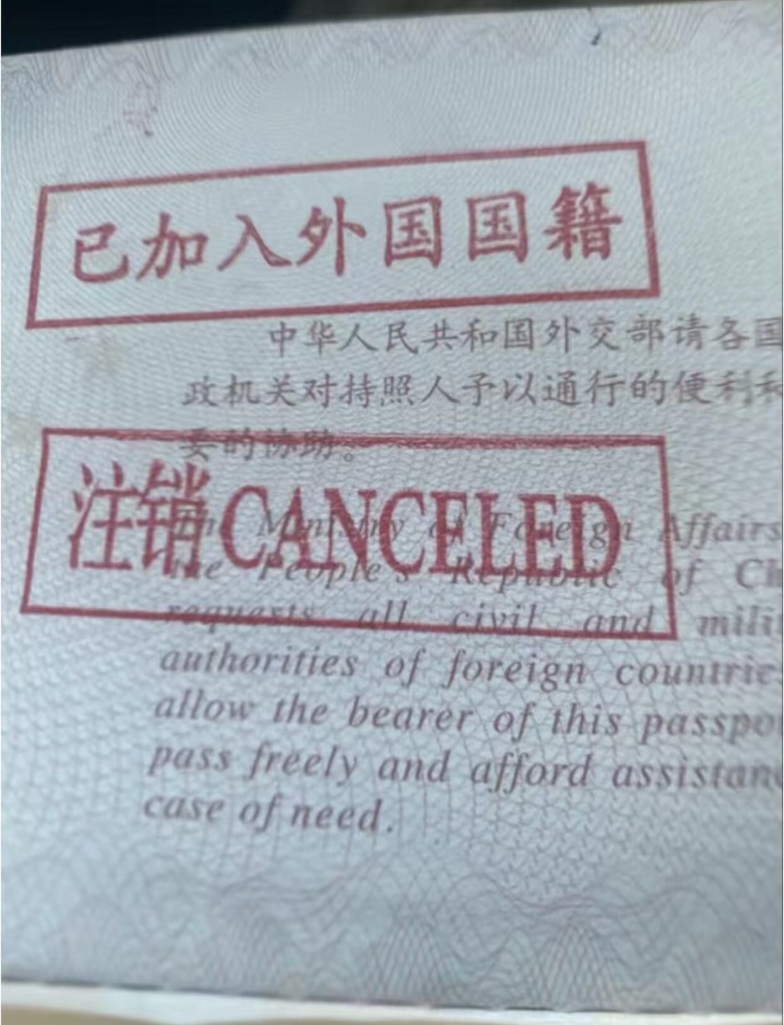 小红书见过唯二两个盖了“已加入外国国籍”+“注销”双重章的DP。我很一直好奇第一个章是在什么情况下可以盖到