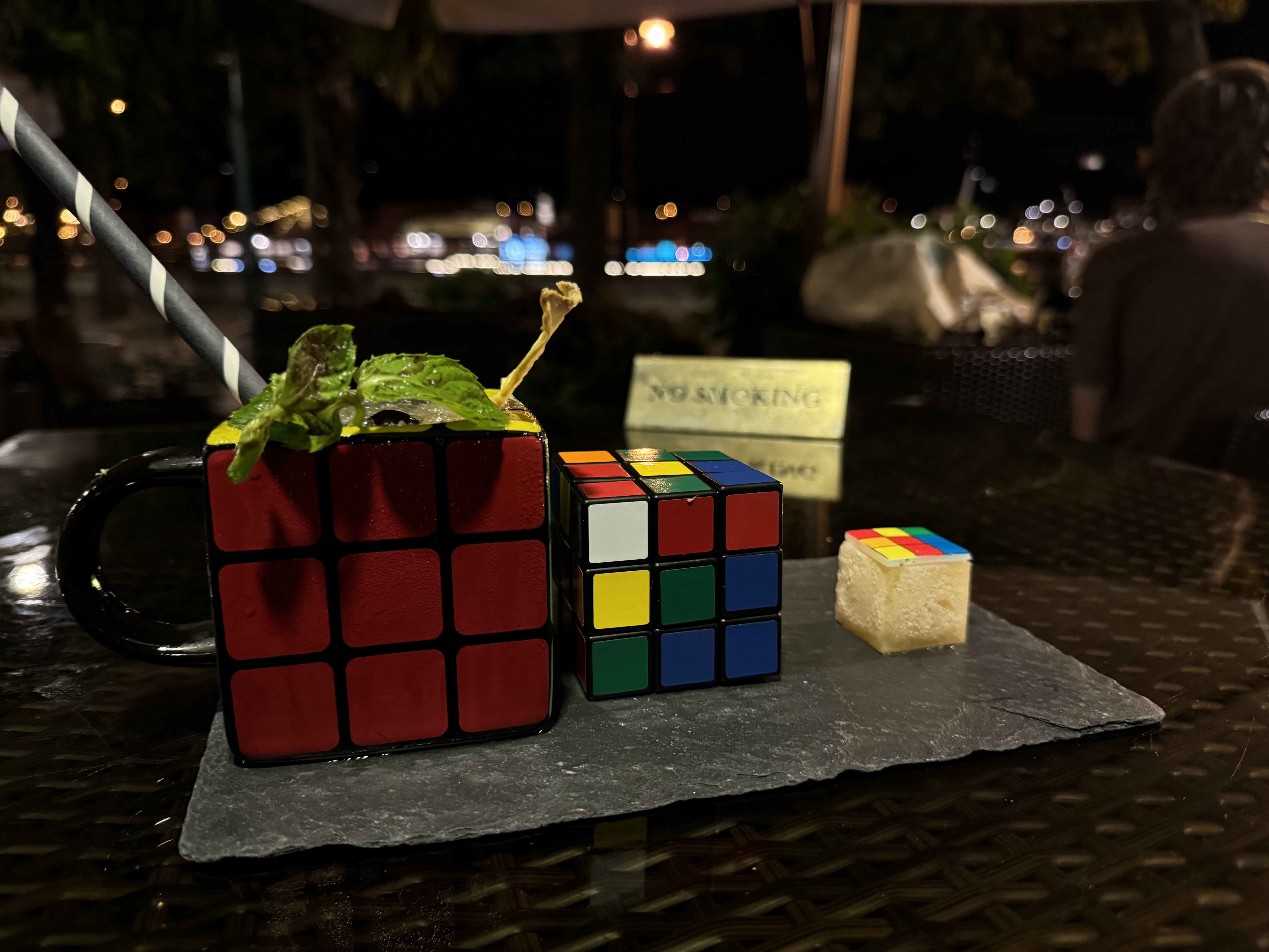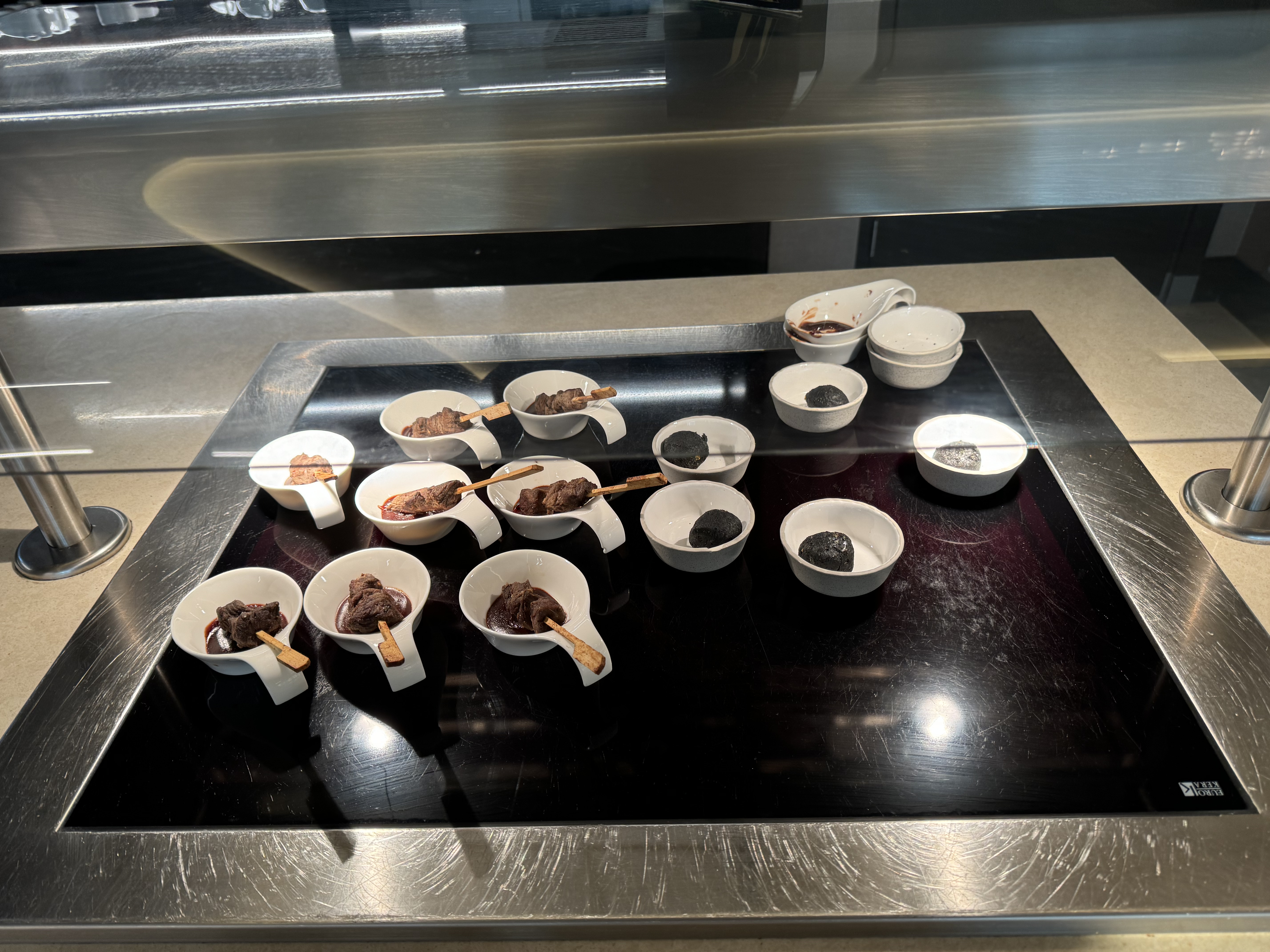 最后一晚突然想起来,作为洲际,有个$20的food and drink credit没用。一看都要11点了。赶快爬起来去楼下喝了一杯。点的是他们的特色,魔方啥的饮品。其中最左边可以看出事酒,但最右竟然是一个酒精冻。超级凉。吃了一口马上喝了这杯全是冰的酒来暖一下自己。