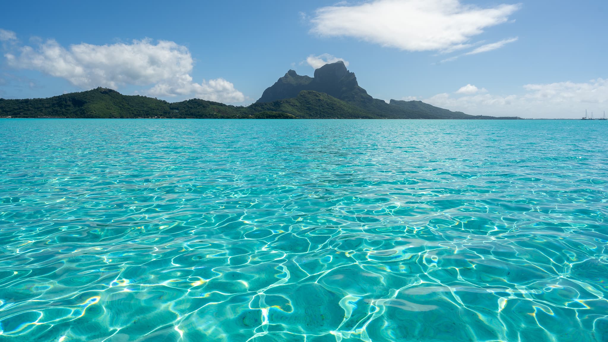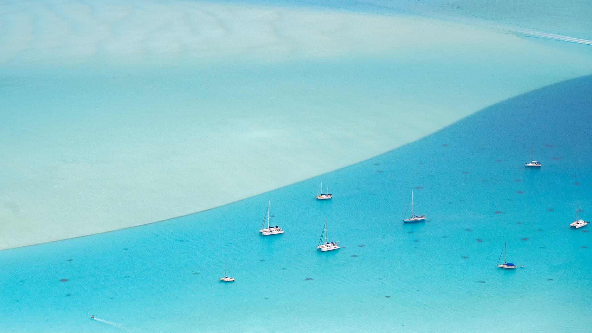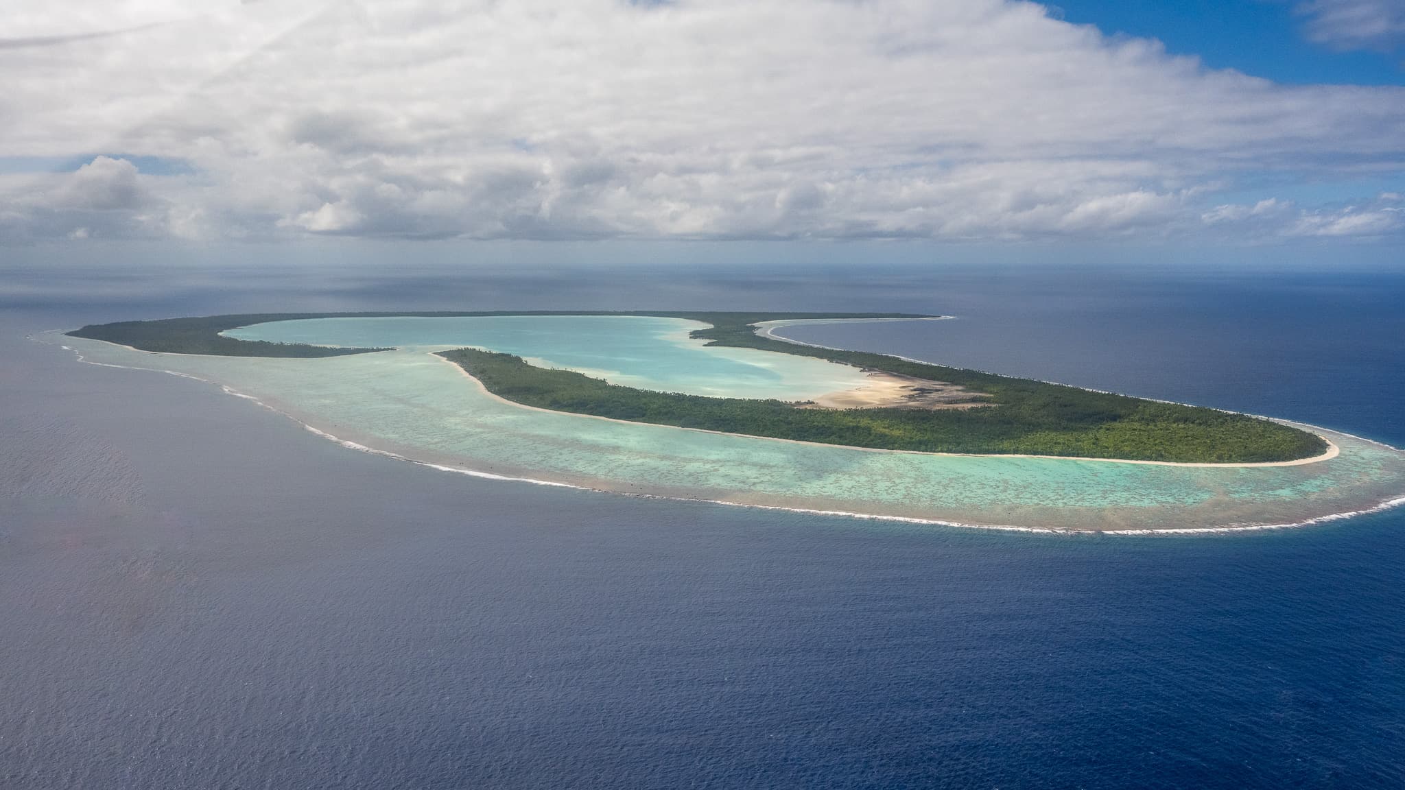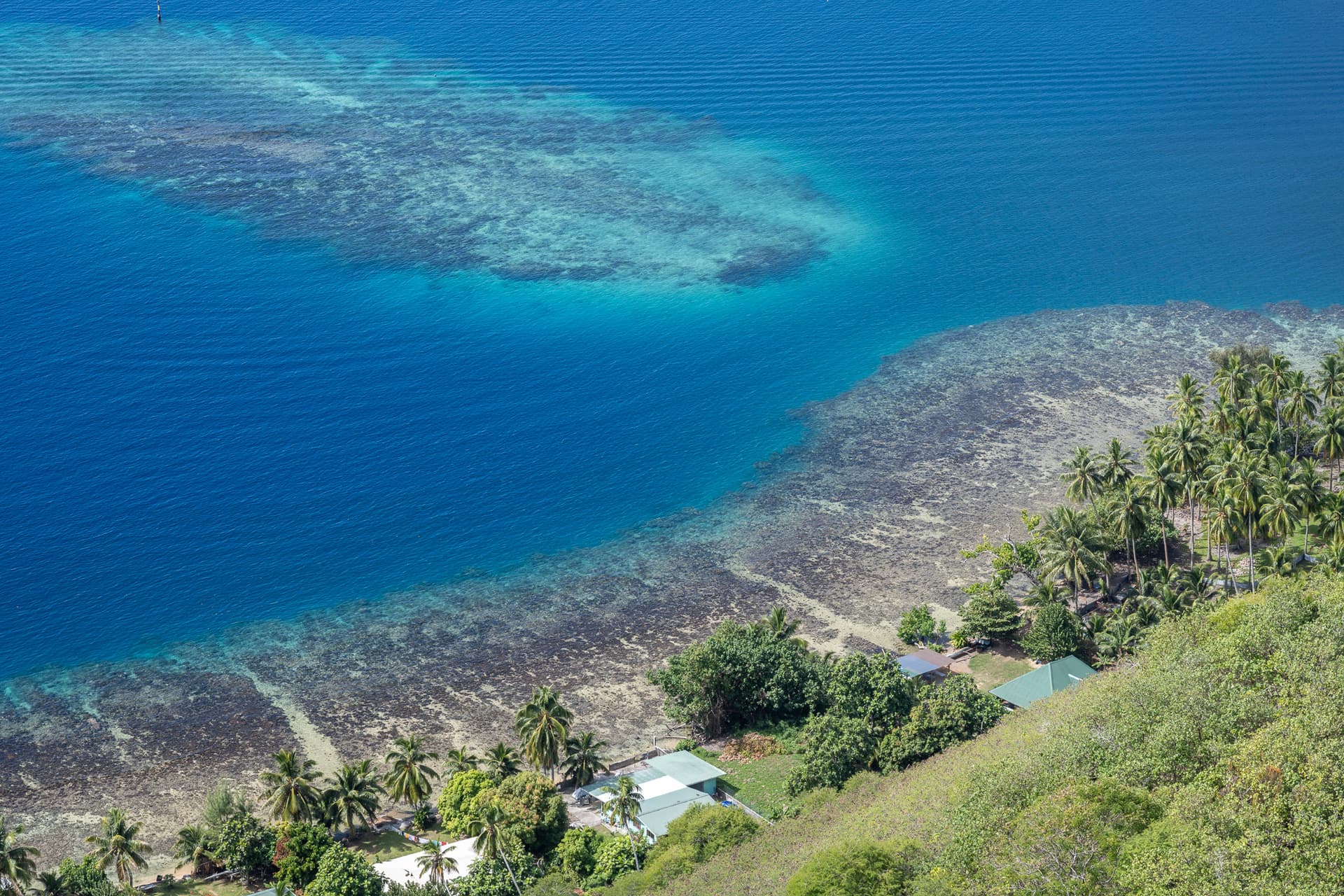 南太平洋的各种火山小岛有着或许是全世界最好的环礁潟湖。围岛一圈的环礁作为天然屏障,阻隔了南太平洋肆虐的风浪。潟湖内水浅沙白,放眼望去目之所及全是浅蓝色玻璃果冻海,背后有奇特的火山天际线,天堂也不过如是。