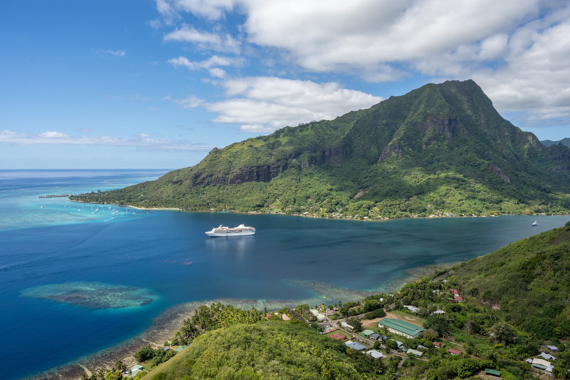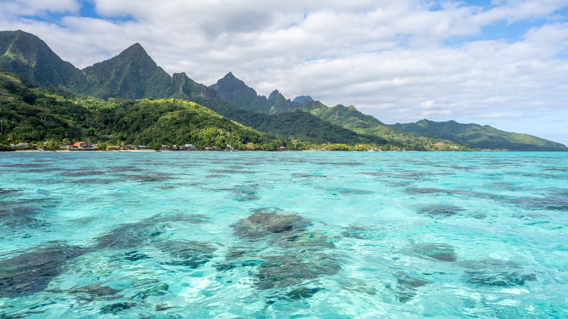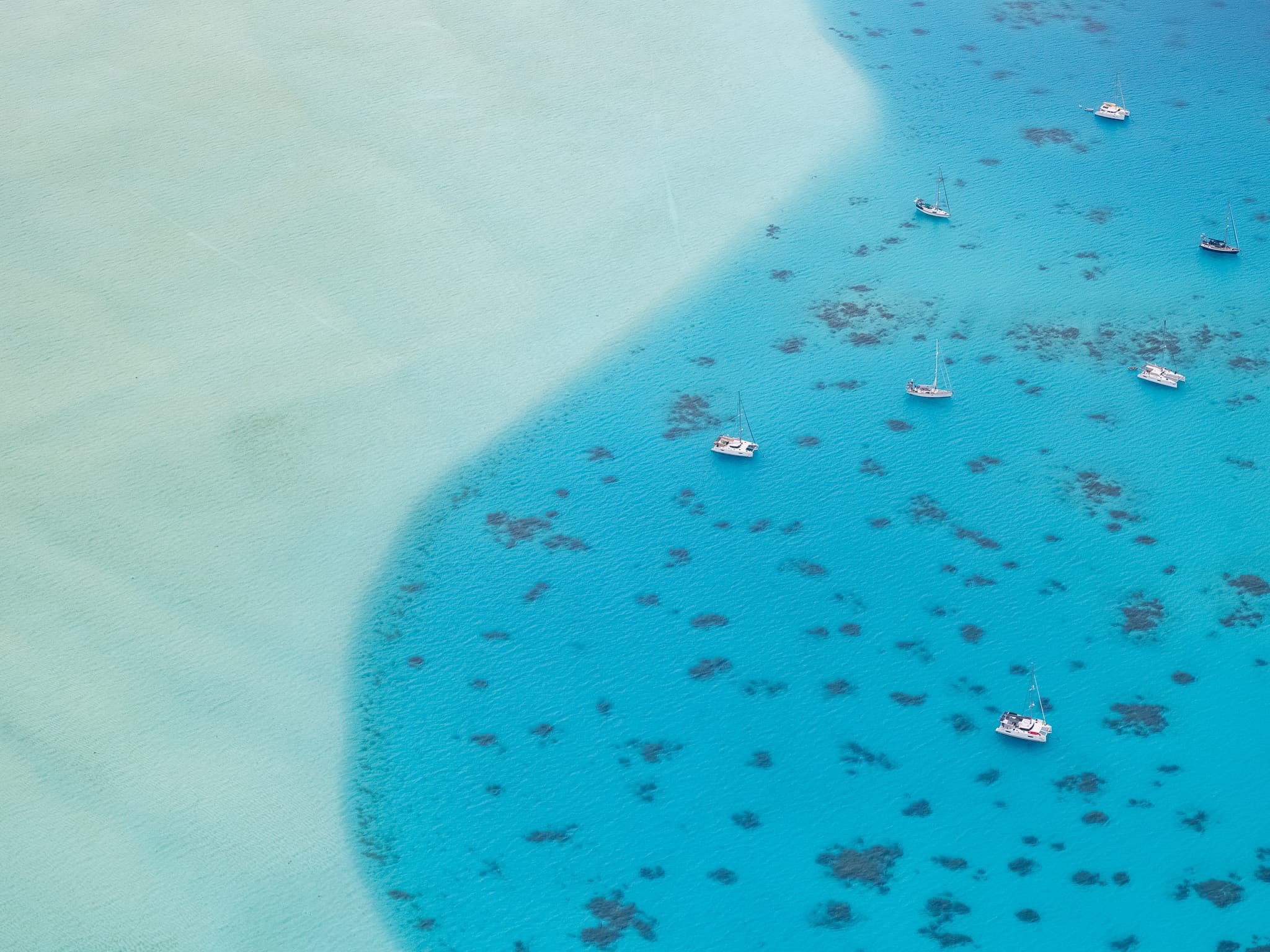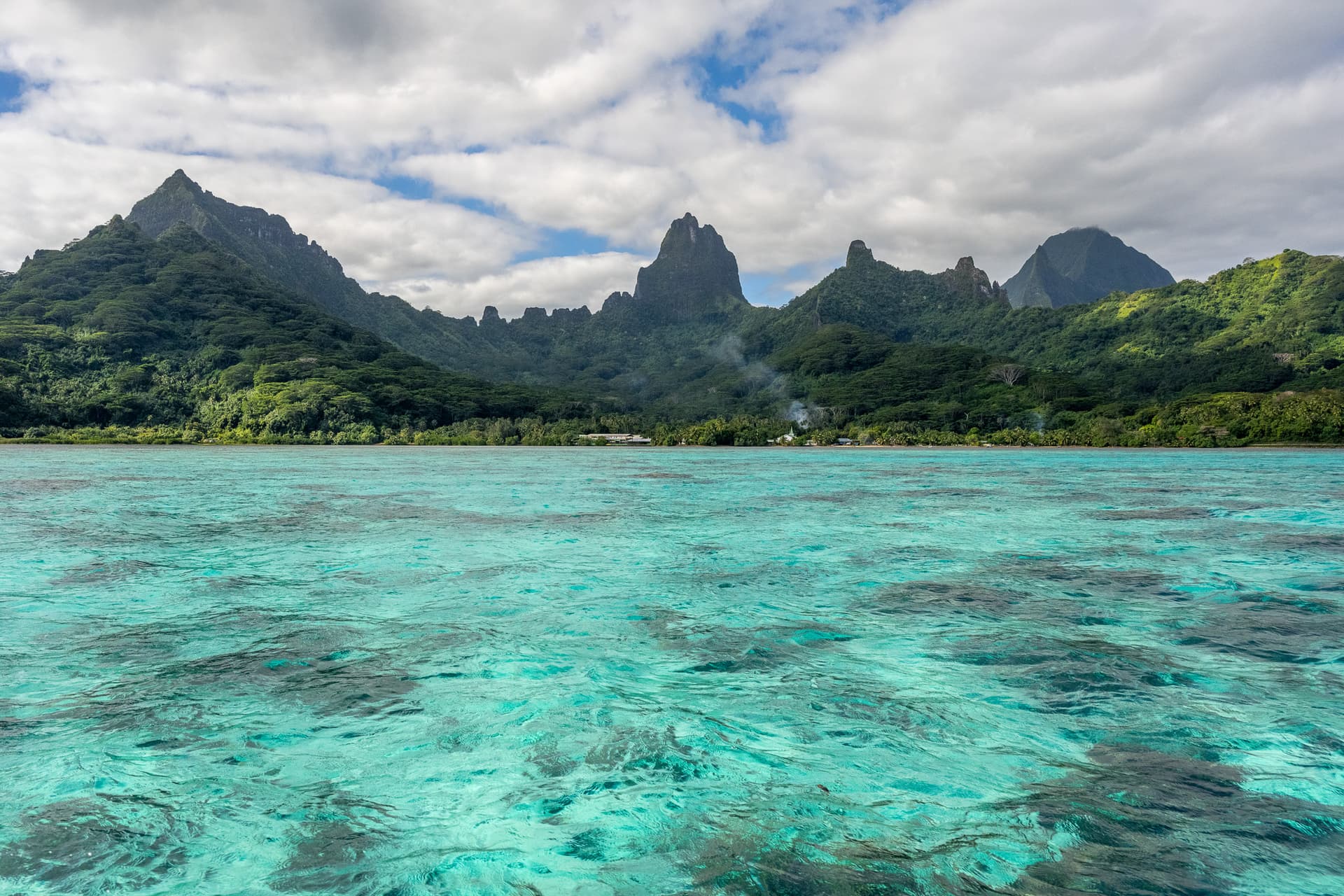 南太平洋的各种火山小岛有着或许是全世界最好的环礁潟湖。围岛一圈的环礁作为天然屏障,阻隔了南太平洋肆虐的风浪。潟湖内水浅沙白,放眼望去目之所及全是浅蓝色玻璃果冻海,背后有奇特的火山天际线,天堂也不过如是。