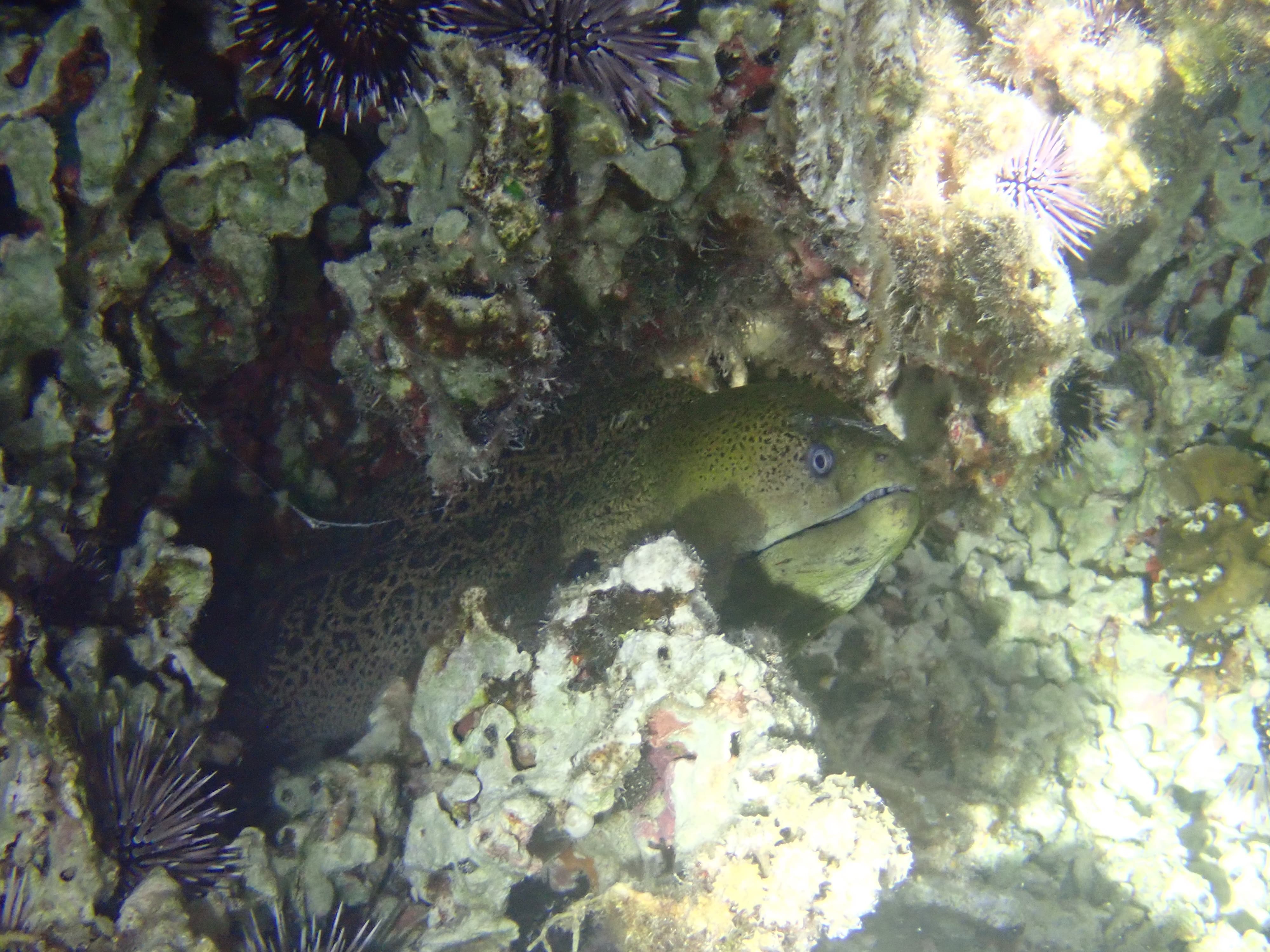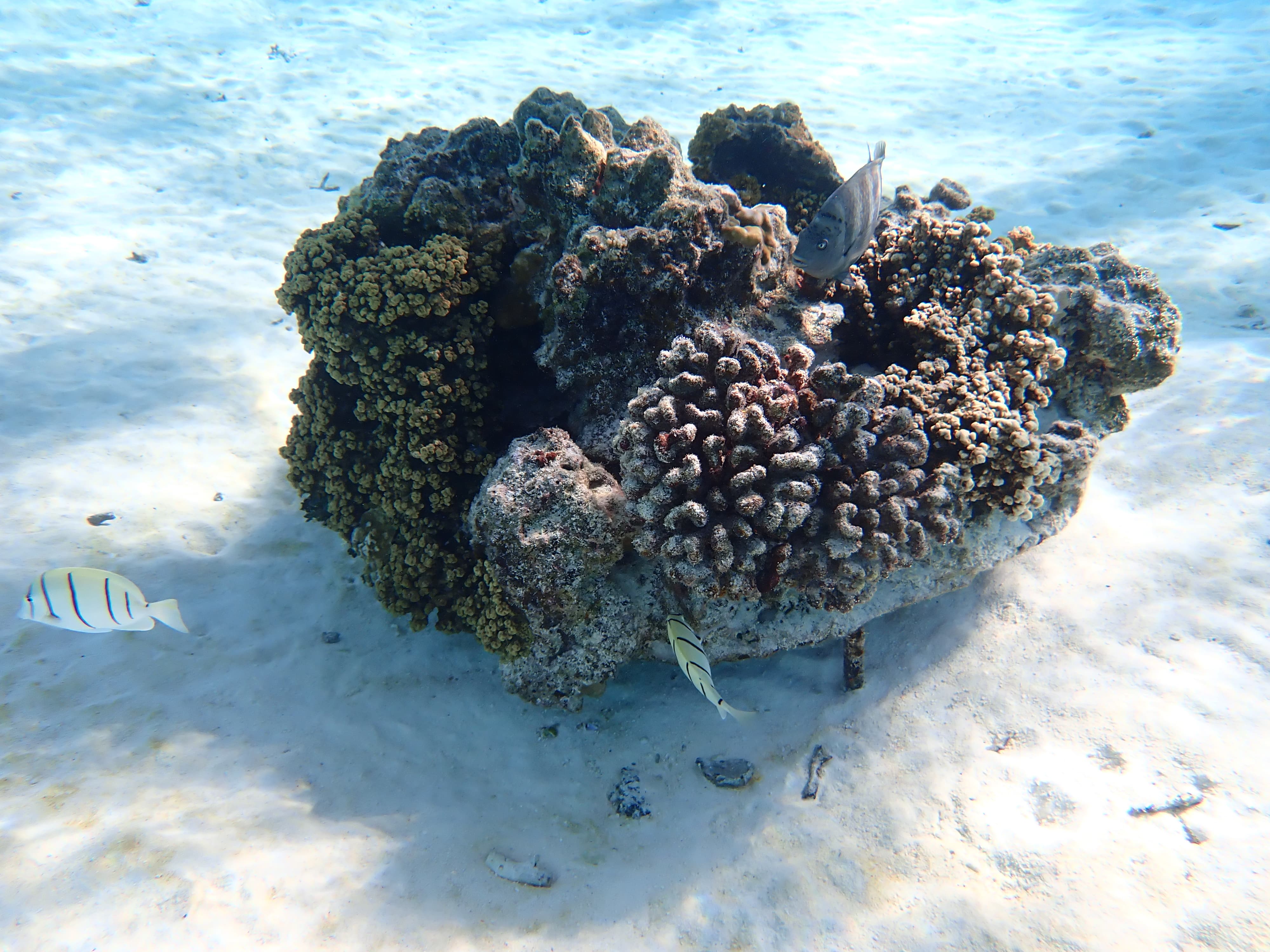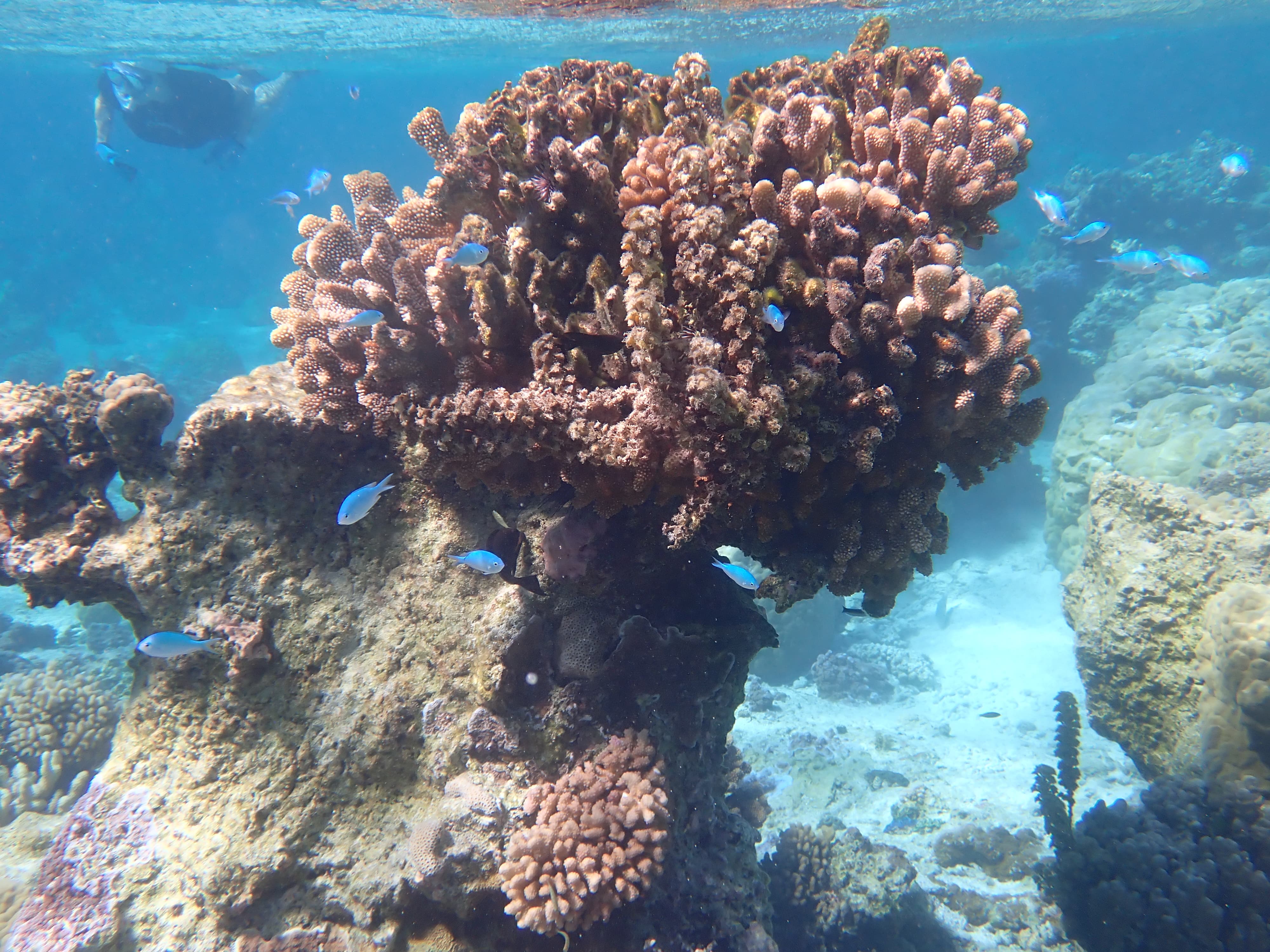 早上睡了个自然醒——睡了快10个小时一睁眼才六点,日出时在住处的沙滩上下水游了一圈感觉珊瑚礁乏善可陈,于是果断回到前一天晚上浮潜的地点,再看一遍这片珊瑚礁白天的样子。能见度比我以为的要差一点,但珊瑚茂盛程度和种类丰富度仍旧吊打北美全部珊瑚礁。