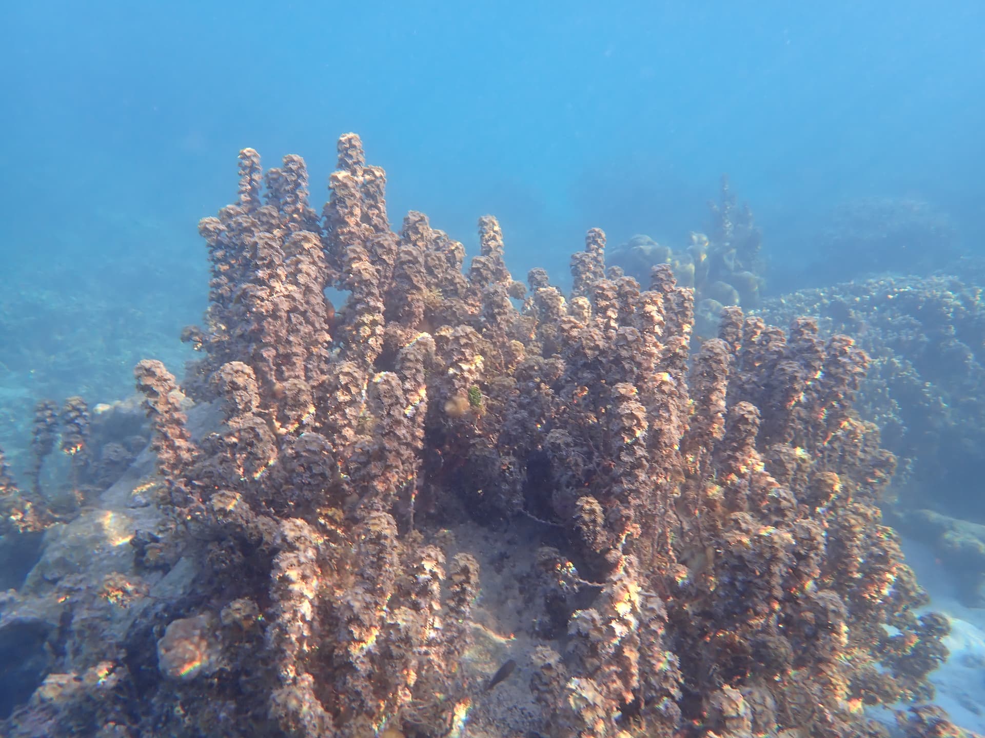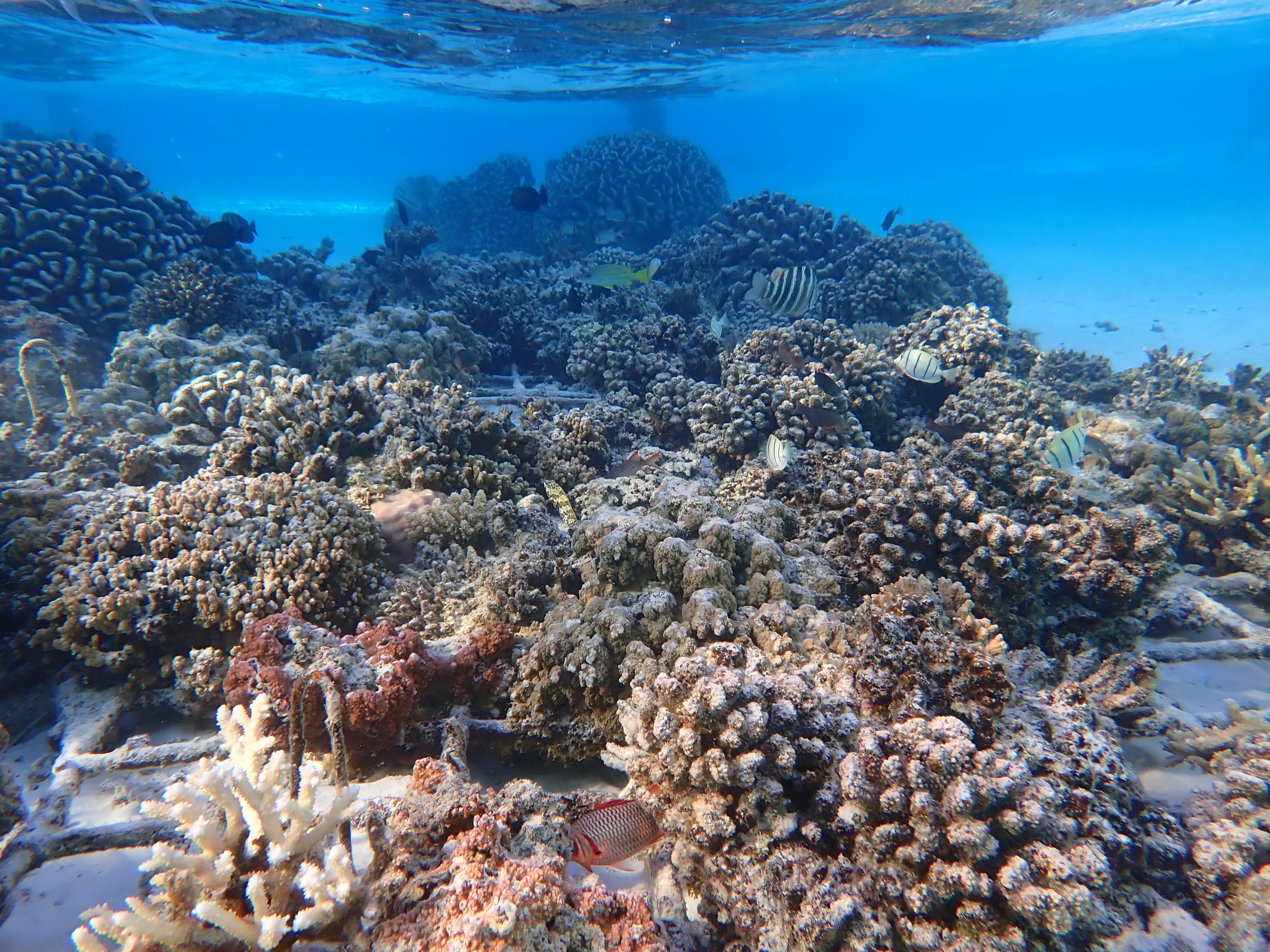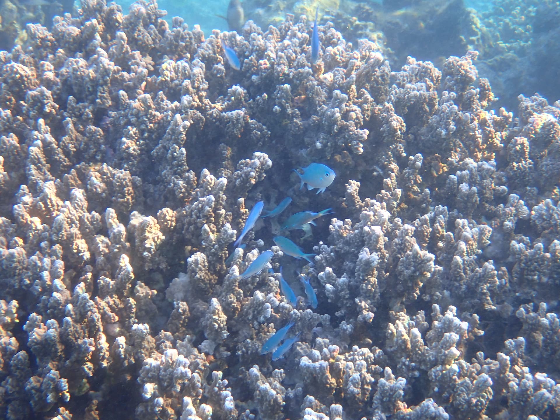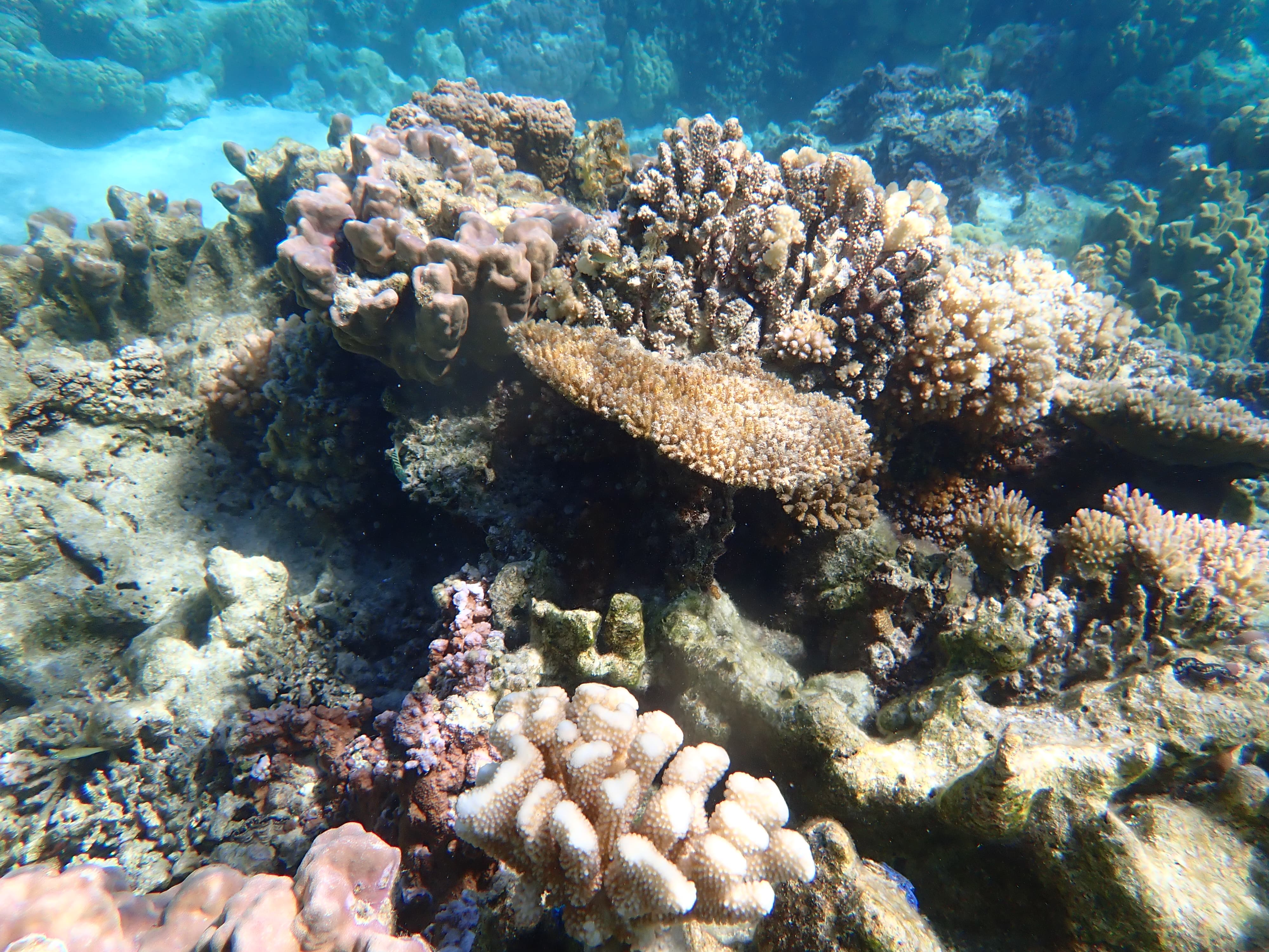 早上睡了个自然醒——睡了快10个小时一睁眼才六点,日出时在住处的沙滩上下水游了一圈感觉珊瑚礁乏善可陈,于是果断回到前一天晚上浮潜的地点,再看一遍这片珊瑚礁白天的样子。能见度比我以为的要差一点,但珊瑚茂盛程度和种类丰富度仍旧吊打北美全部珊瑚礁。