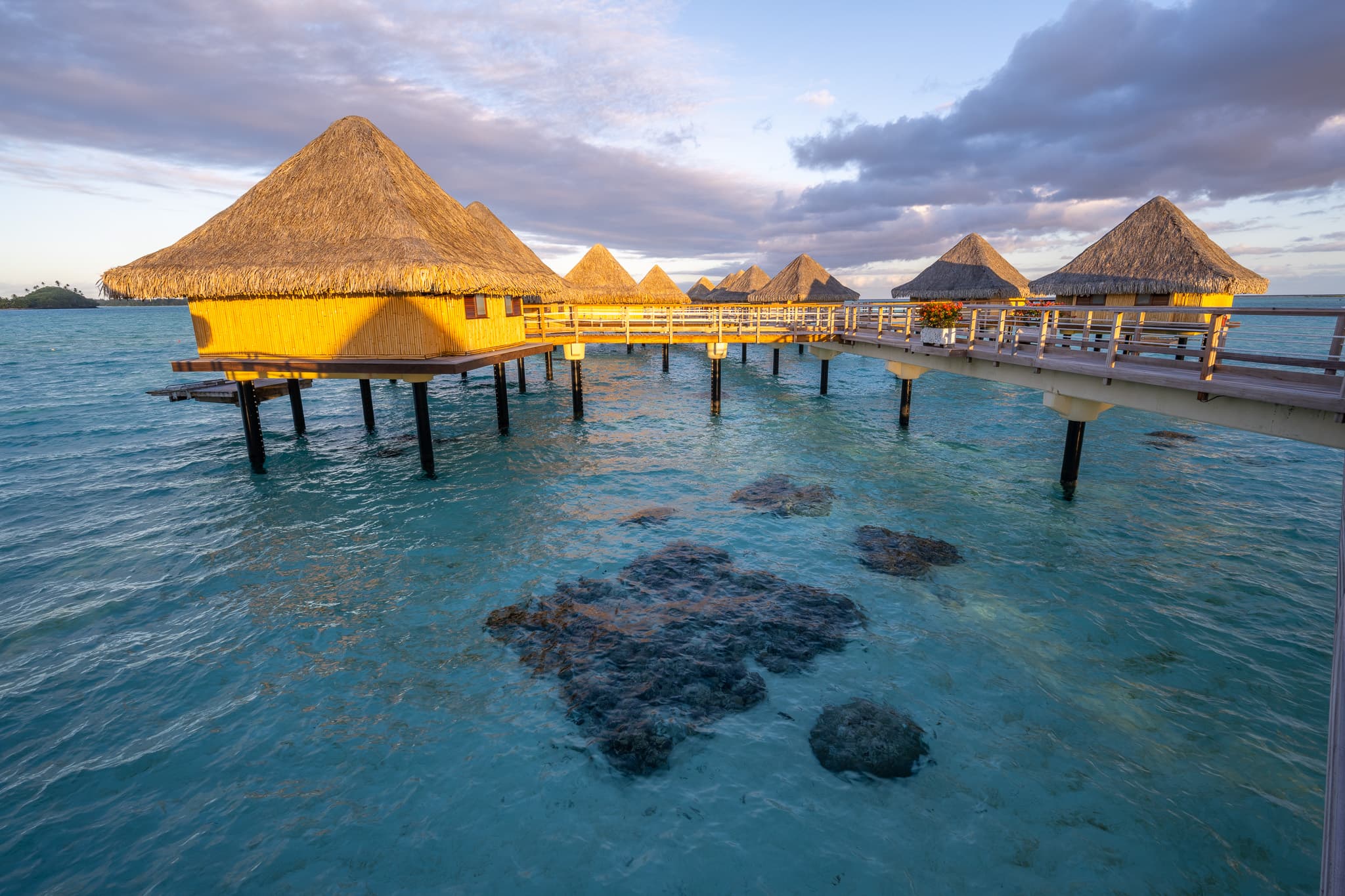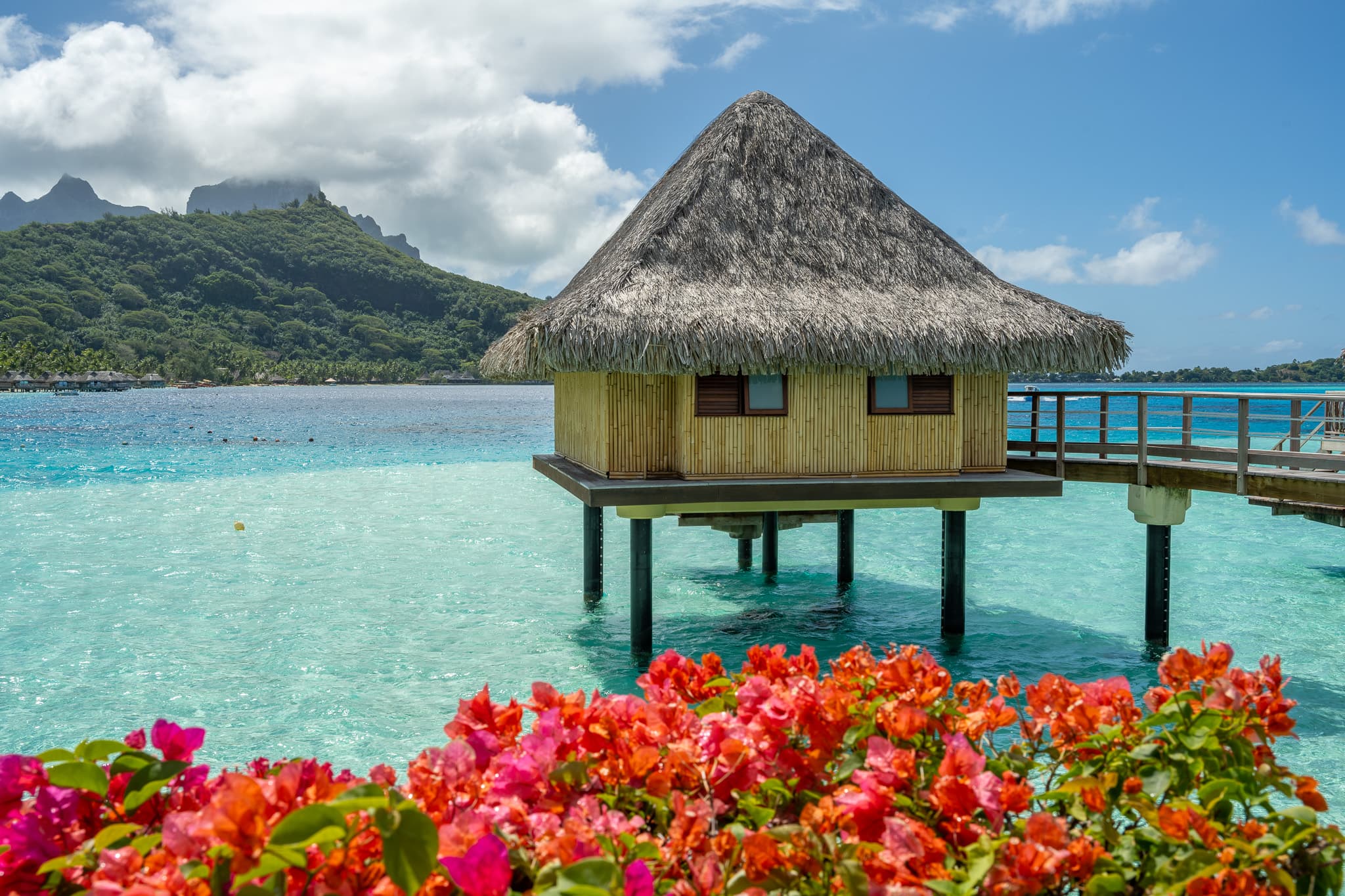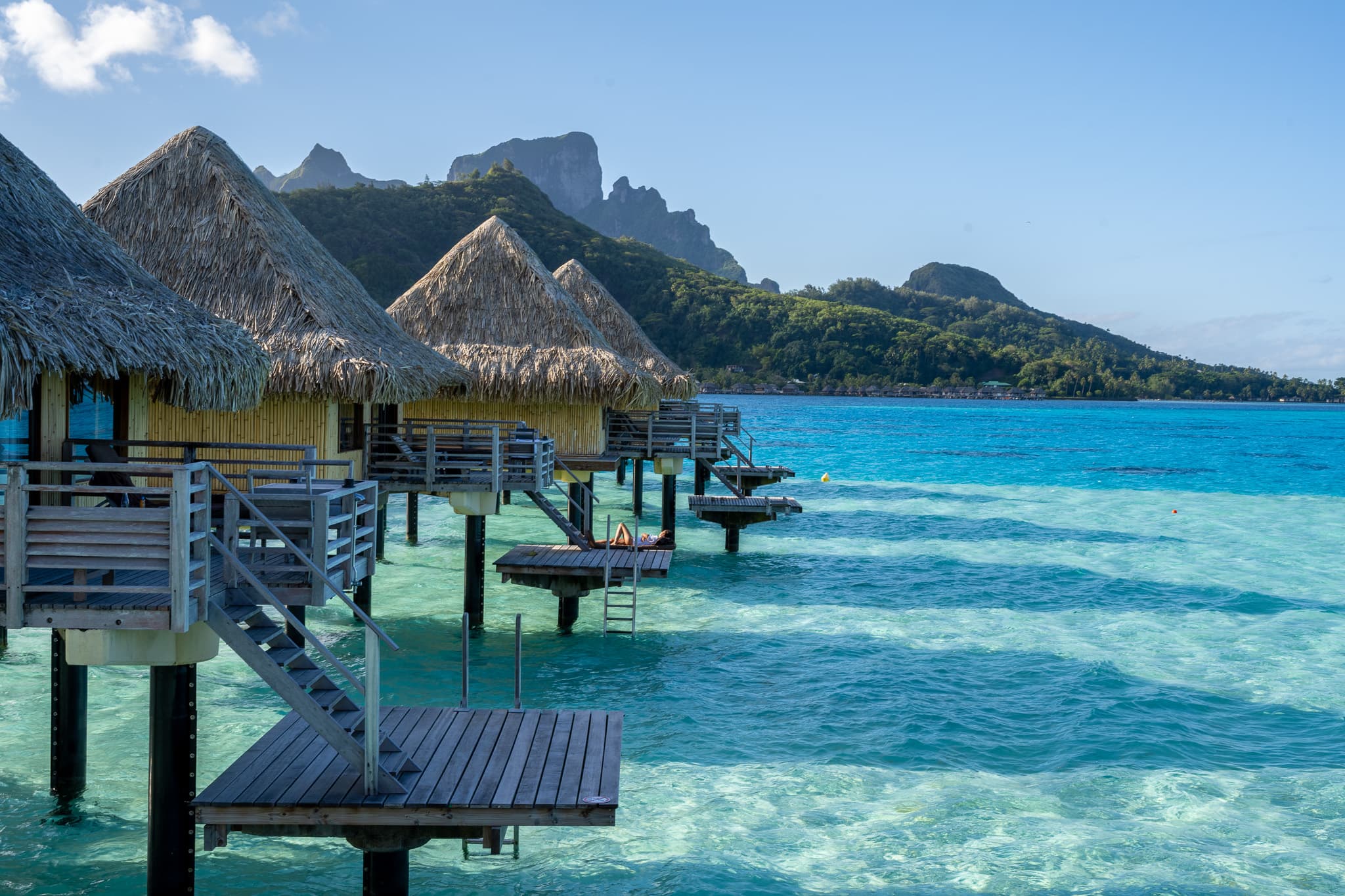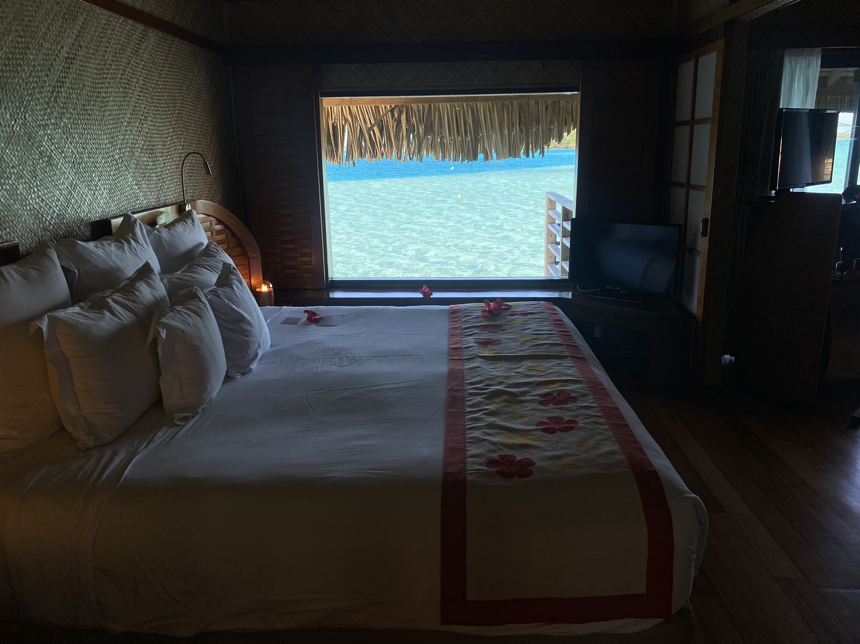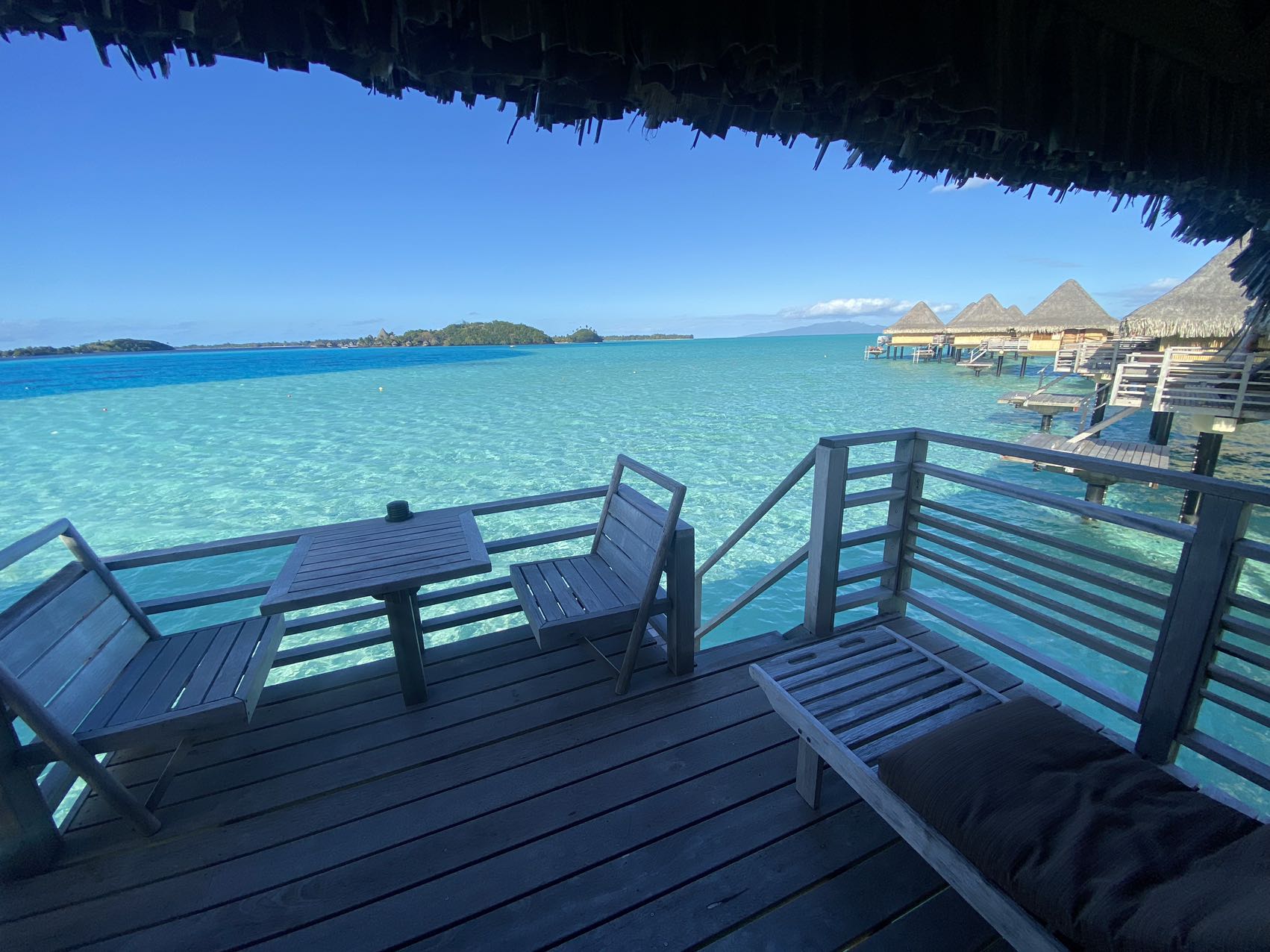 酒店水屋的外景,可以看到背后的Otemanu神山,虽然view确实比环礁洲际和瑞吉差了不少: