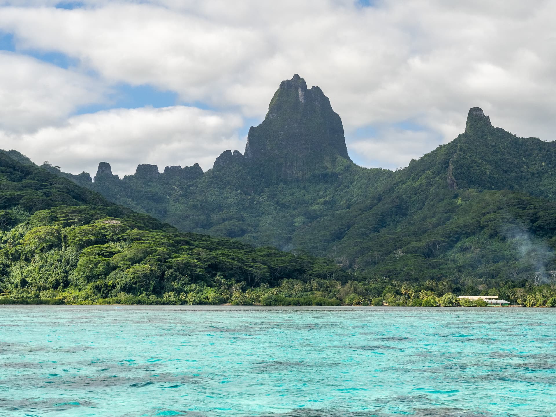 Tupai附近回看Bora Bora岛全貌,人间天堂莫过如是——当年在这里建基地远离太平洋主战场的美军是真的爽啊……