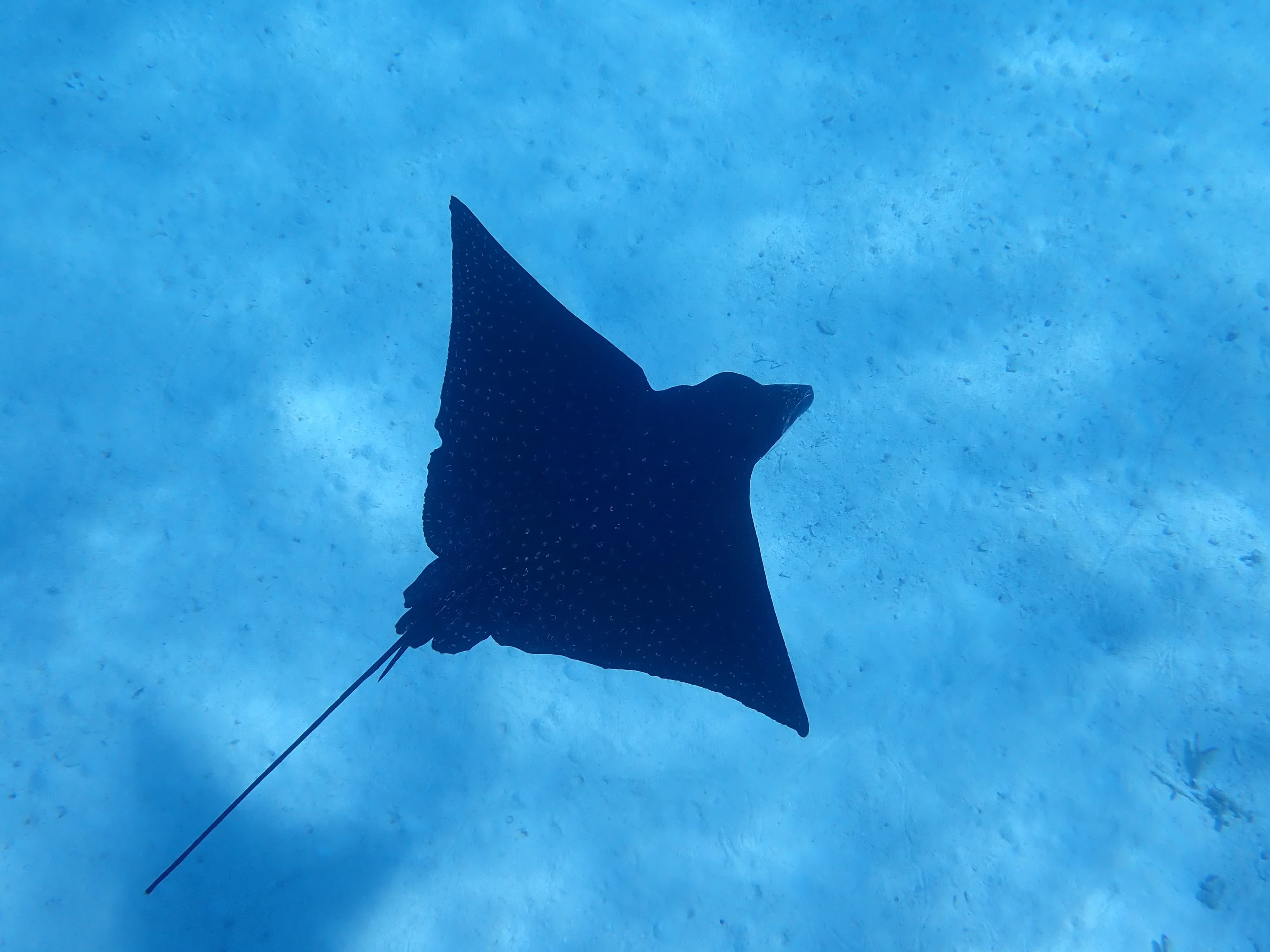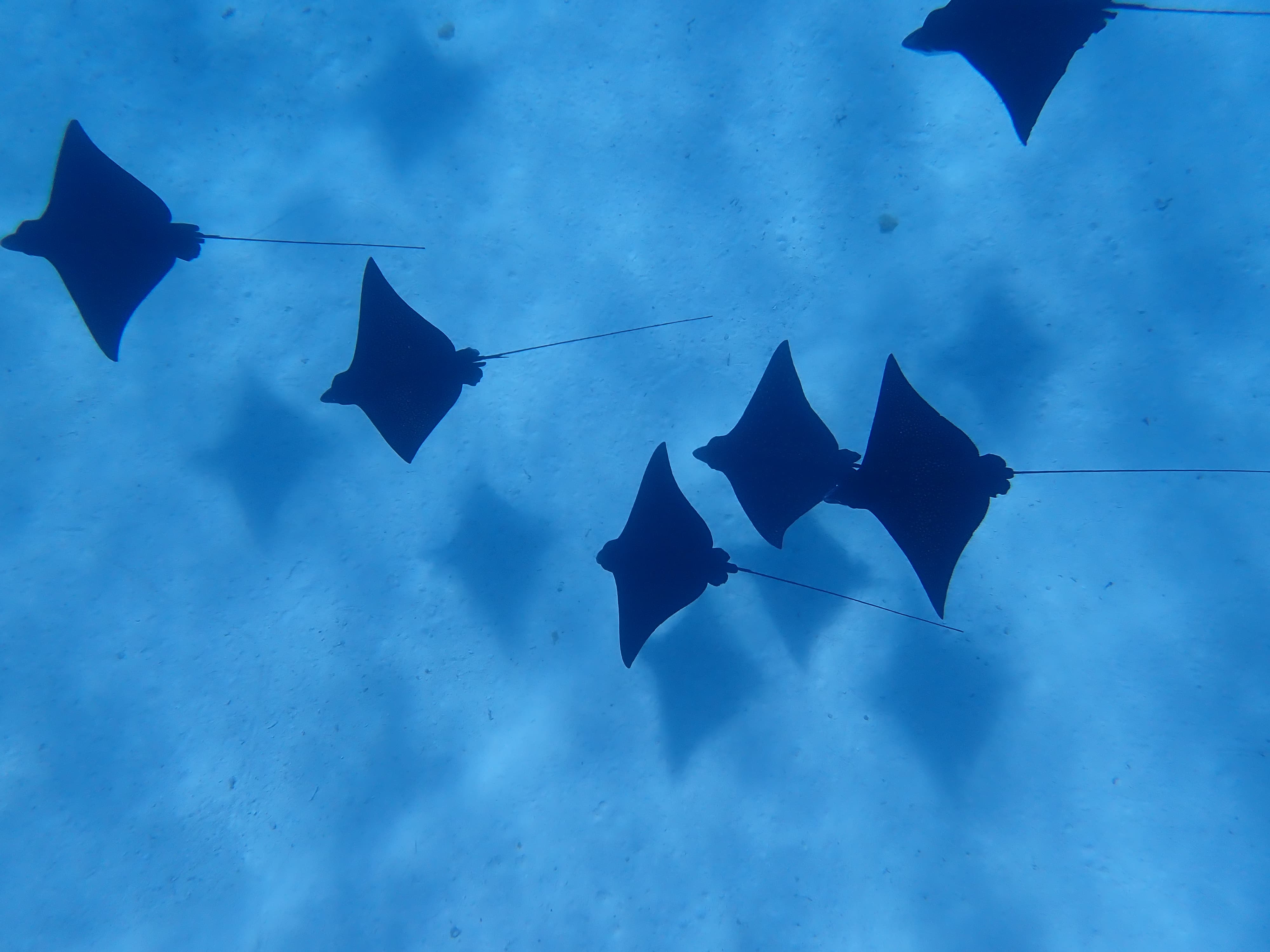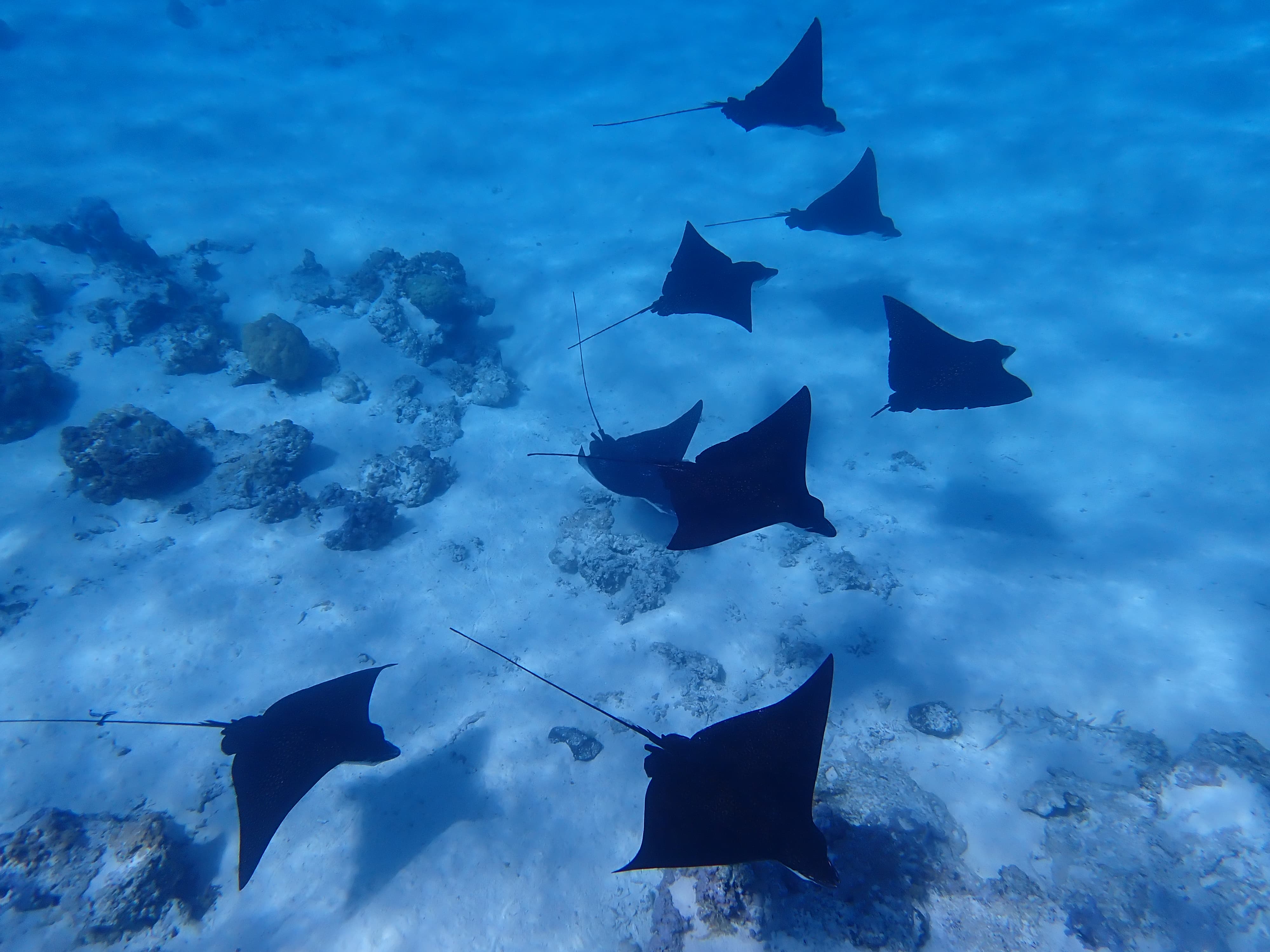 回酒店之前的最后一站是纳氏鹞鱝的栖息地,Spotted Eagle Ray背后的斑点仿佛星空,十分优雅。我之前在佛罗里达的浑水中见过,这是第一次在如此清澈的水中见到这么一大群馄饨皮成精 ![]()