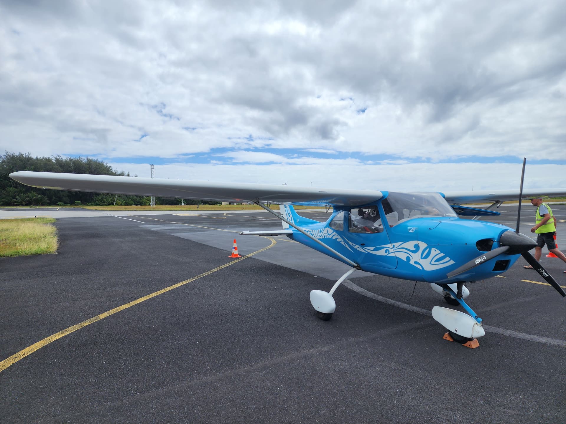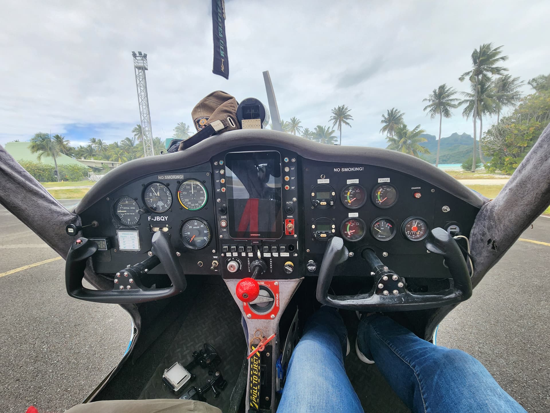 落地BOB机场后,Tahiti Air Lagon的飞行员早已在机场等待我们,在用蹩脚的机翻英语简单进行安全说明后便开始了私人飞机环岛体验。我们选择的是45分钟的项目,除了会绕Bora Bora一圈外,还会前往附近的心形岛Tupai拍照观光,价格是260美元一个人,在美国境内从没见过这个价格的飞行观光,何况还是一个private tour——飞机很小,除了机长只能坐下一名乘客,所以我和队友只能分两次飞。