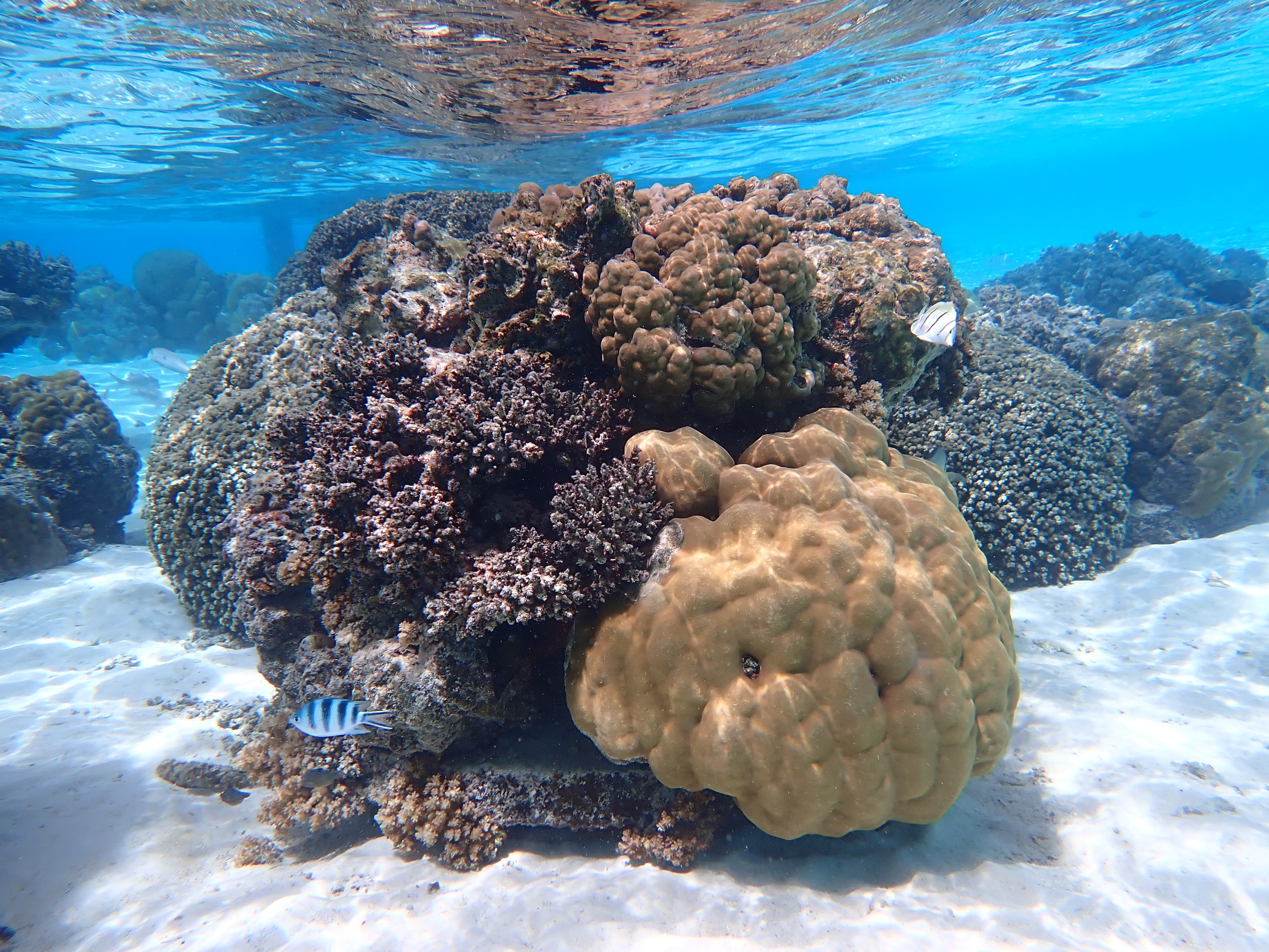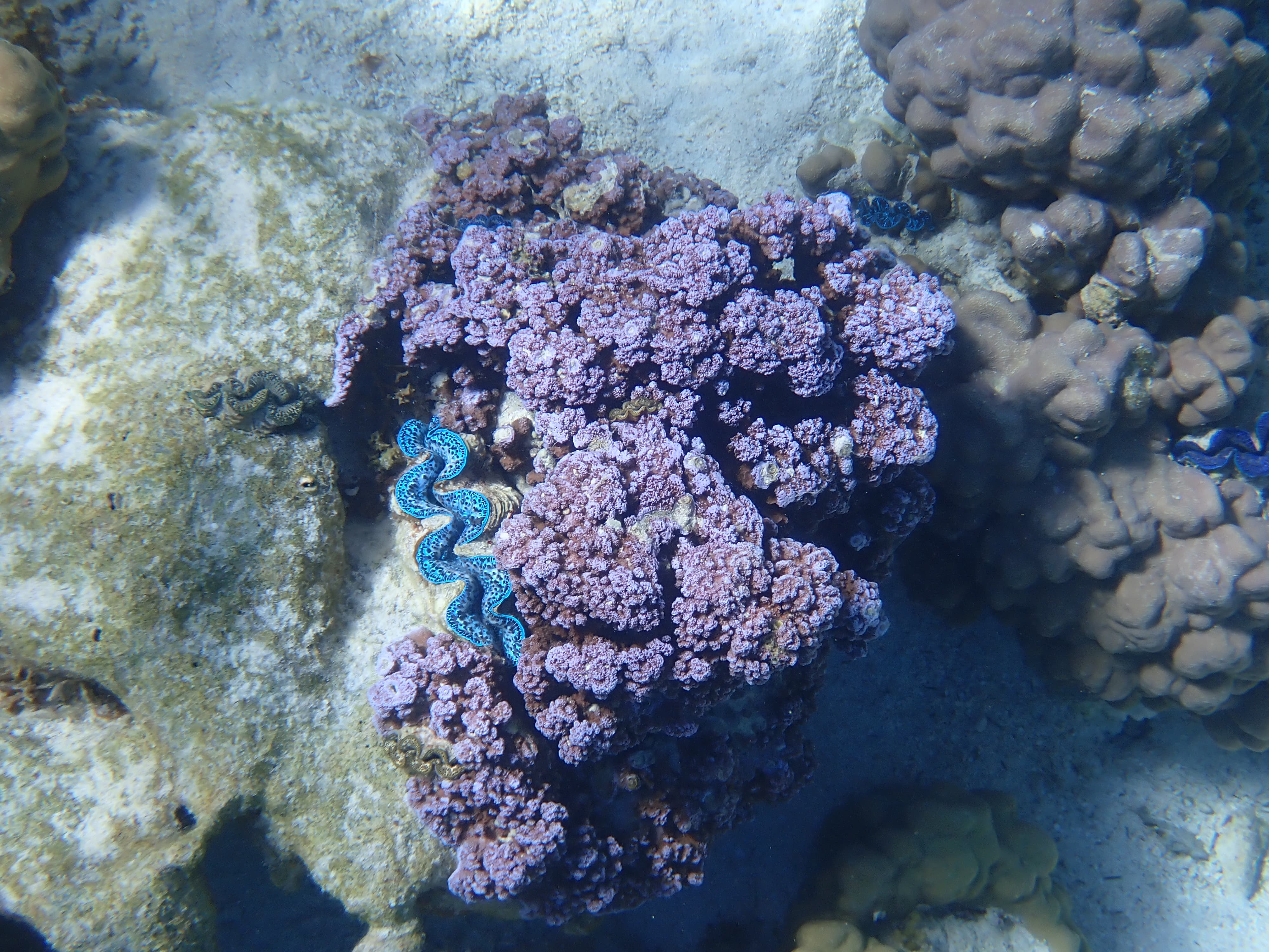 然后我们从岛北边来到了Bora Bora的珊瑚花园,这里水下生态的丰富程度完爆北美,已经相当接近东南亚,从各色砗磲到种类繁多的珊瑚——就是缺点软珊瑚和海葵。