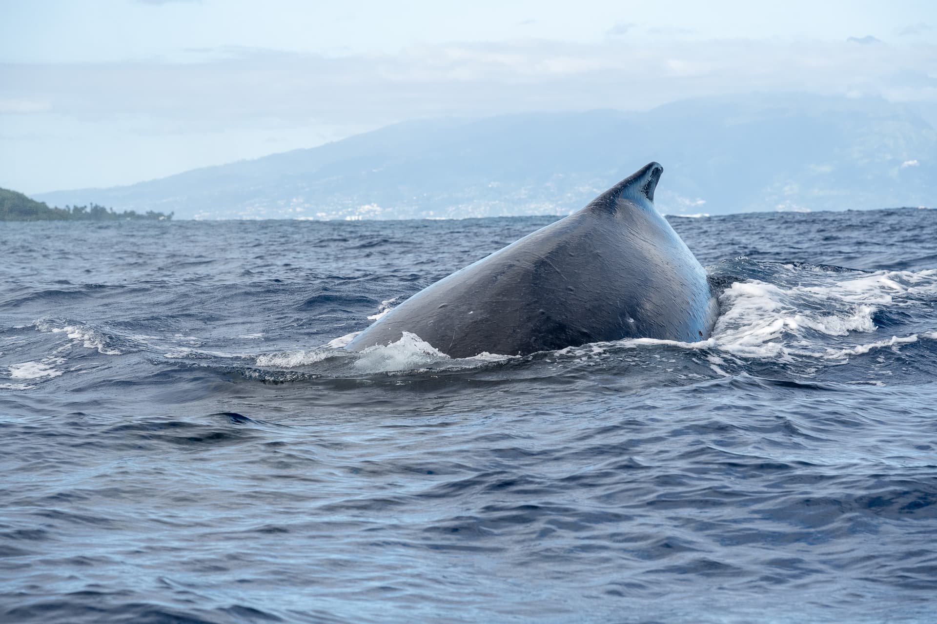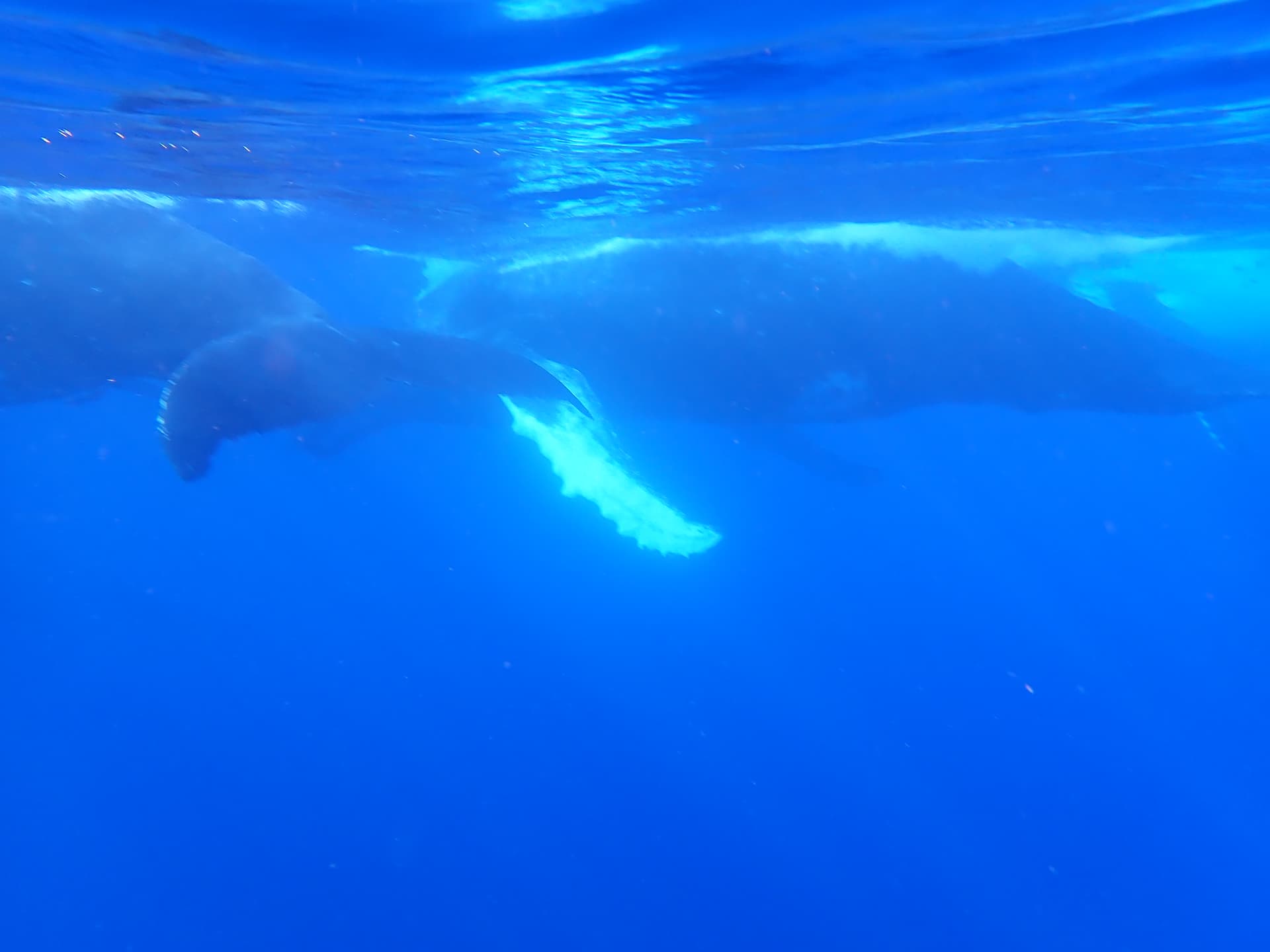 在tour guide观察场景没问题后,我们便可以下水了。规定下水时距离鲸鱼至少100米才不会惊扰到它们,再加上open water风浪较大,这个tour其实需要一定的游泳技术。鲸鱼每次上浮时间很短,游得也很快,下水两次连对焦完美的照片都很难拍到(于是从gopro视频截图了一张