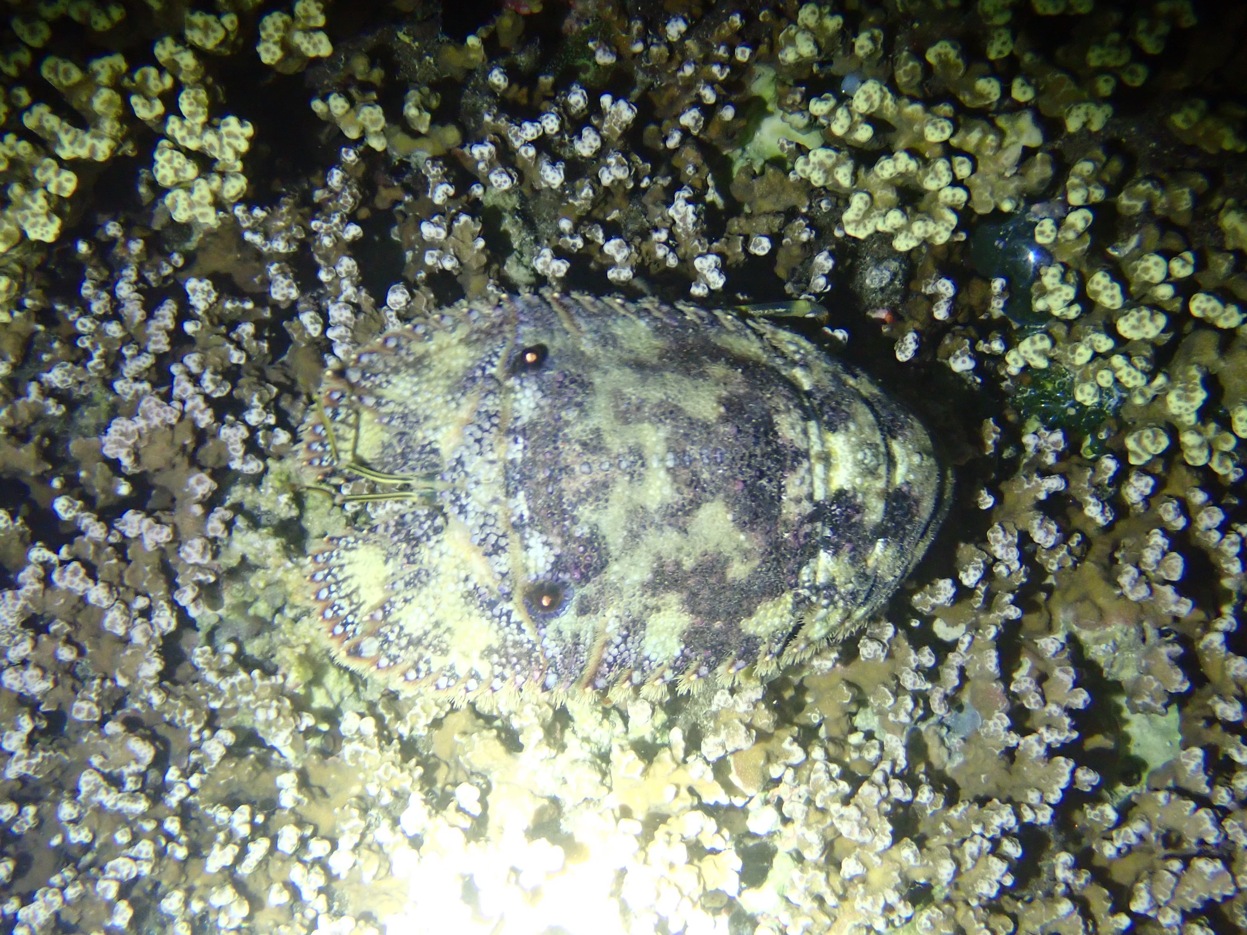 夜间浮潜的物种和白天完全不一样,当昼行性的鱼类在石头缝里睡着时,夜行性的各种克苏鲁系动物便在此时出动: