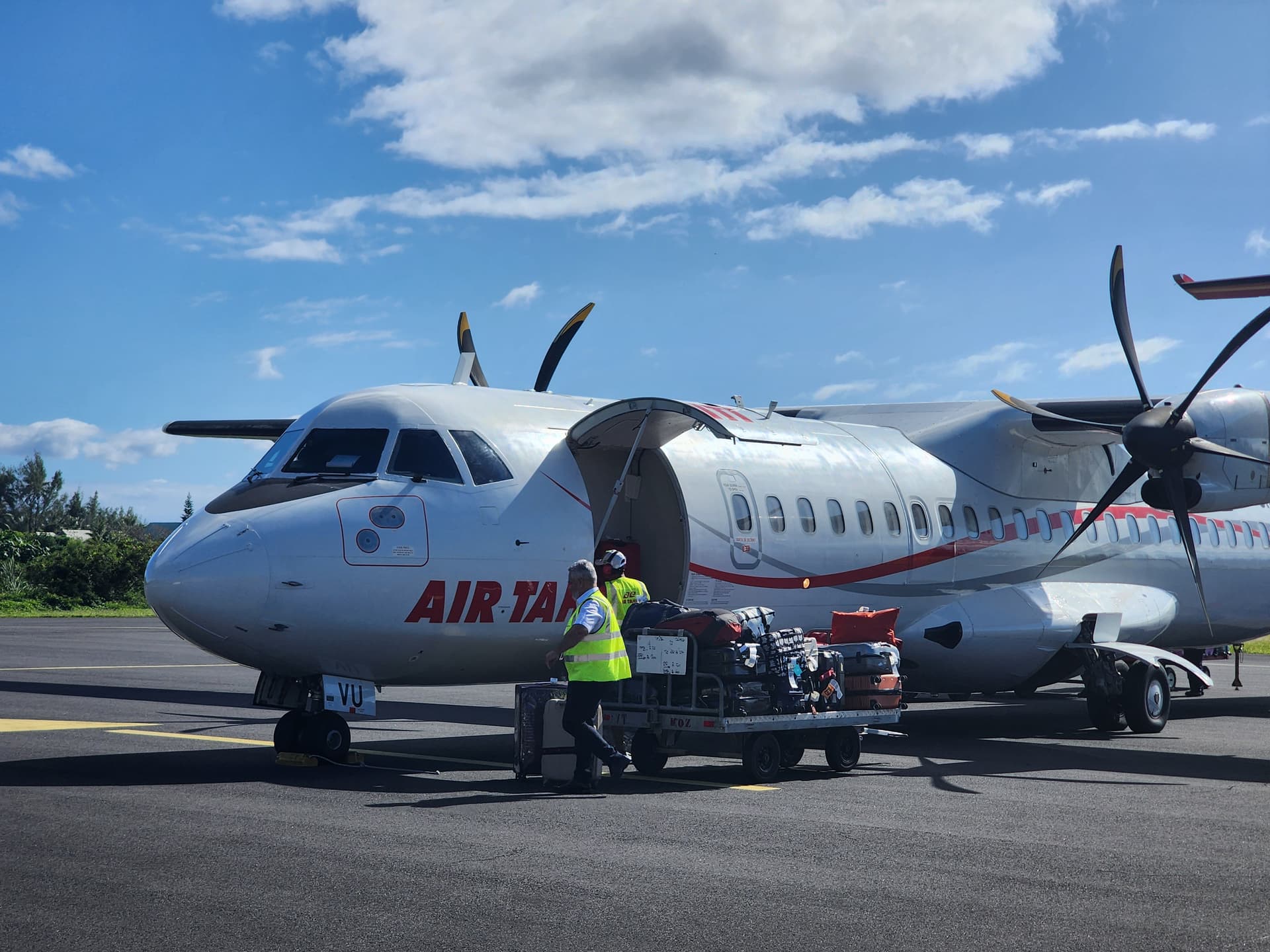 Tahiti岛前往Moorea有坐船和飞机两种方式,一般大部分人都选择坐船——但对我们来说反正在机场只是过夜,前往码头打车还挺贵的,还不如直接坐飞机去,也就40美元单程。而且这段飞机是我目前坐过最短的航班,短于波多黎各的Ceiba到Vieques,还是用正经的ATR72执飞,还是很值得体验一下的。