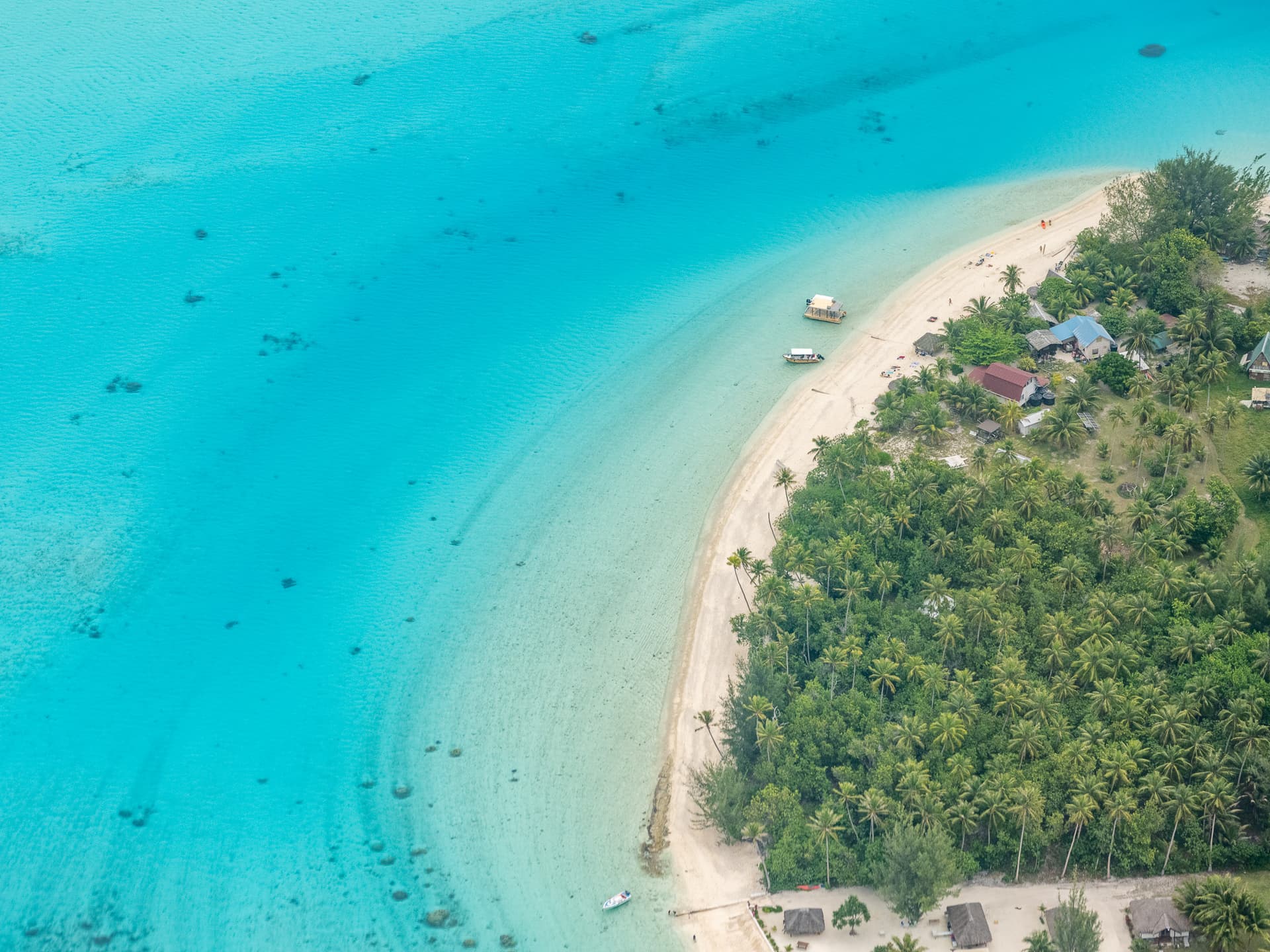 到达心形环礁Tupai上空,这里的风景比起大溪地更像是马尔代夫。