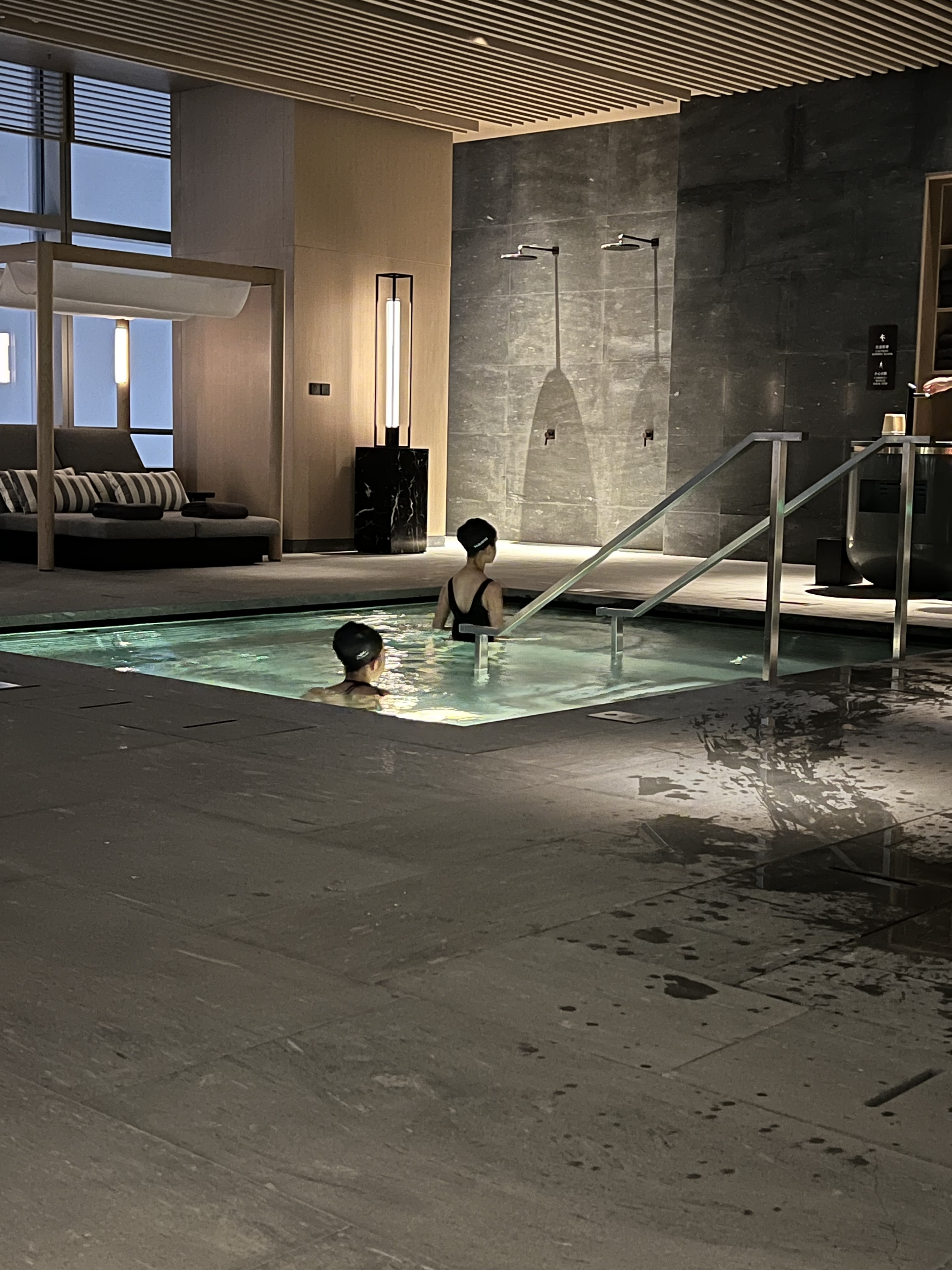 长沙柏悦的游泳池比一般美国游泳池都长都深,所以像我女儿在游泳队练过的都不去酒店游泳池。长沙柏悦是她们难得游了是个来回的。看小戏精的文章带2岁小孩去这个游泳池?
