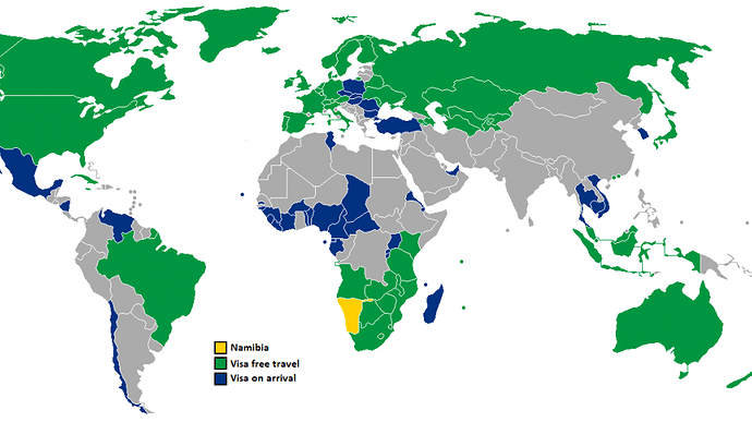 台灣跟中國到納米比亞都要辦理簽證, 港澳不需簽證, 我們家因為有藍本所以免簽, 但是家族出遊要留意因為人口販賣問題, 有帶幼兒的家庭移民官會要求出示出生證明, 我們差點因此出不了機場.