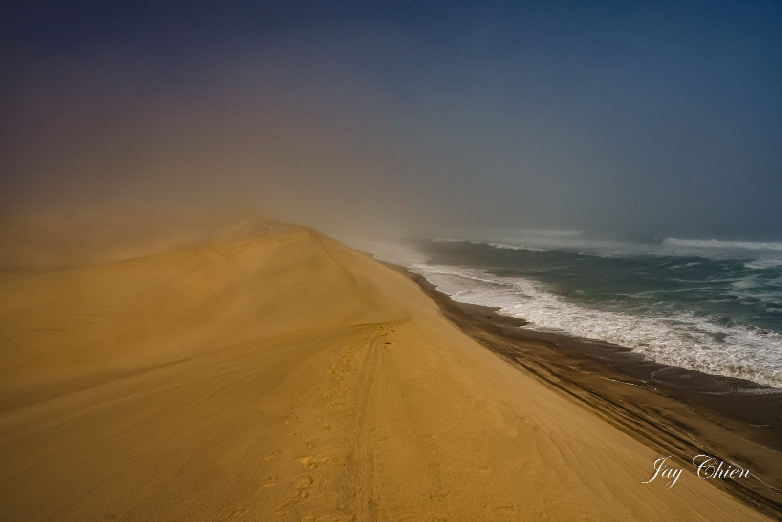 沙海一線, 左邊是無盡的沙漠, 右邊就是浩瀚的大西洋. 可惜當天起了大霧, 不過還是可以領略天地造物的神奇