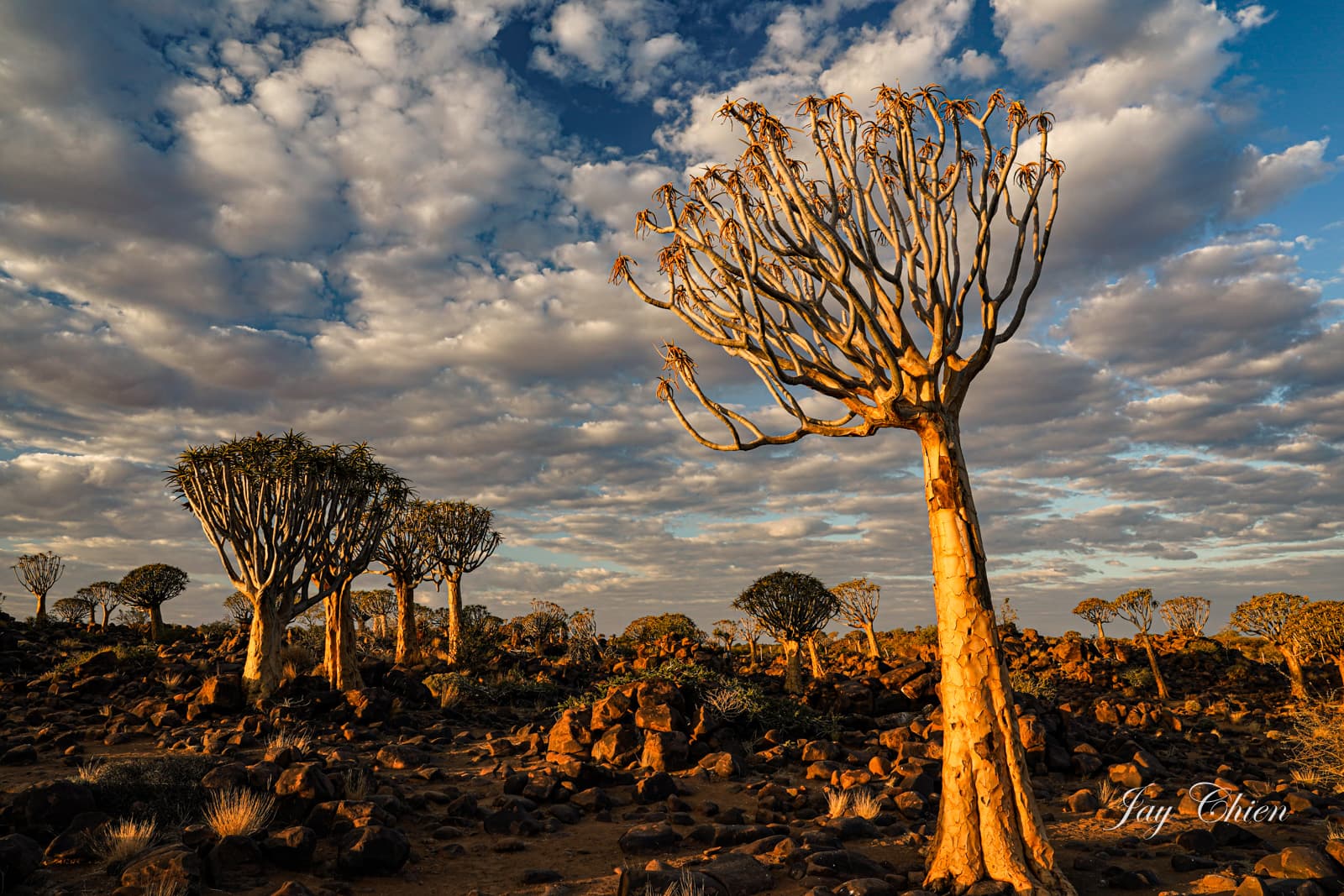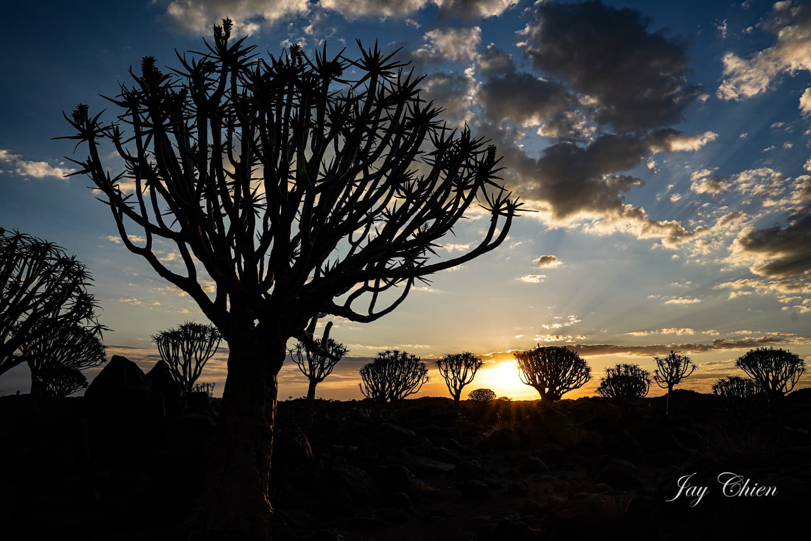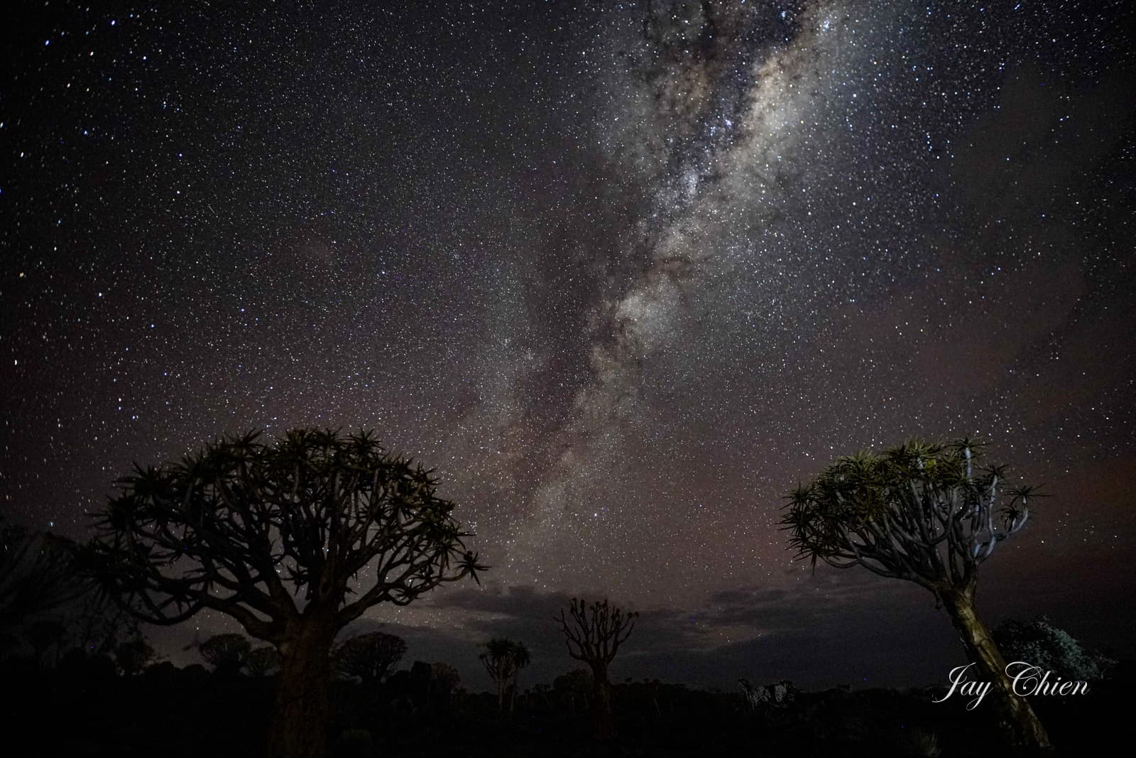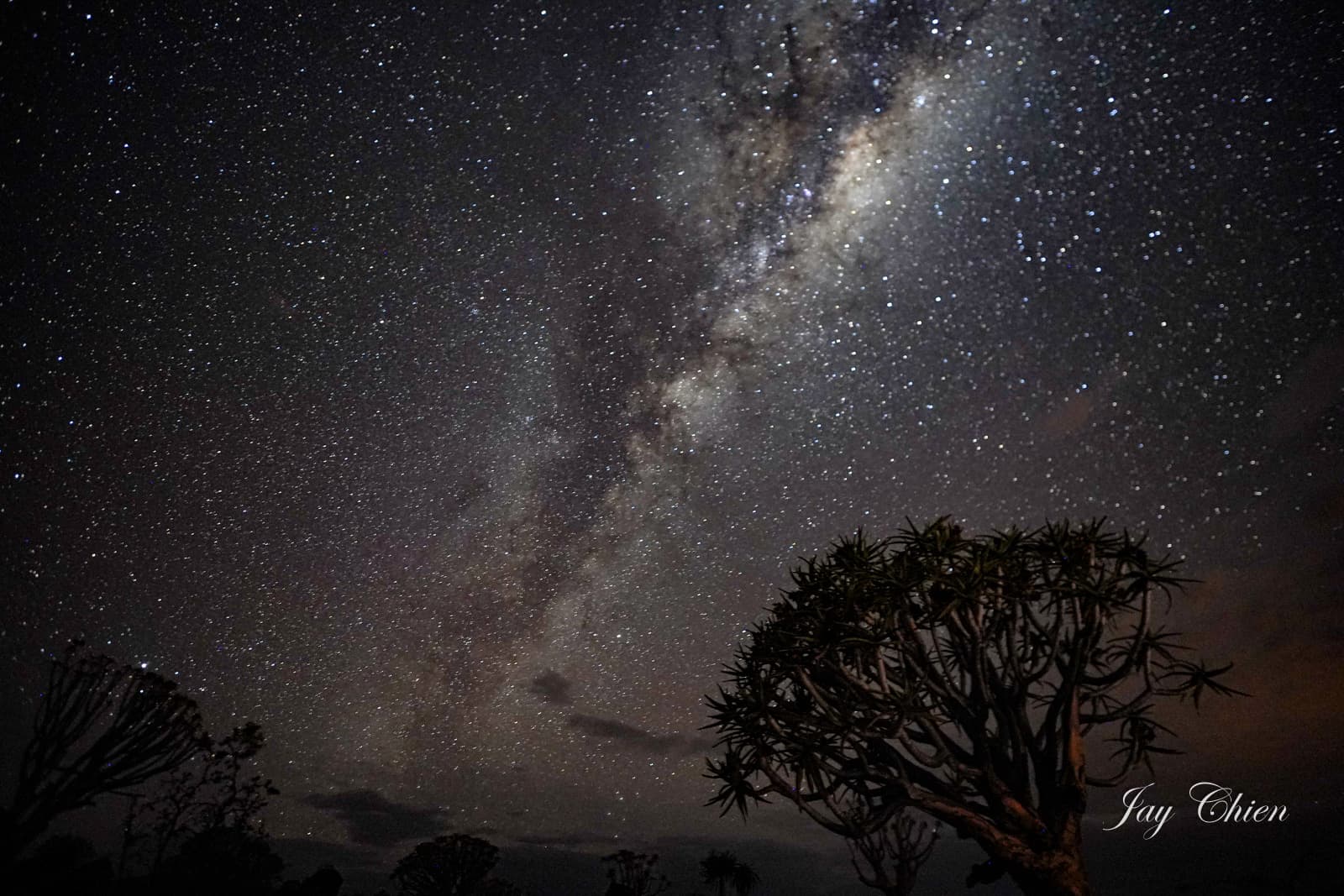 箭袋樹, 一種在非洲南部生長的奇形怪狀的蘆薈, 在箭袋樹森林因為其奇怪的形狀, 加上納米比亞地廣人稀, 非常適合當前景拍攝星空, 或是構圖日落日出