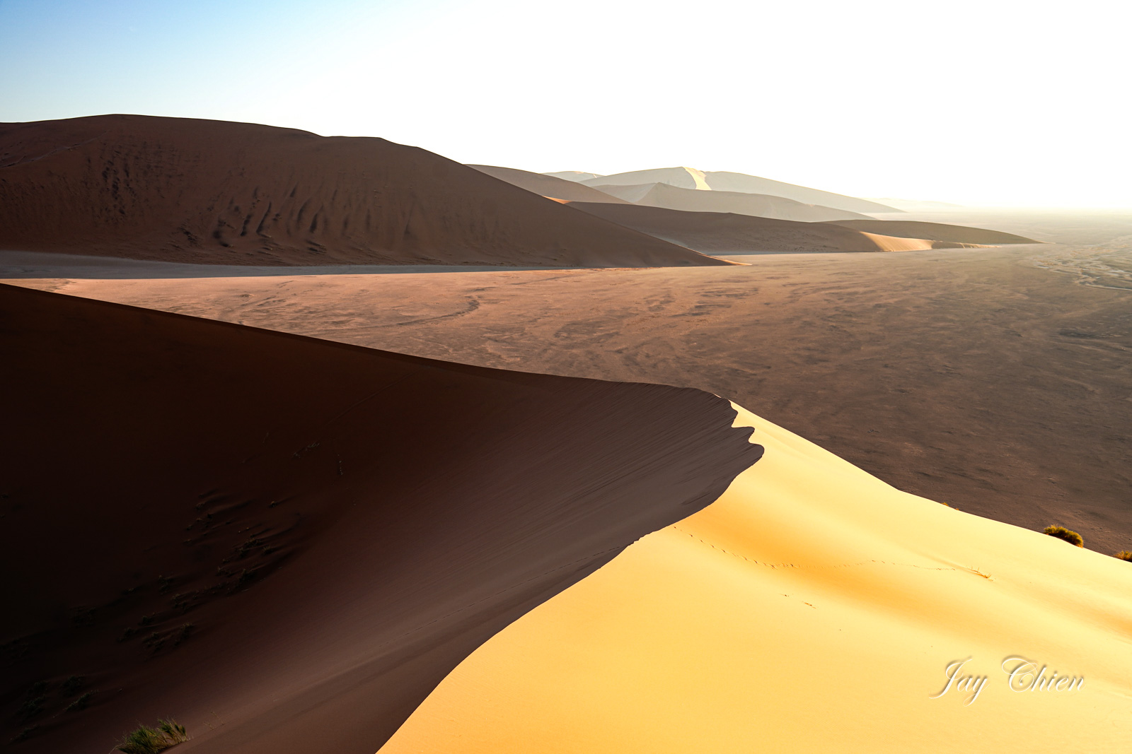 索蘇斯維雷坐落在沙漠的內陸, 有著紅色的沙漠, 有名的景點是坐落在離入口45公里的45沙丘, 還有十分適合拍光影的40沙丘. 我們在這裡停了三天兩夜, 第一天日落時爬上了45沙丘看沙漠蛻變成金黃色, 之後第三天日出來到40沙丘拍了光影下的大沙丘加上枯樹.