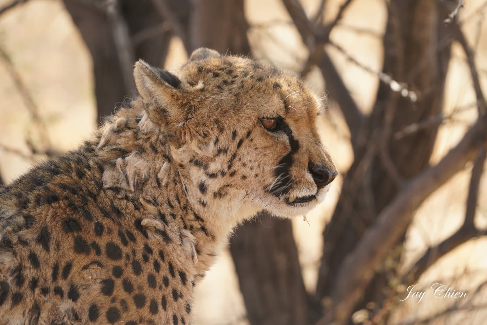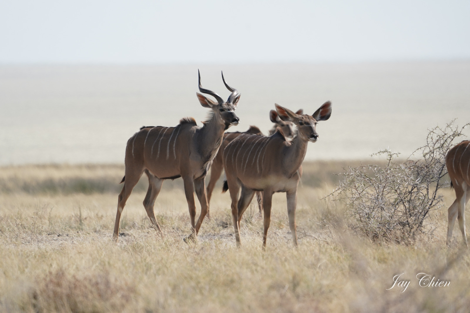 本來正在看扭角林羚(Kudu), 突然動物都跑開, 老婆驚呼一聲Cheetah! 之後就看到兩隻獵豹像箭一樣從車旁跑過, 可惜那時相機在f14快門不夠快, 稍嫌不清晰