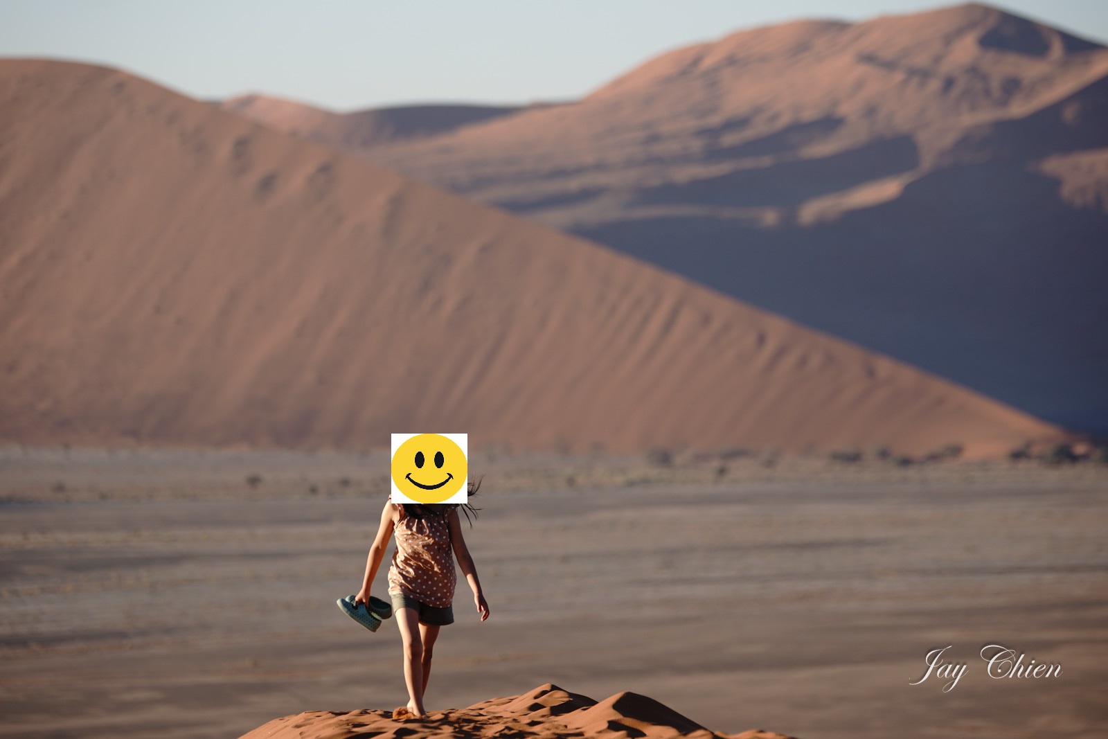 納米比亞作為一個小眾景點, 可能不像坦尚尼亞或肯亞那樣可以參加可以看數量驚人動物的遊獵, 可能要忍受路上的顛簸, 但是其在世界上獨一無的沙海一線, 古老紅沙漠, 死亡谷, 多變的原住民, 美味的生蠔, 便宜的價格, 安全的環境, 還是讓我們一家度過了一個精彩的暑假.