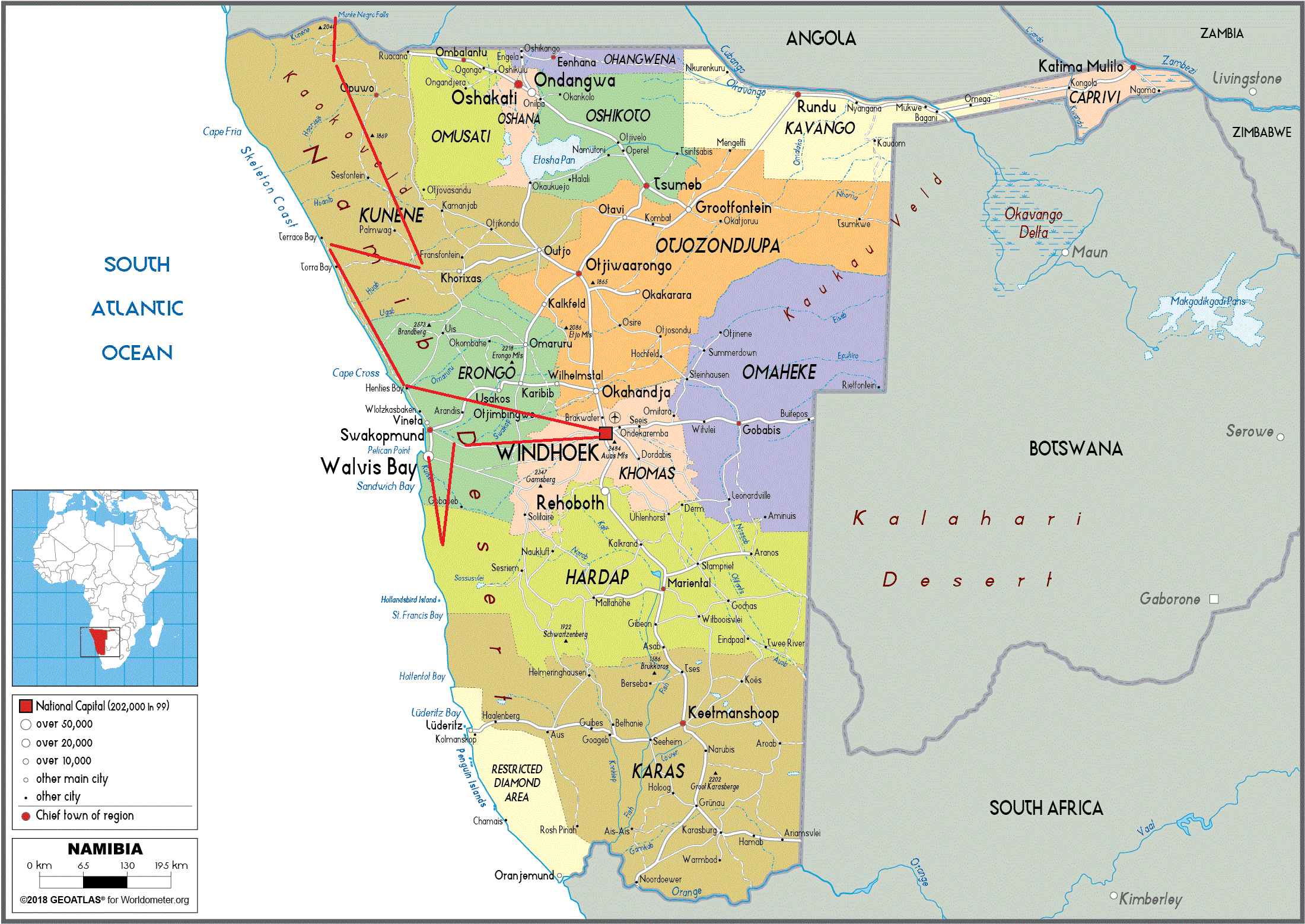 看得出的景點有三明治灣, 達瑪拉蘭, Eduard Bohlen Shipwreck, 溫和克, 骷髏海岸, 埃普帕瀑布.