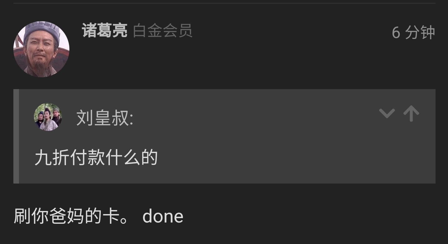 刷你爸妈的卡。 done