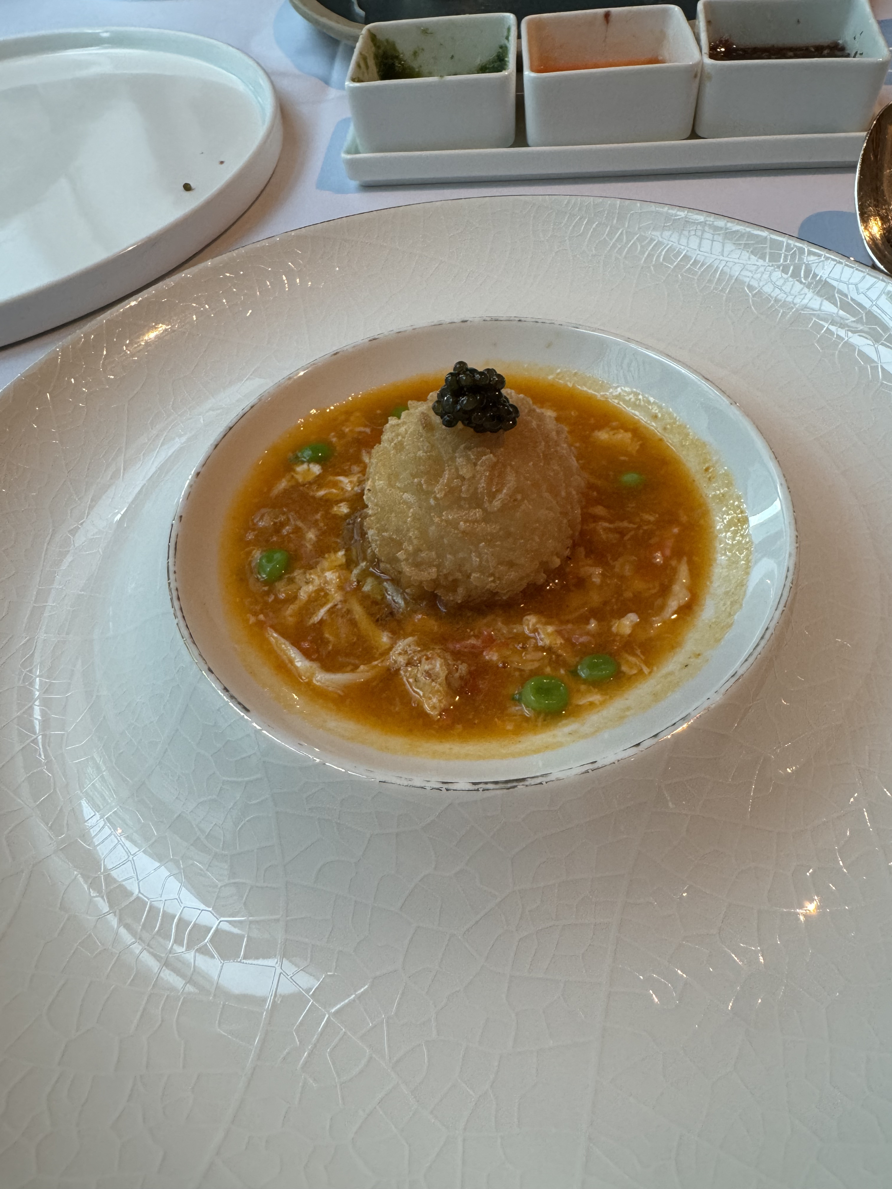 这饭也行,造型可以,但感觉不如长沙柏悦里的龙虾泡饭。