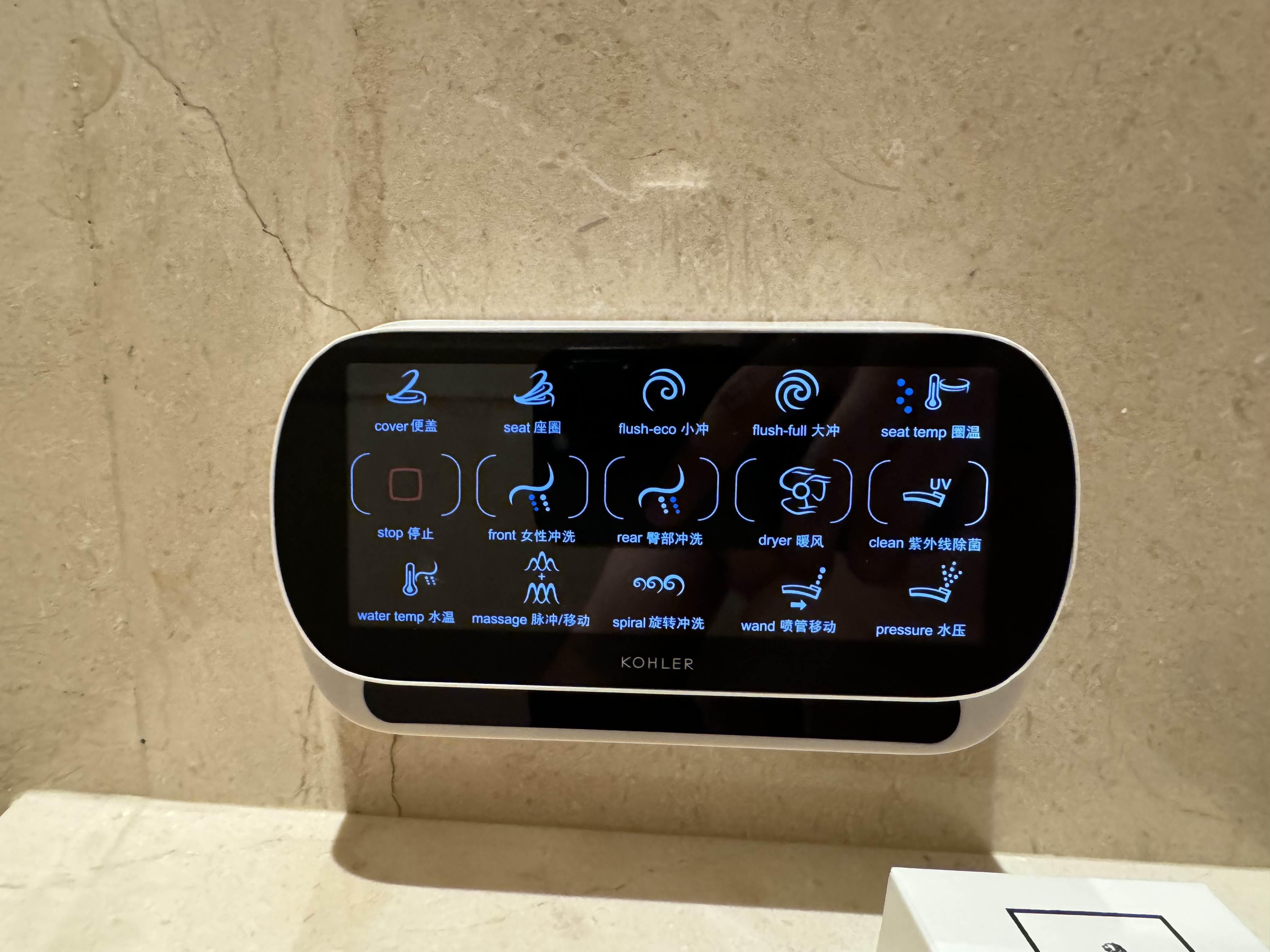 这个冲洗系统竟然有LED屏幕,高级。