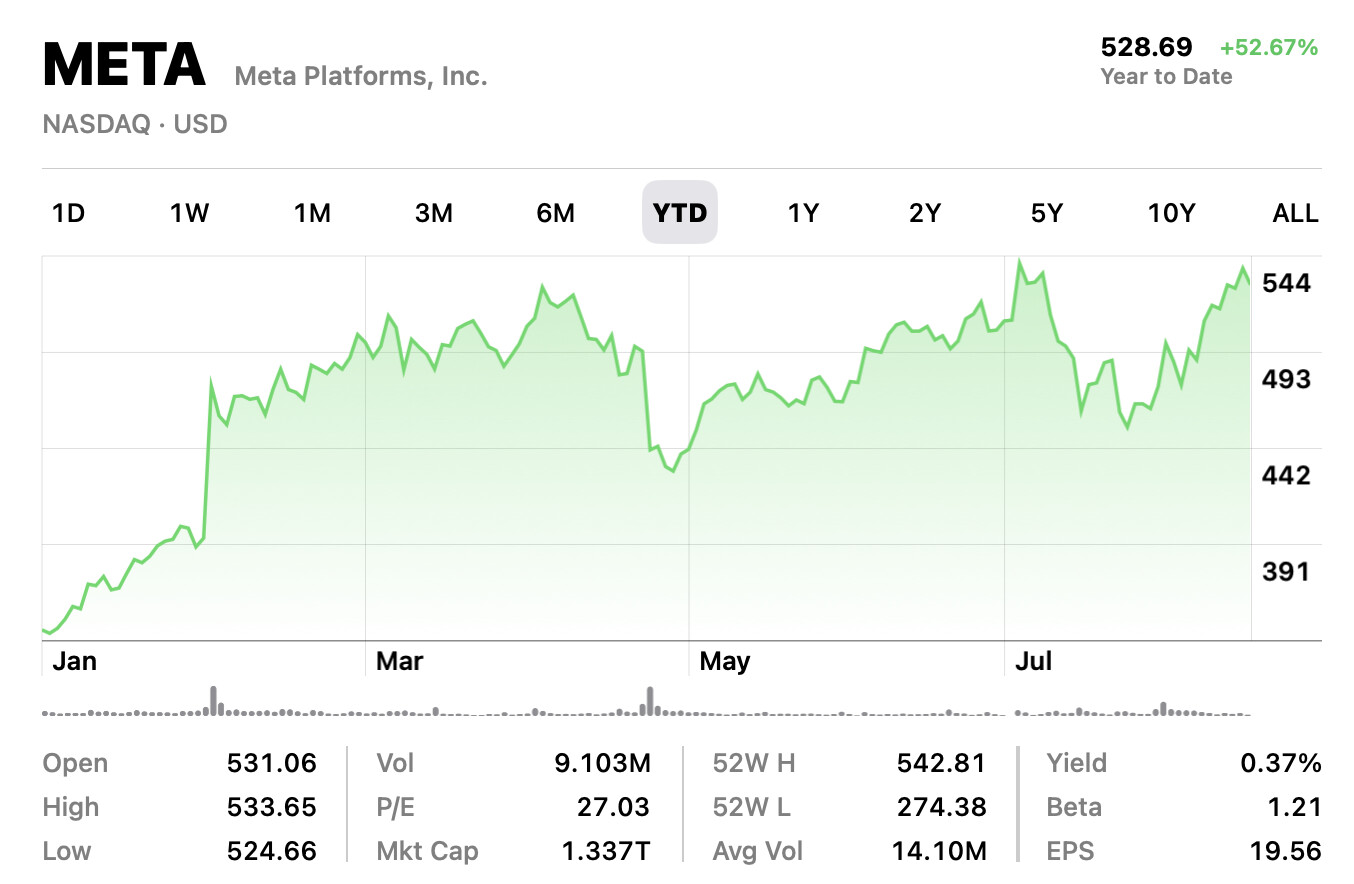 Meta 这股价表现还含泪啊。人类的悲欢真的不相通