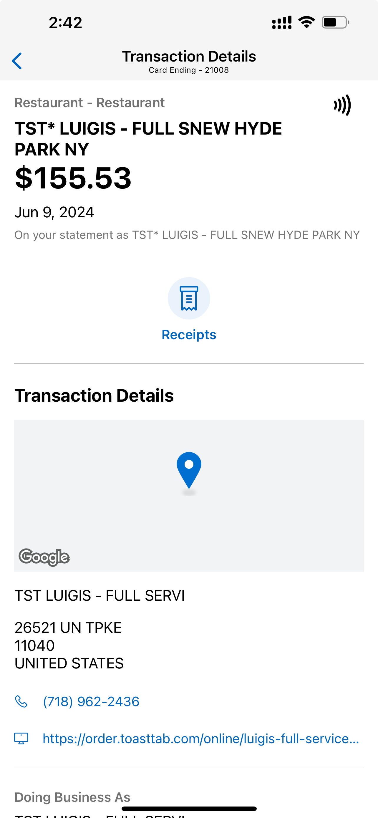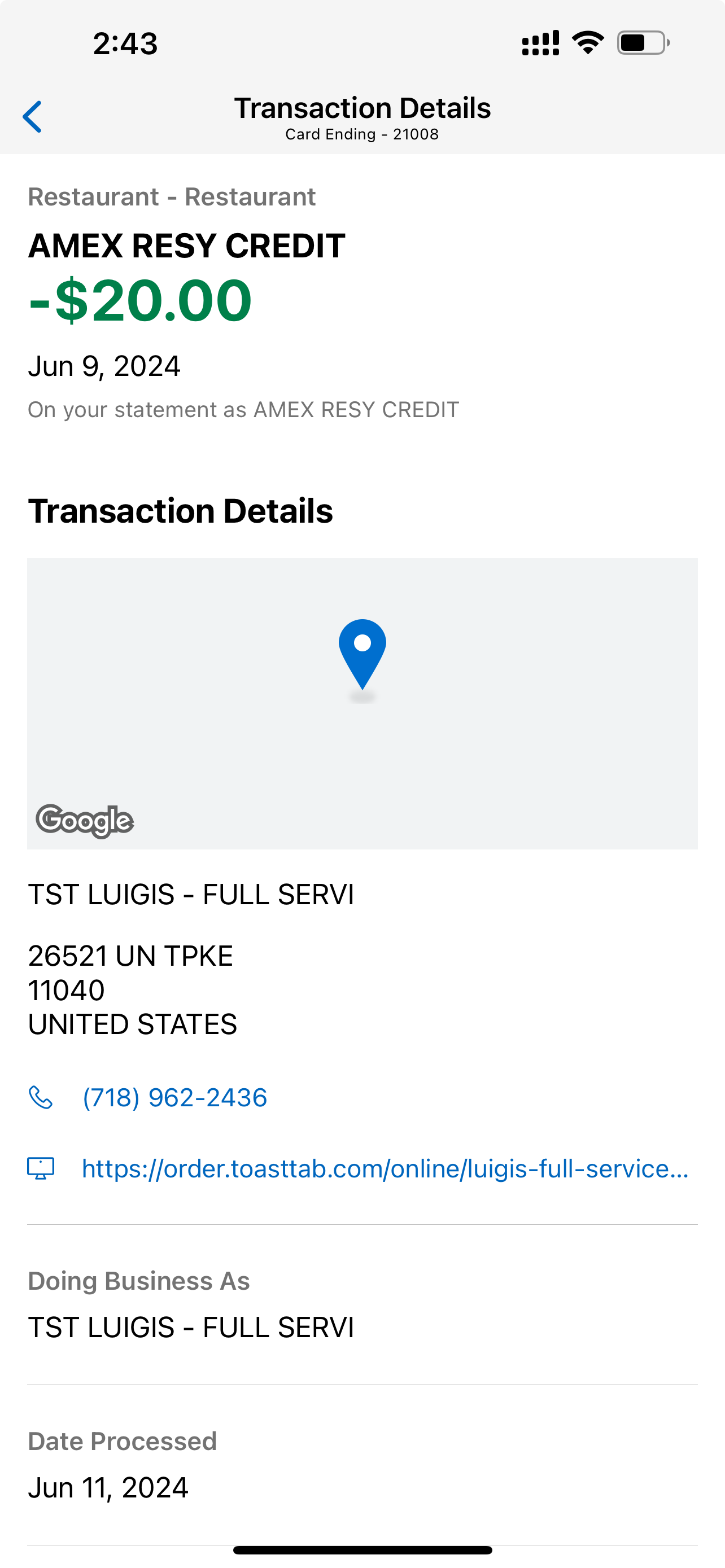 Other comments: 到這兩間店拿外賣,直接在餐廳結帳。看起來好像是用Toast的POS?不過pending和post的時候都沒有TST的前綴。比較有趣的是,Resy上面列的Niu Japanese Fusion Lounge,實際post時顯示的是Niu Sushi,一開始有點擔心拿不到credit,但最後也是有拿到的。