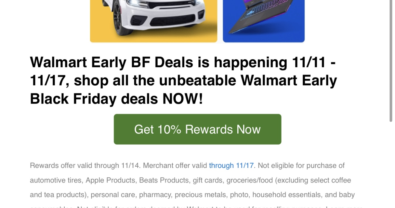 找到了一个email with walmart 10% but 没写ddl activate之后chrome extension是显示10%了但shopping portal上搜walmart还是0.5% 也没有wmt单独的email