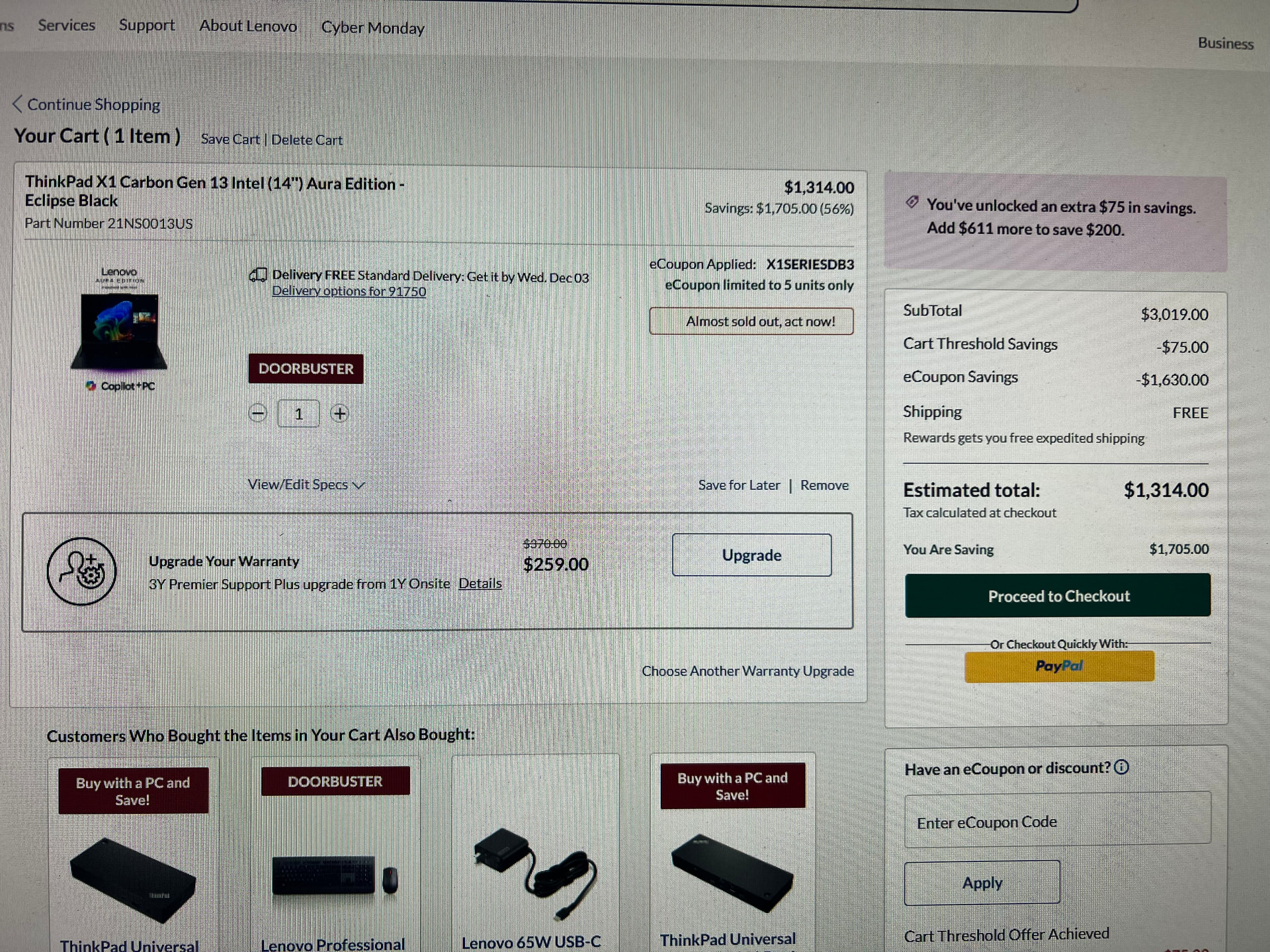 上面那个x1c的deal用这个link便宜$135,如果paypal的pay in 4的offer还在而且preapprove额度只有1500,可以考虑一下,不过似乎叠不了rakuten ![]()