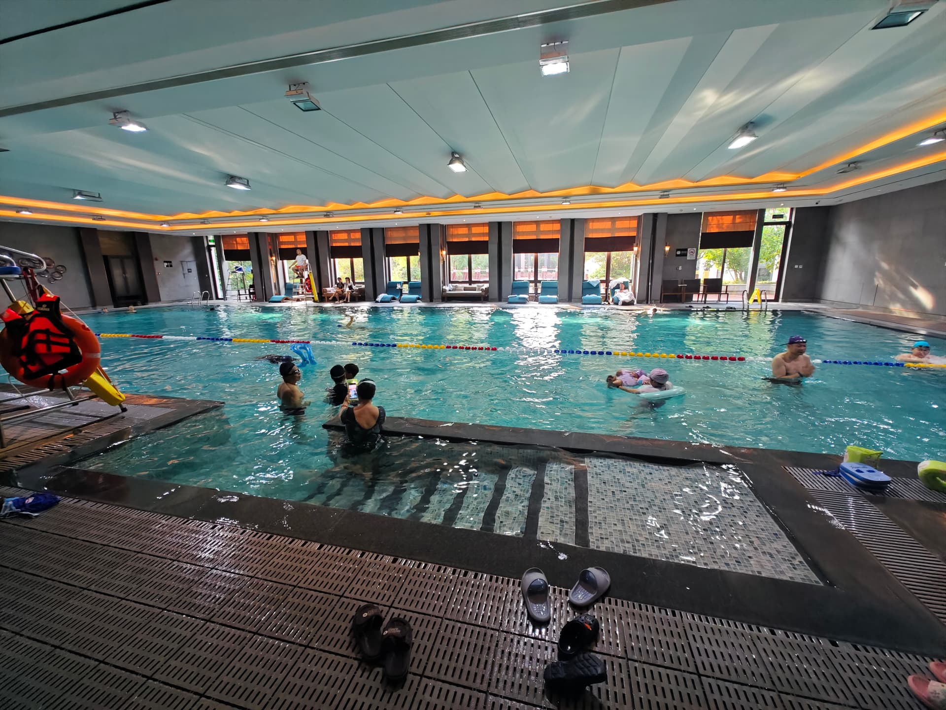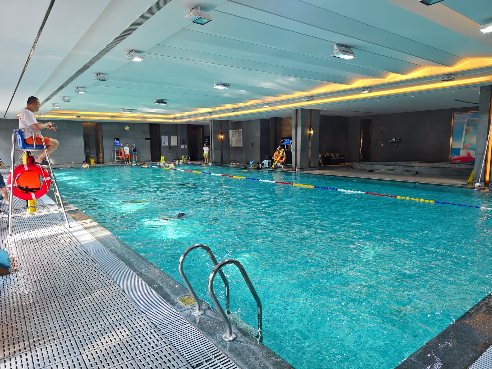 泳池的水很干净,水质柔和,水温完美。