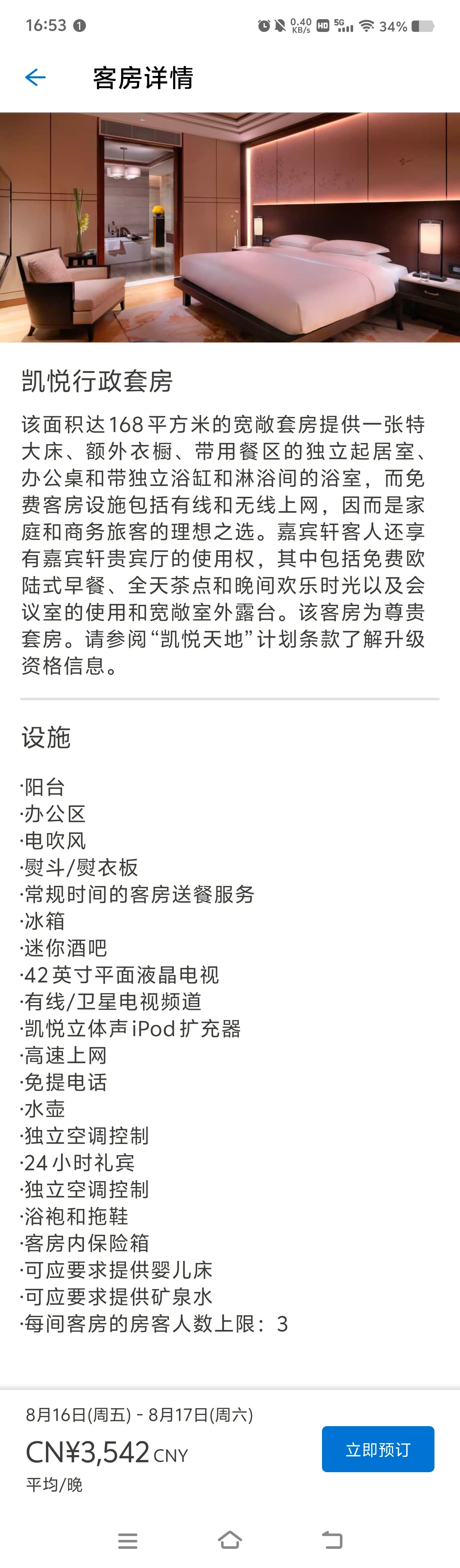 我是黑丫头白板会员,用UR→Hyatt 10K积分订的一间行政套房,cpp=5.76: